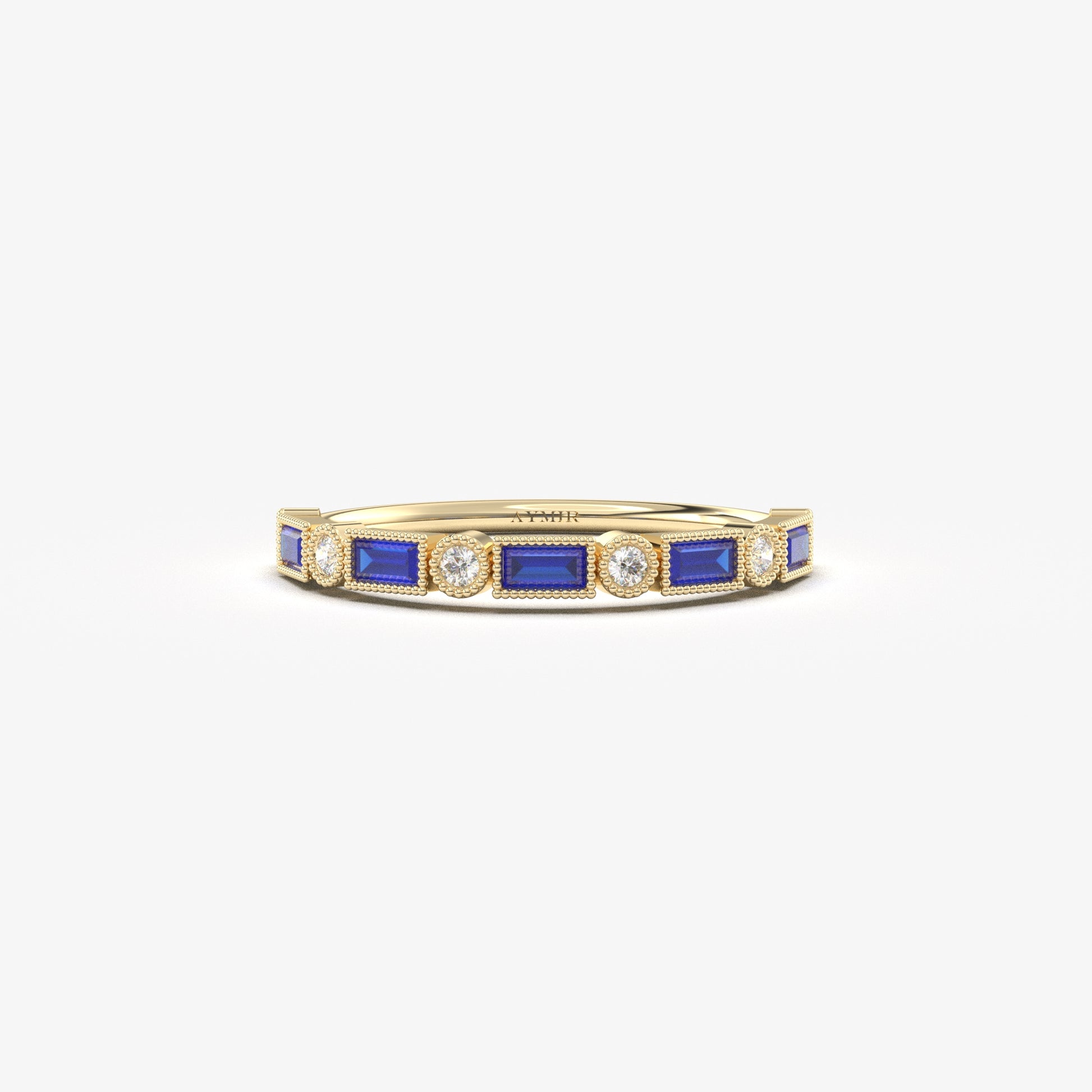 10K Gold Baguette Sapphire and Cz Ring - 2S233SAP