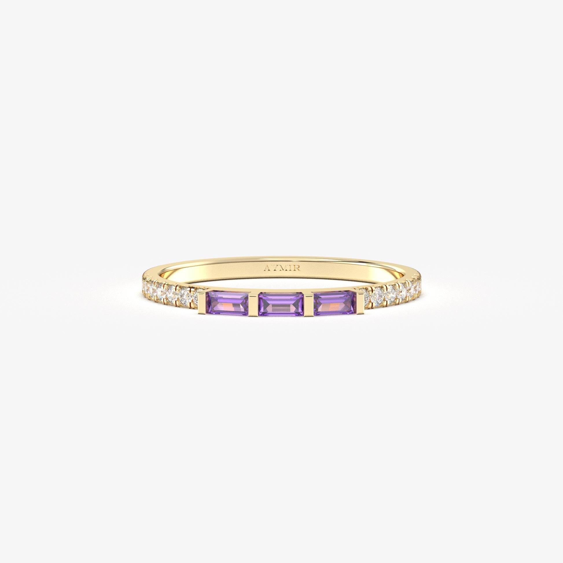 10K Gold Dainty Baguette Amethyst and Cz Ring - 2S245AME