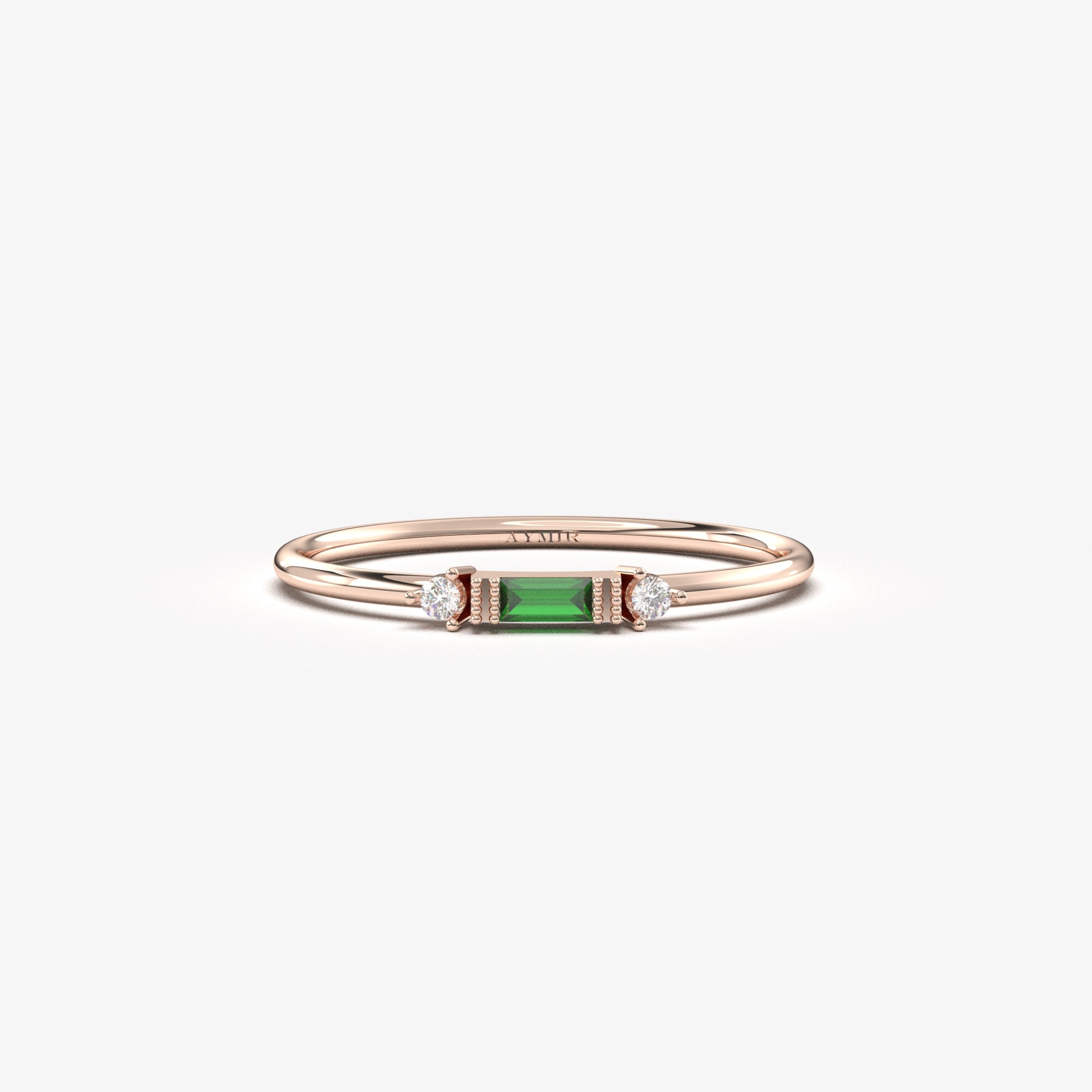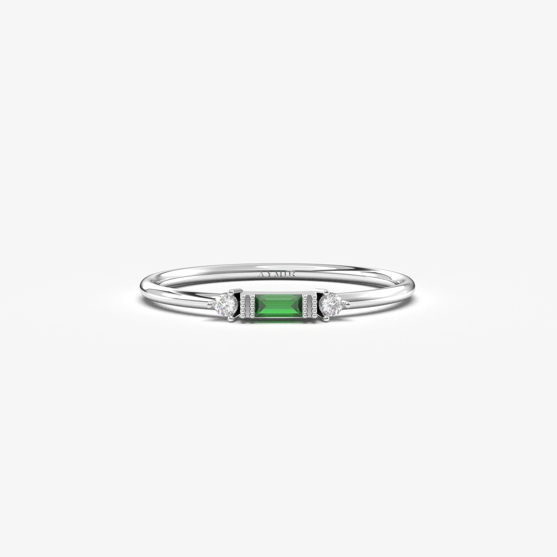 10K Gold Minimalist Baguette Emerald and Cz Ring - 2S6EME
