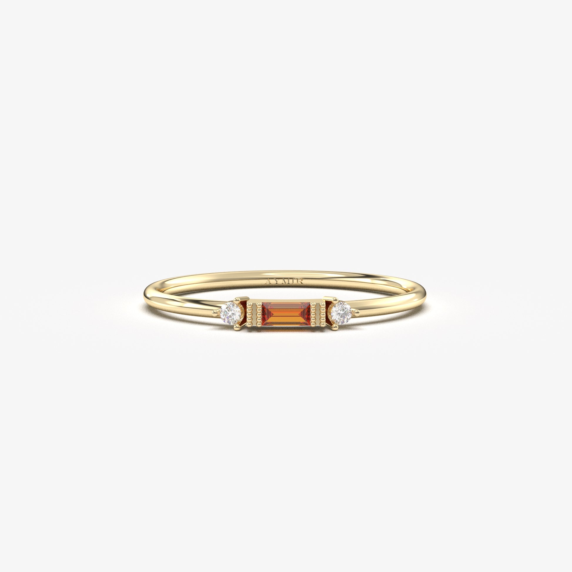 10K Gold Minimalist Garnet Baguette and Cz Ring - 2S6GAR