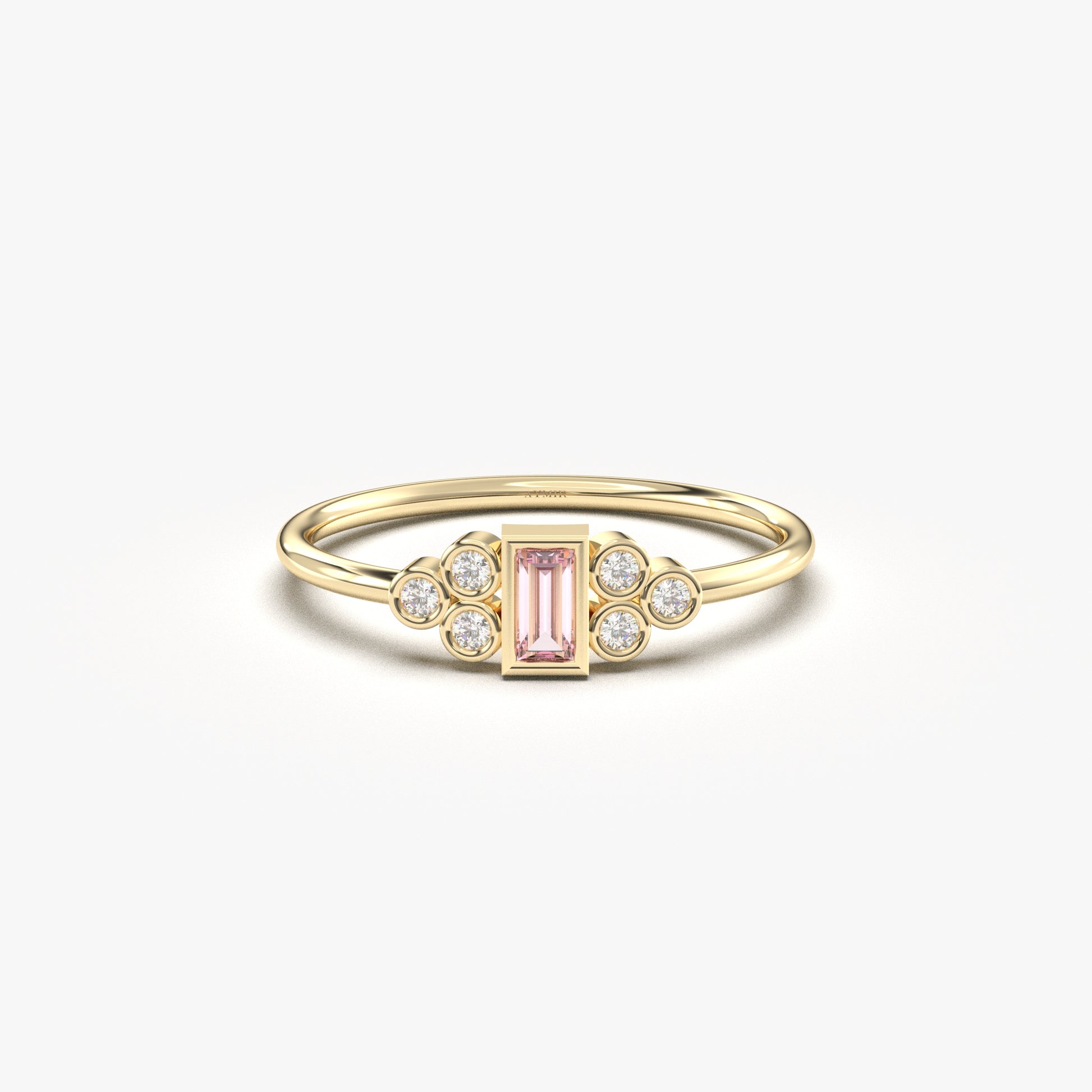 10K Gold Baguette Minimalist Pink and Cz Ring - 8S81PNK