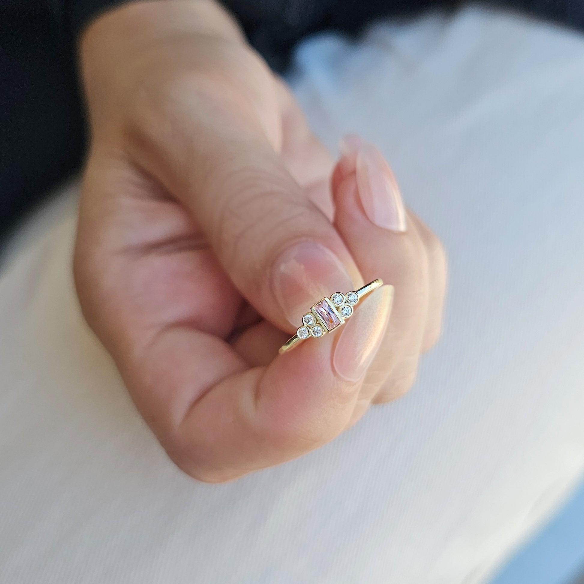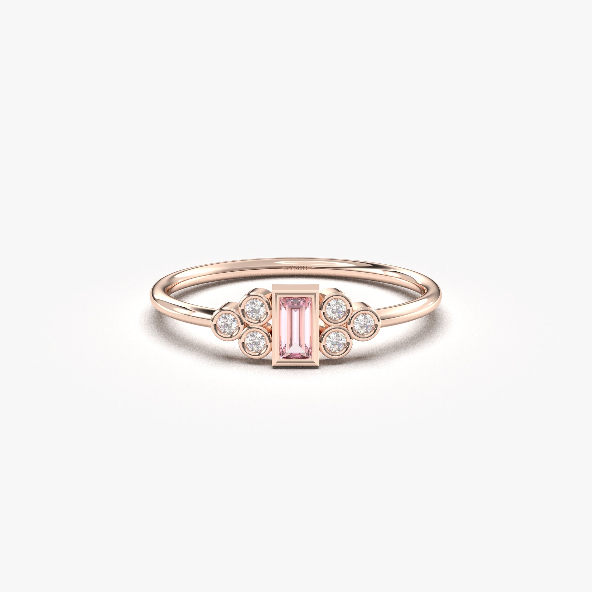 10K Gold Baguette Minimalist Pink and Diamond Ring - 8S81PNK