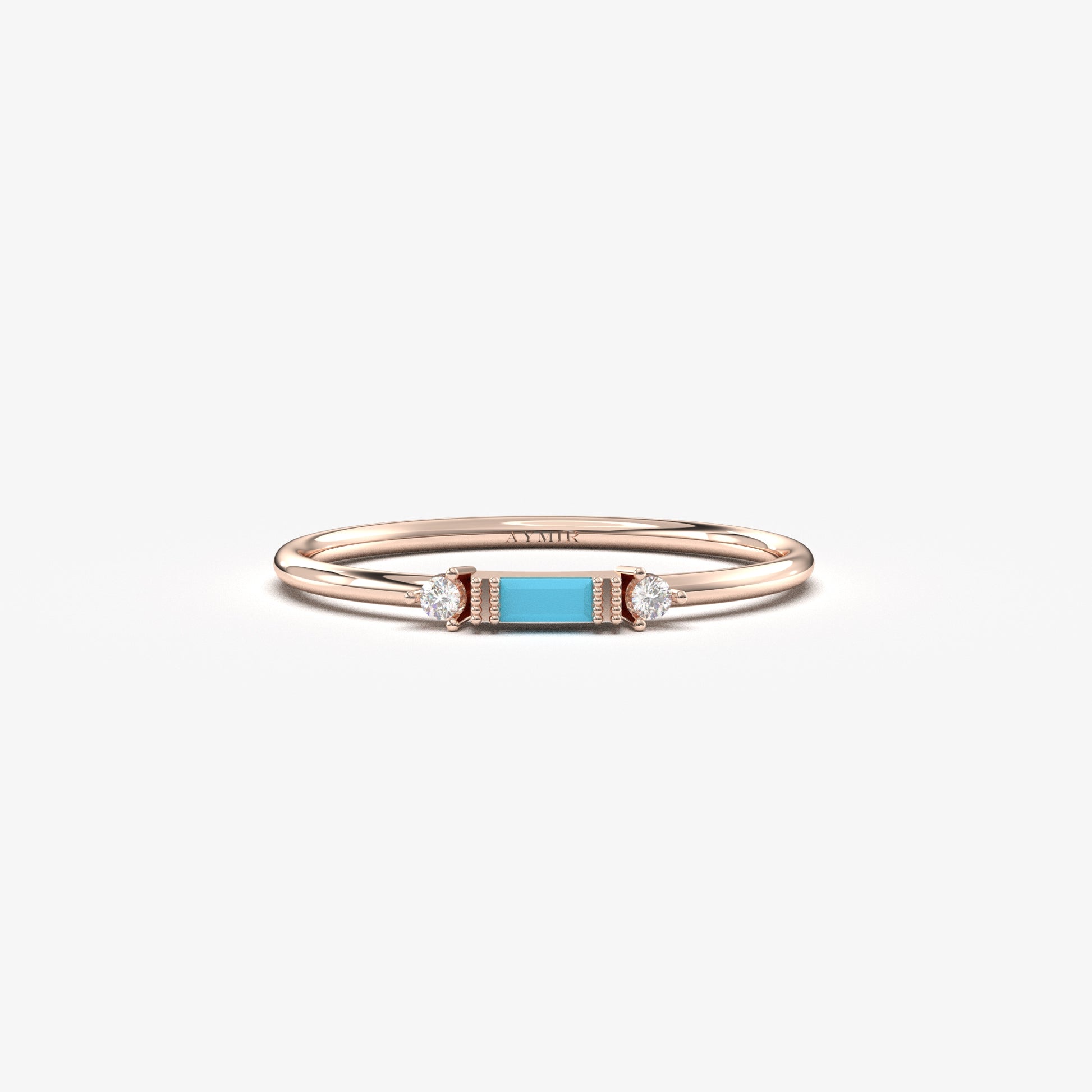 10K Gold Baguette Turquoise and Dainty Cz Ring - 2S6TURQ