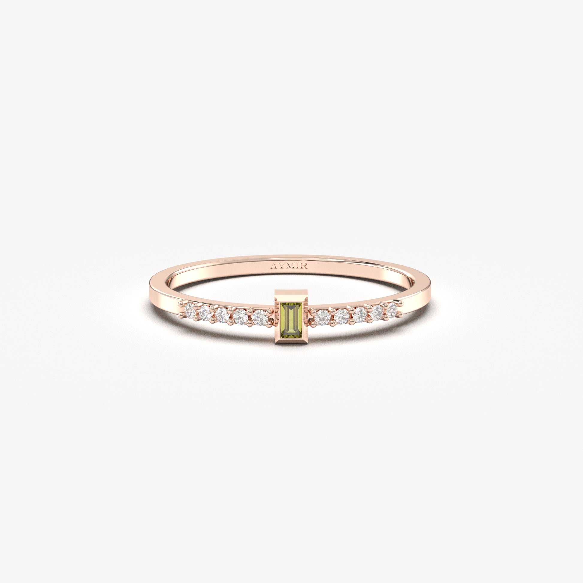 10K Gold Dainty Baguette Peridot and Diamond Ring - 2S80PER