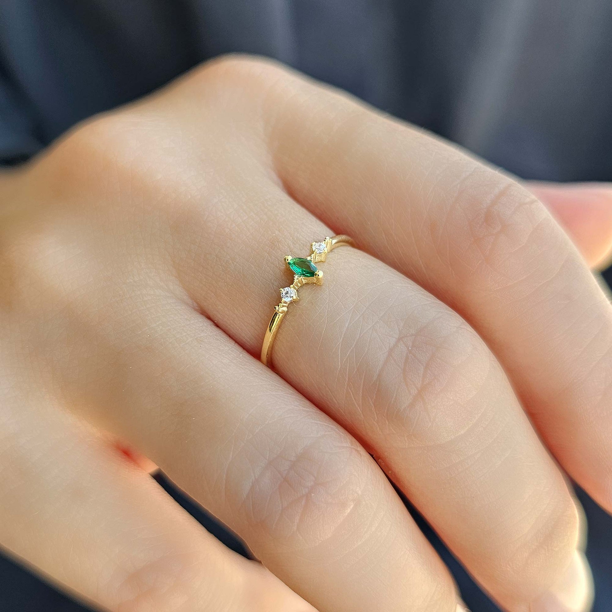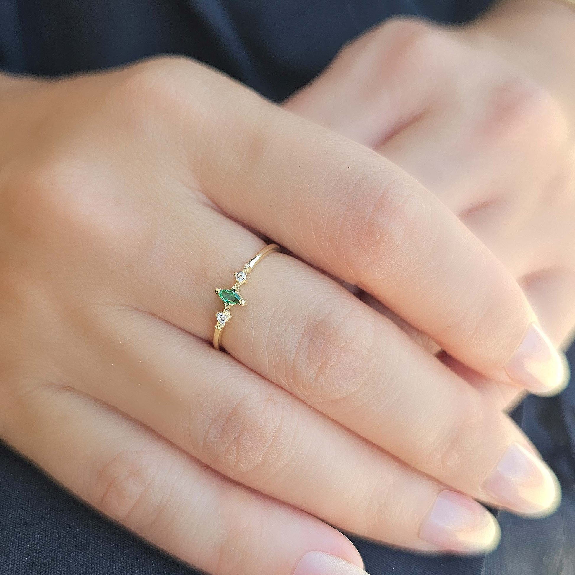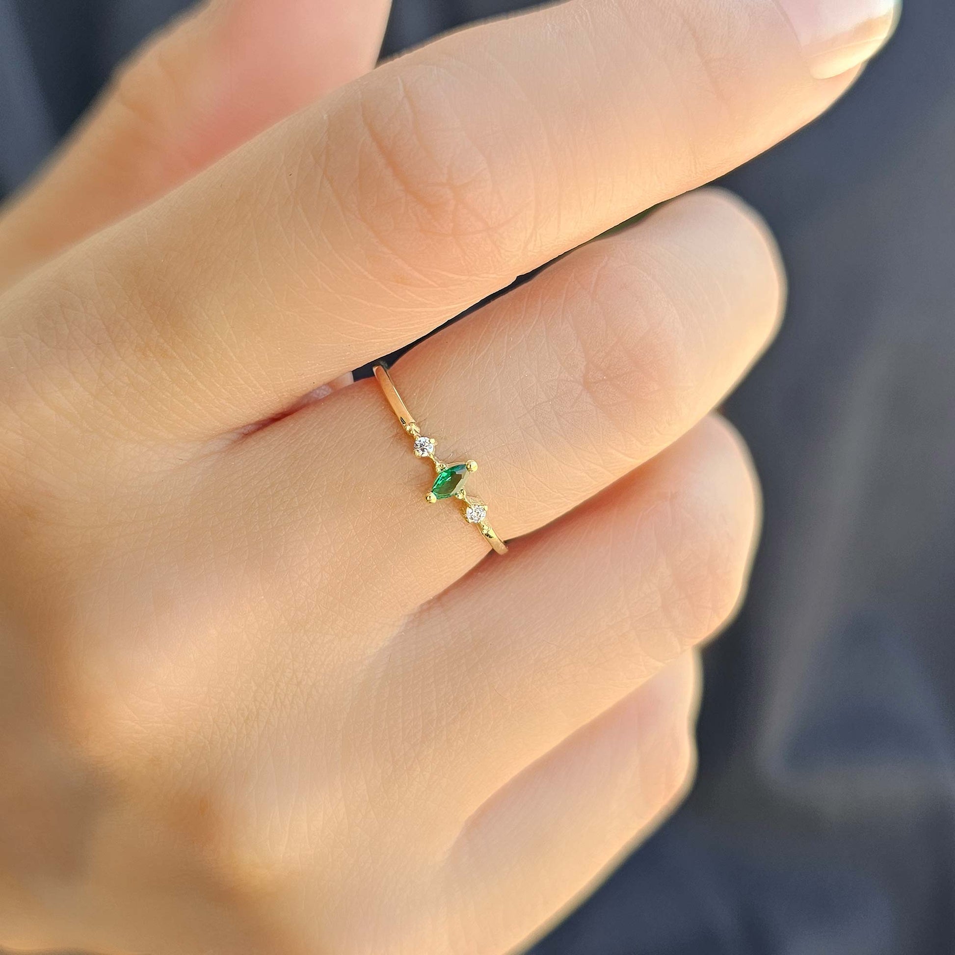 10K Gold Dainty Marquise Emerald and Cz Ring - 2S111EME