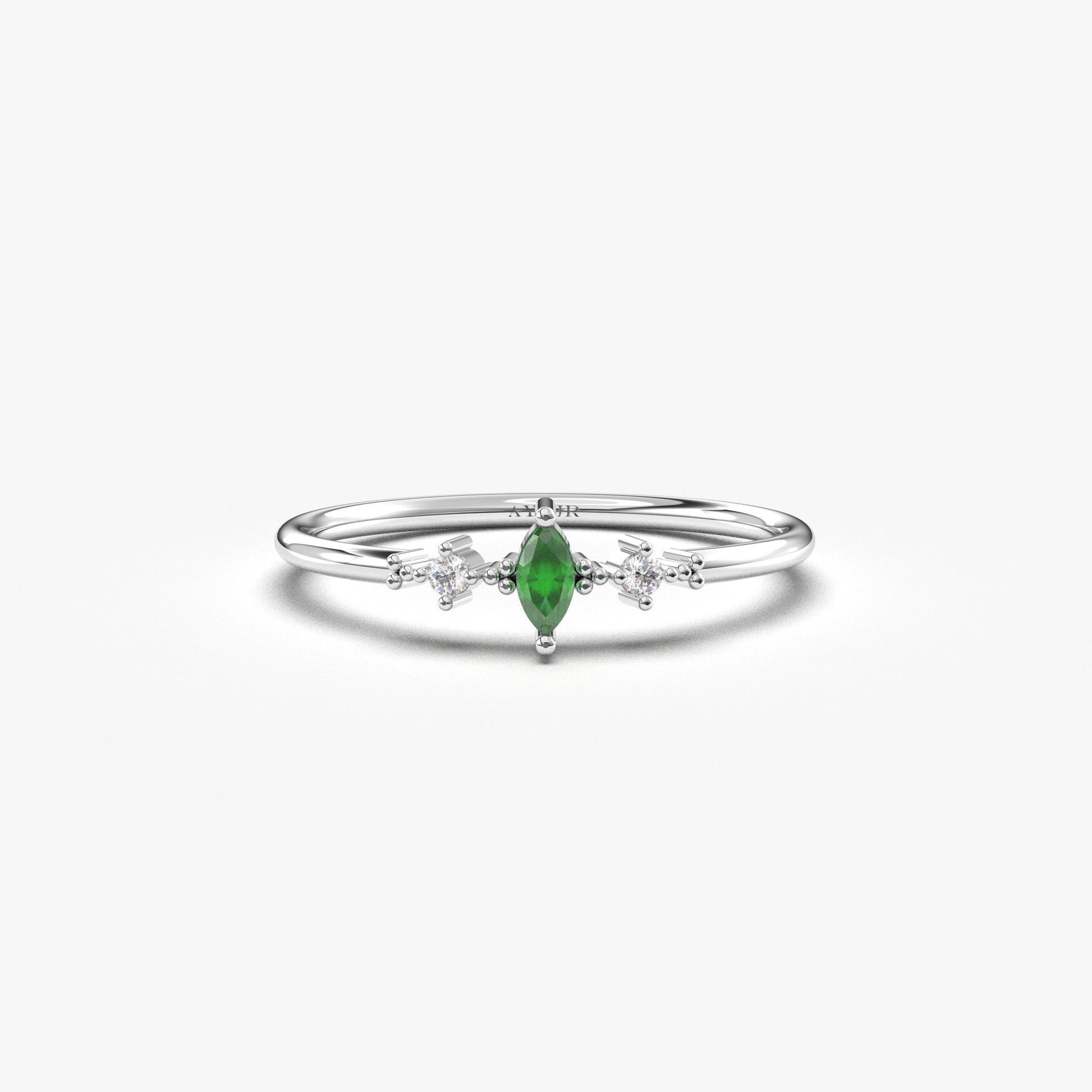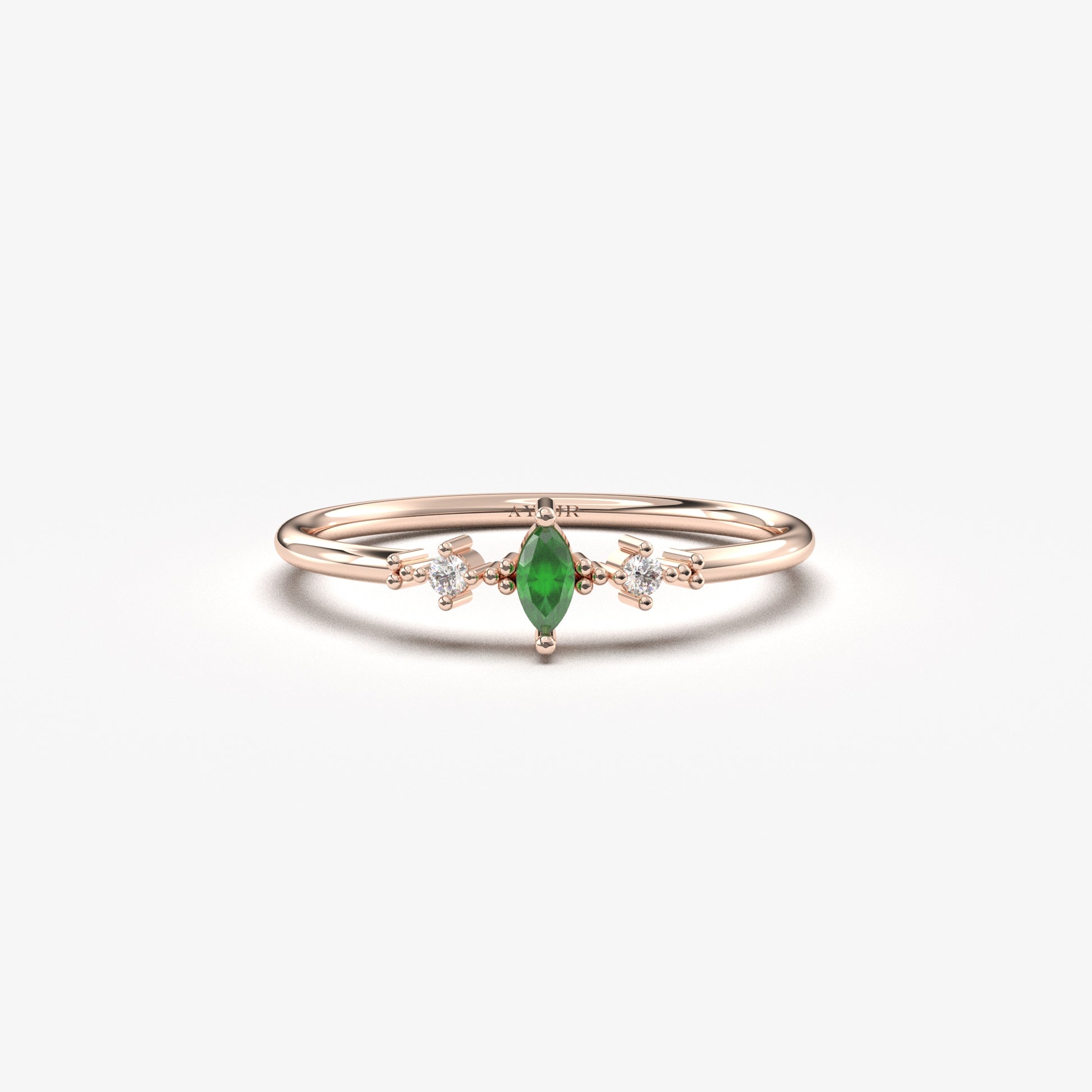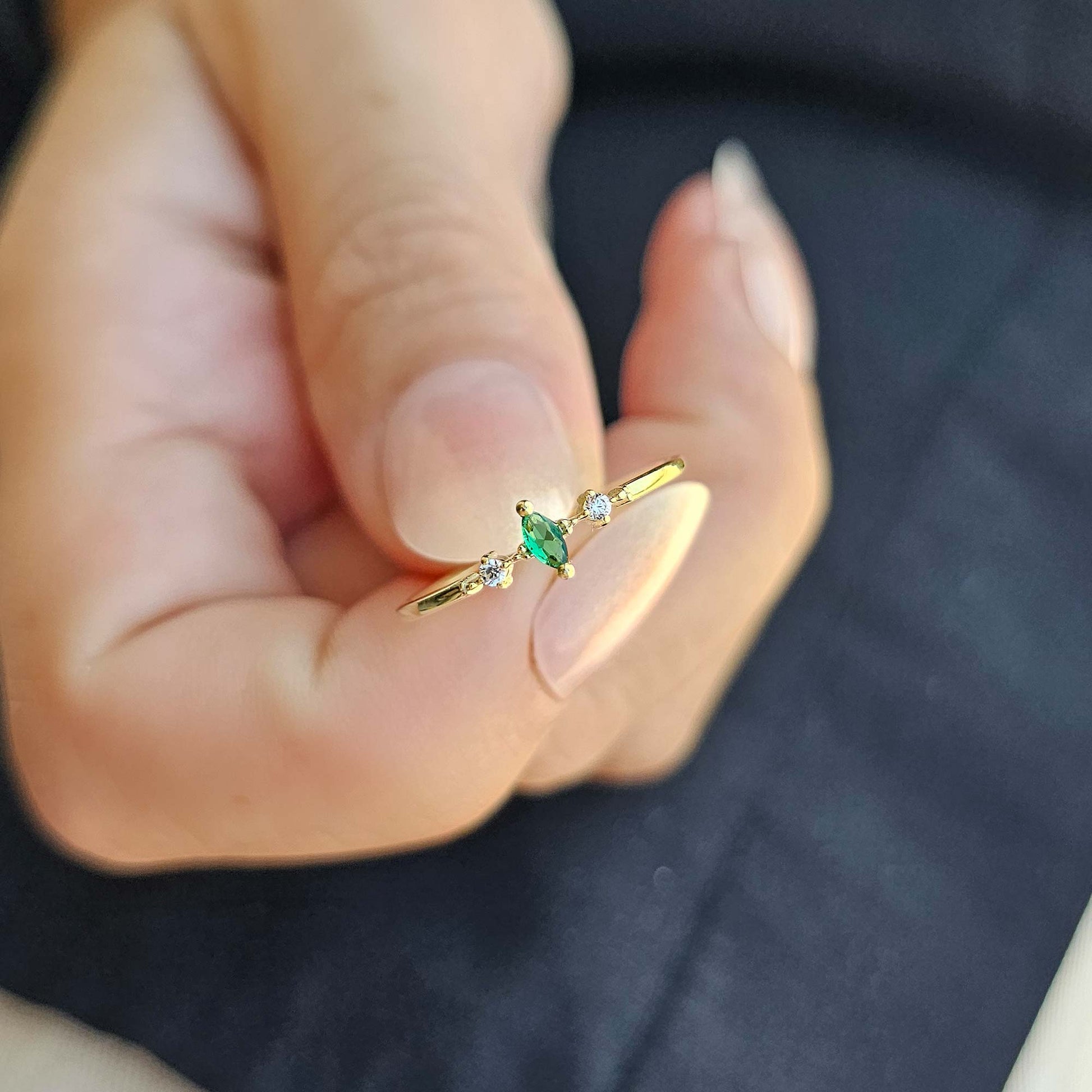 10K Gold Dainty Marquise Emerald and Cz Ring - 2S111EME