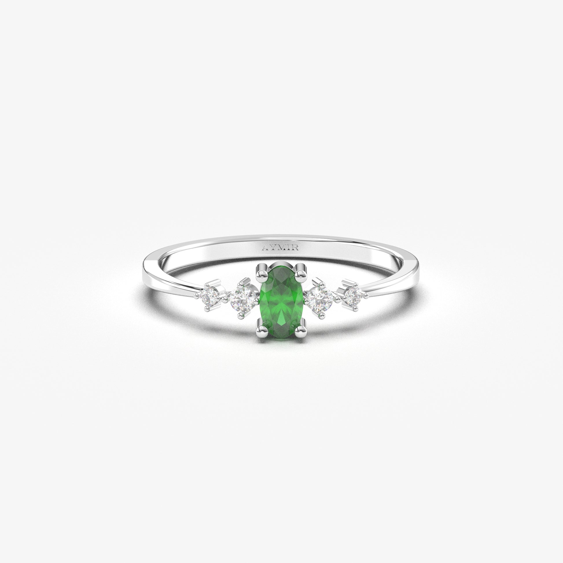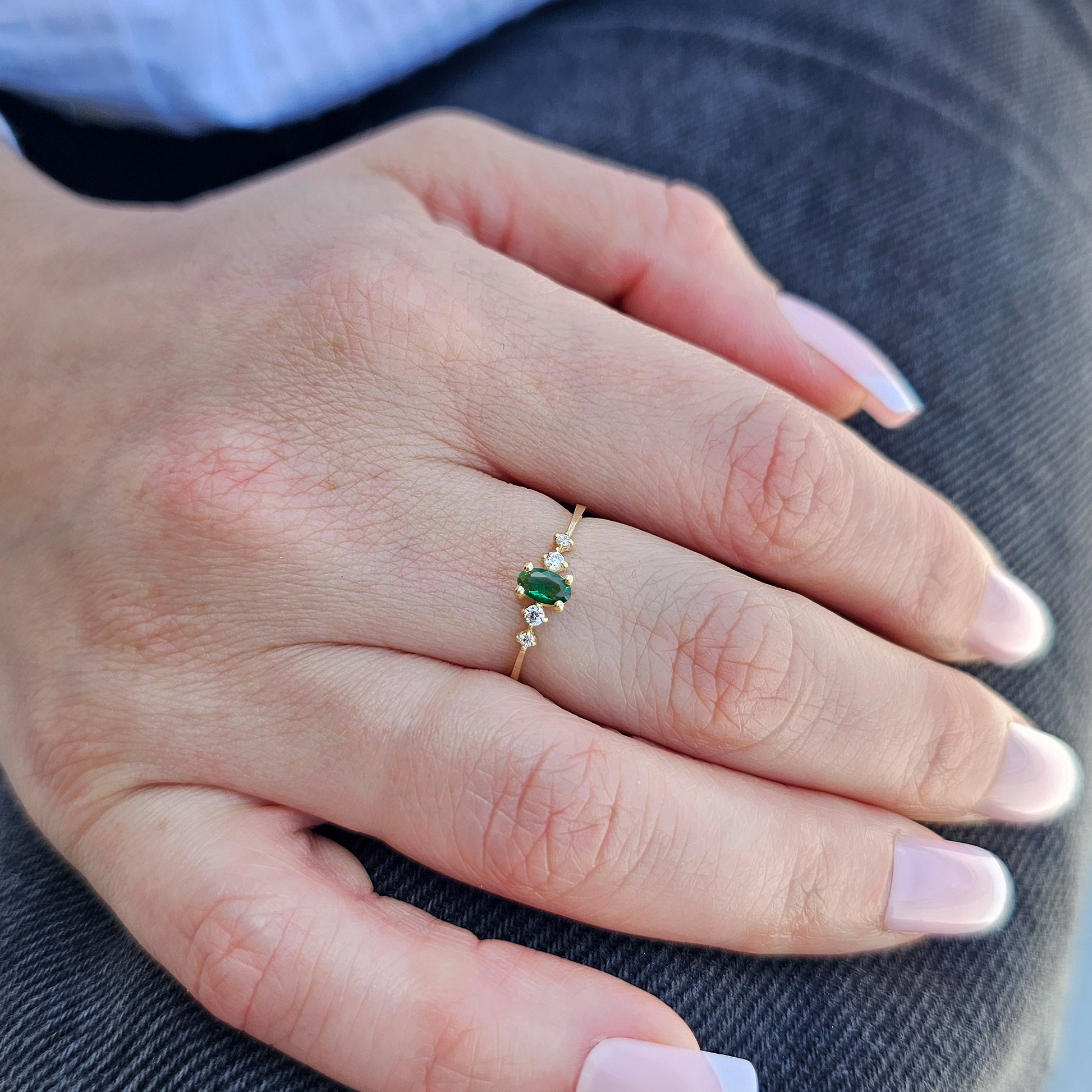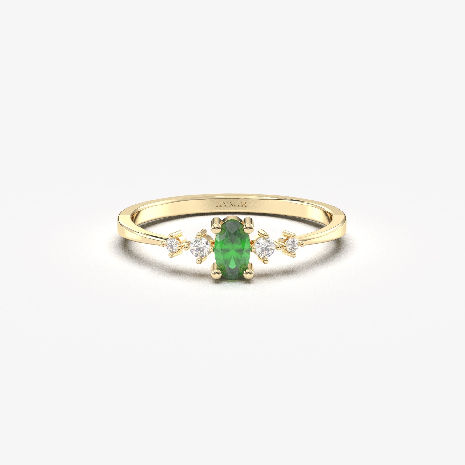 10K Gold Dainty Oval Emerald and Cz Ring - 2S121EME