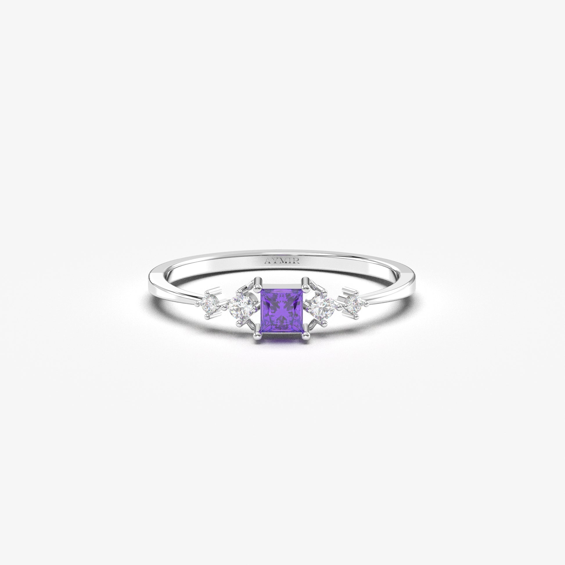 10K Gold Dainty Princess Amethyst and Cz Ring - 2S122AME