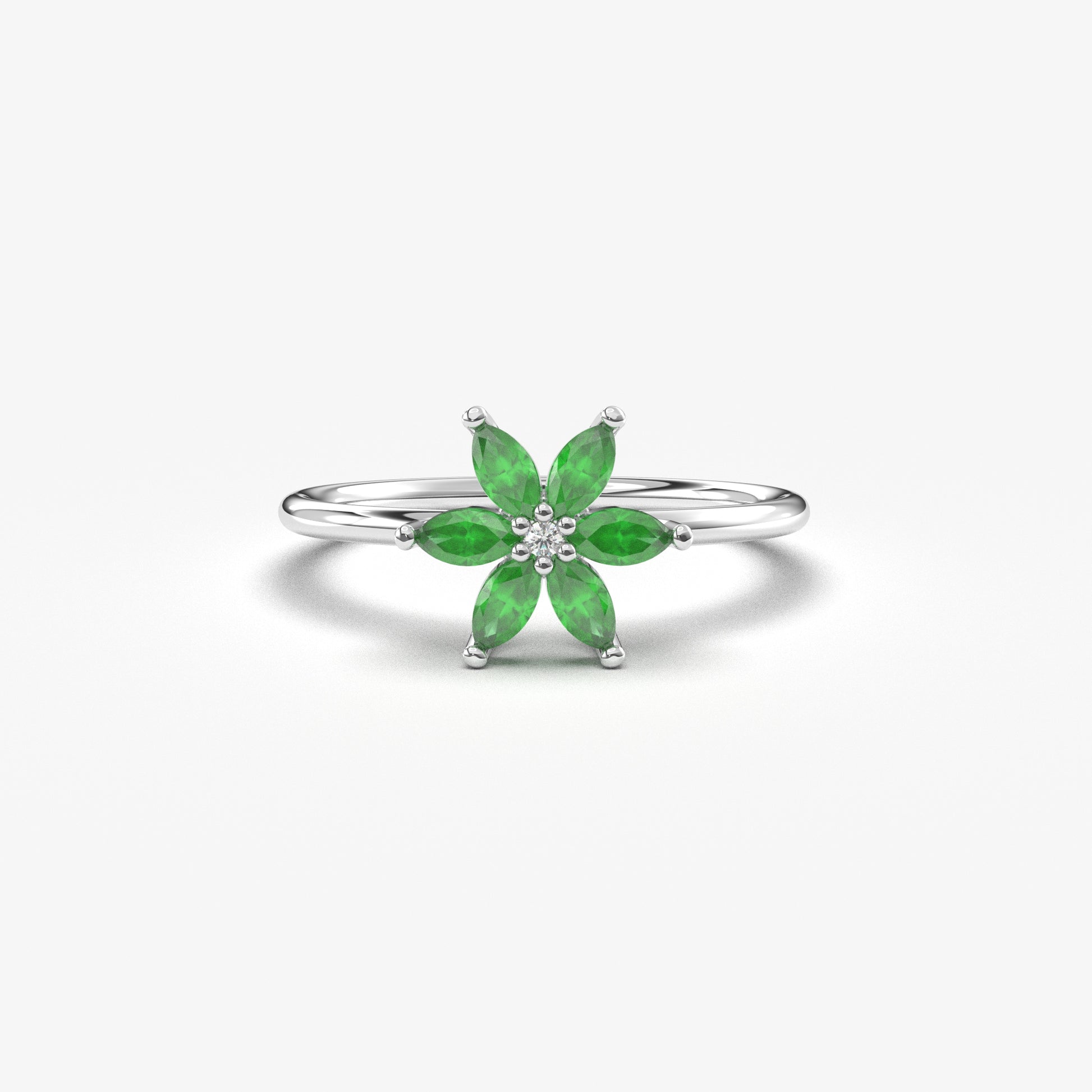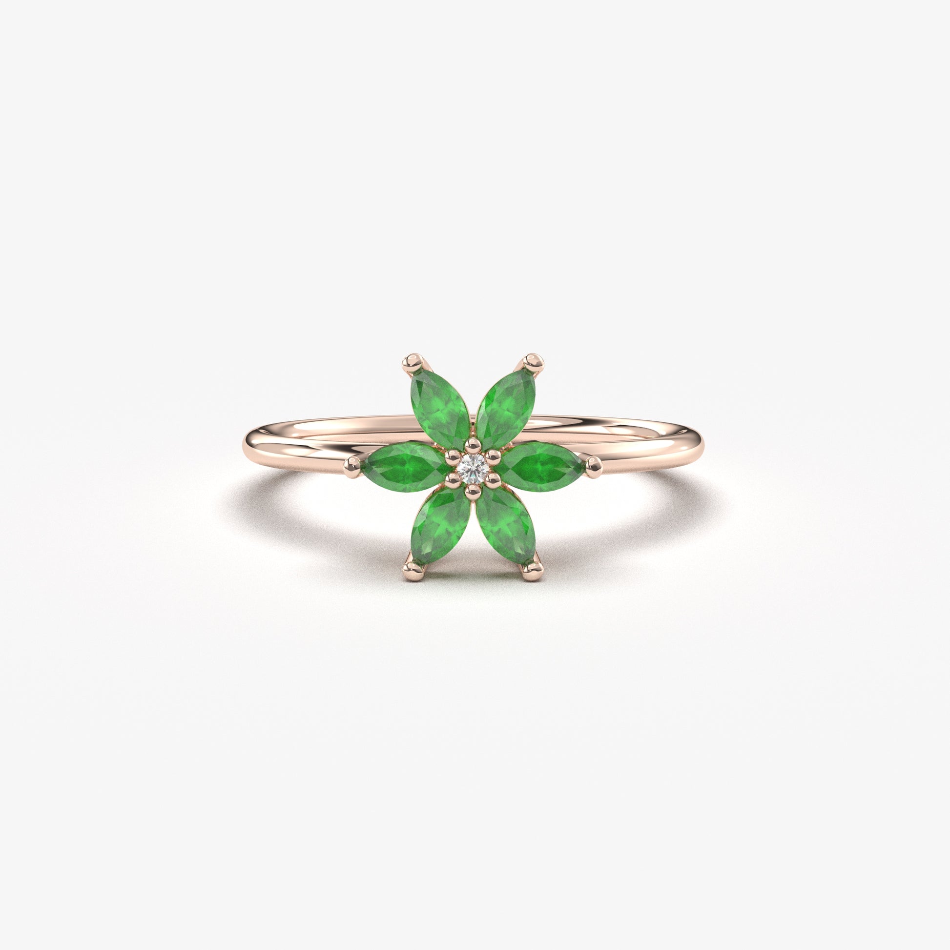10K Gold Floral Emerald and Diamond Ring - 8S132EME