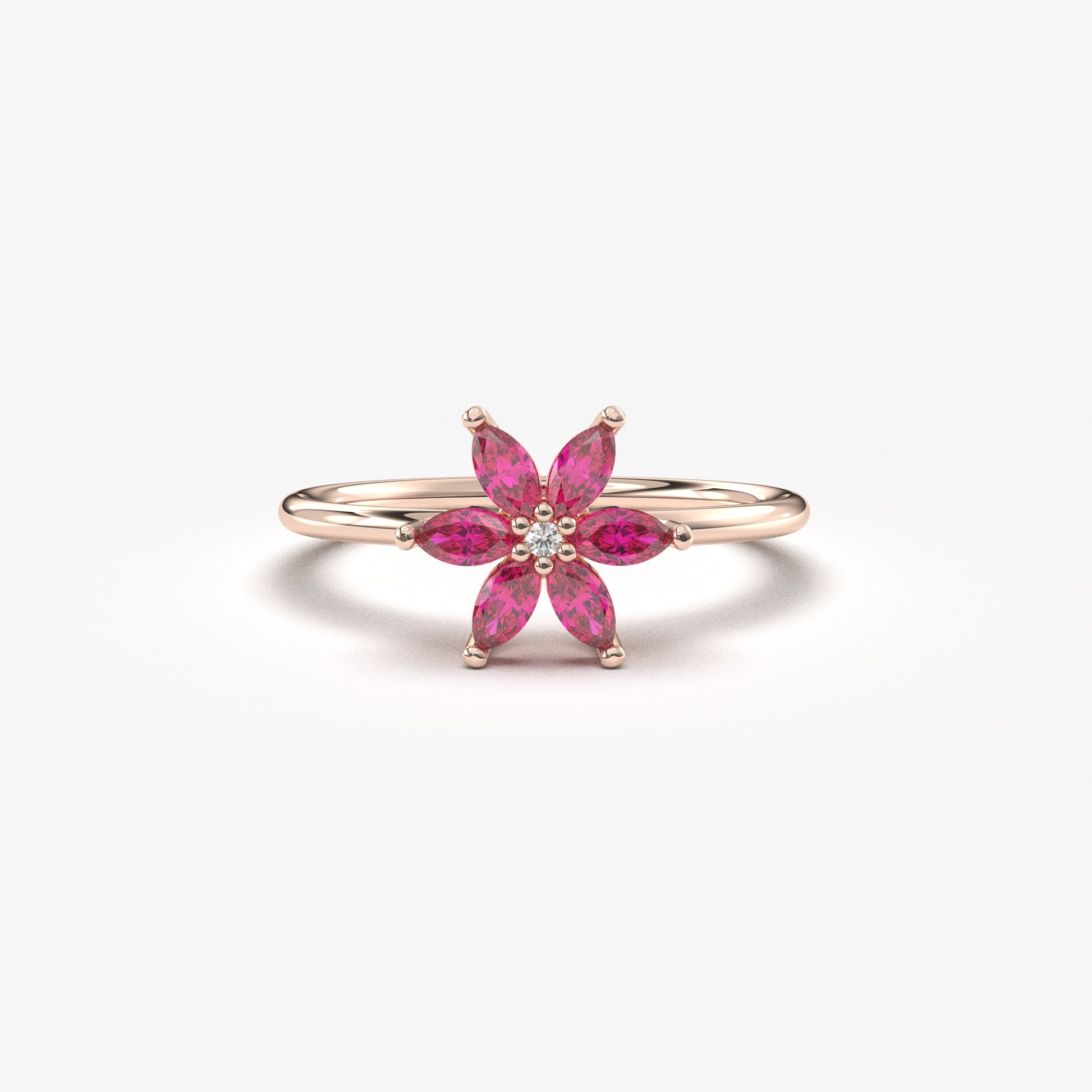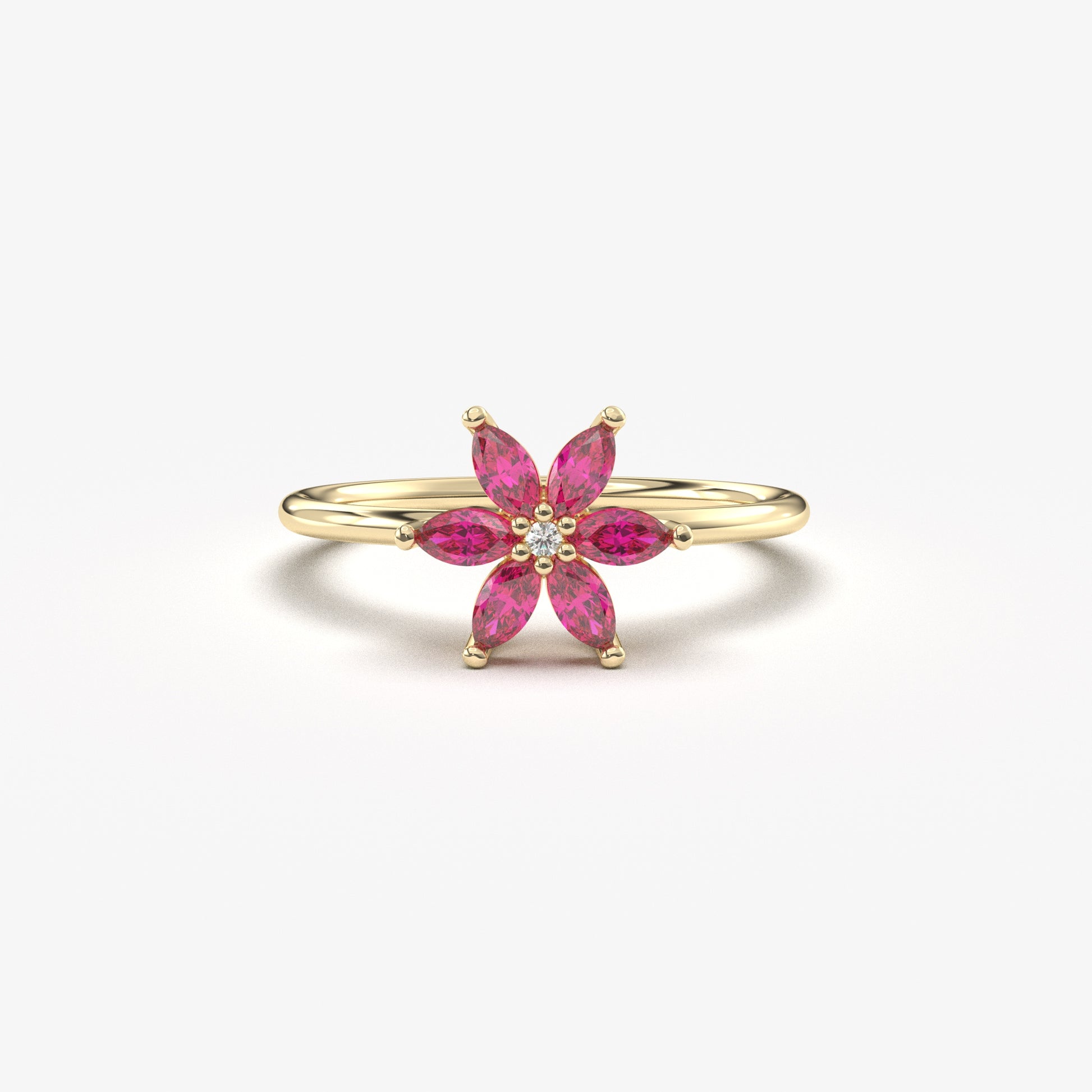 10K Gold Floral Ruby Marquise and Diamond Ring - 8S132RBY