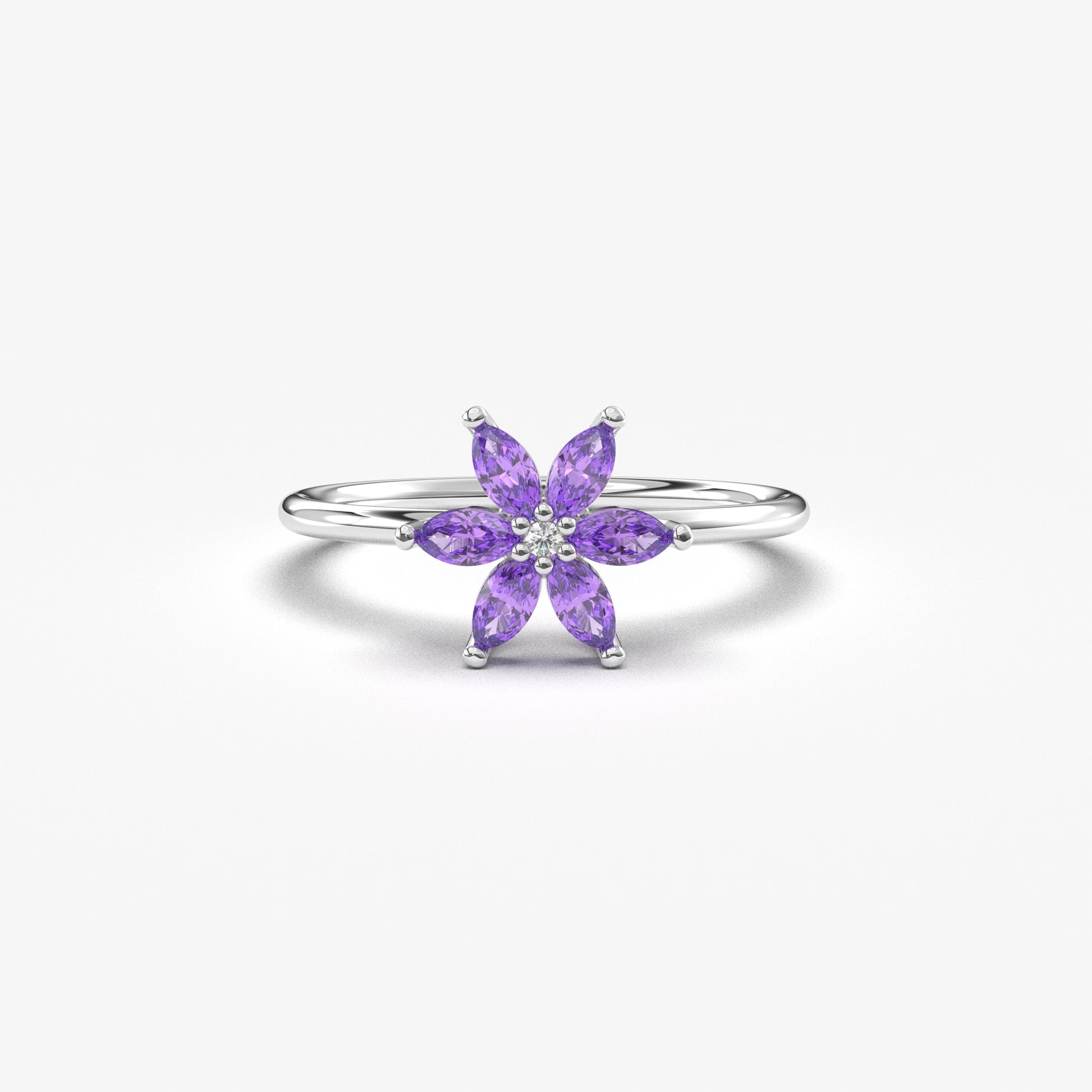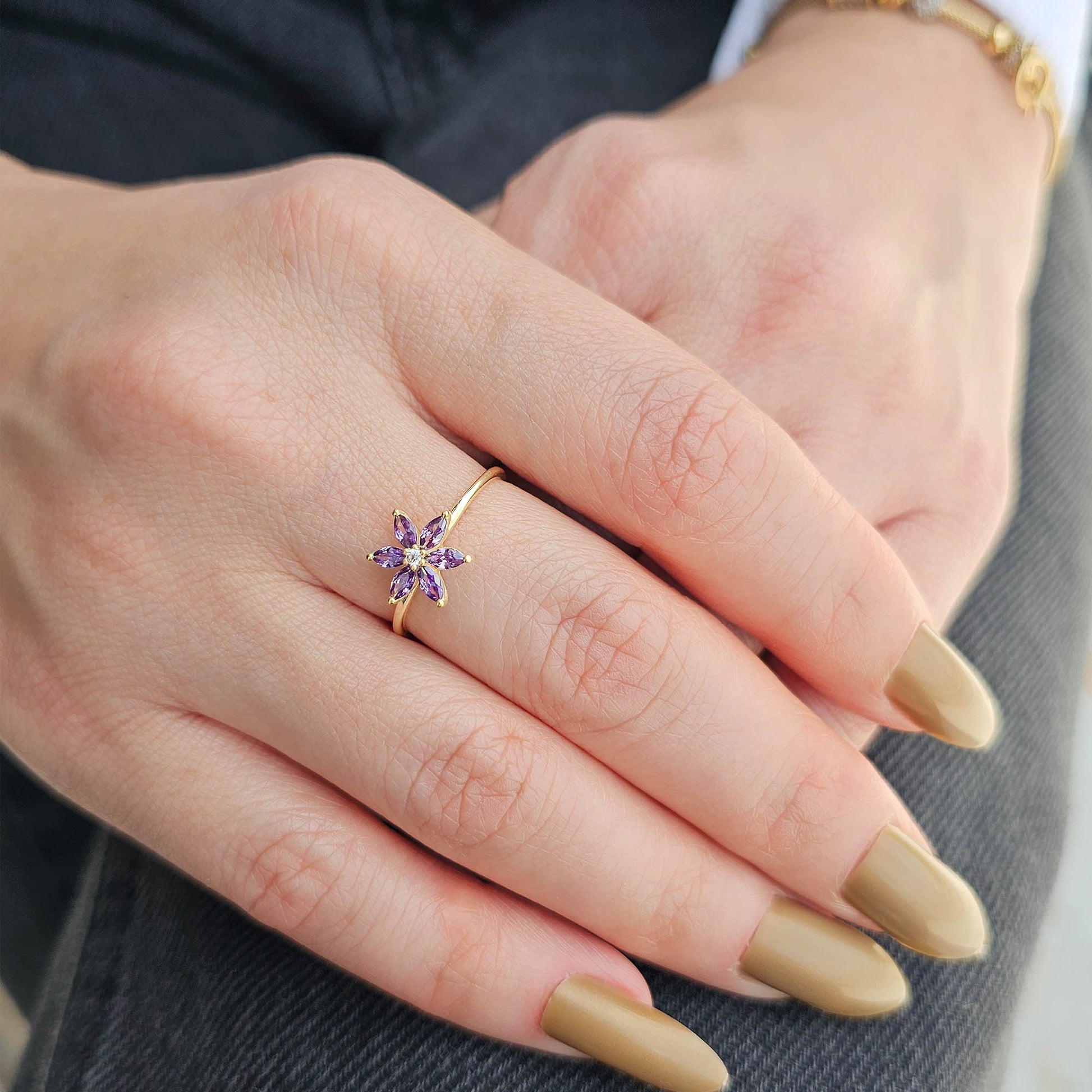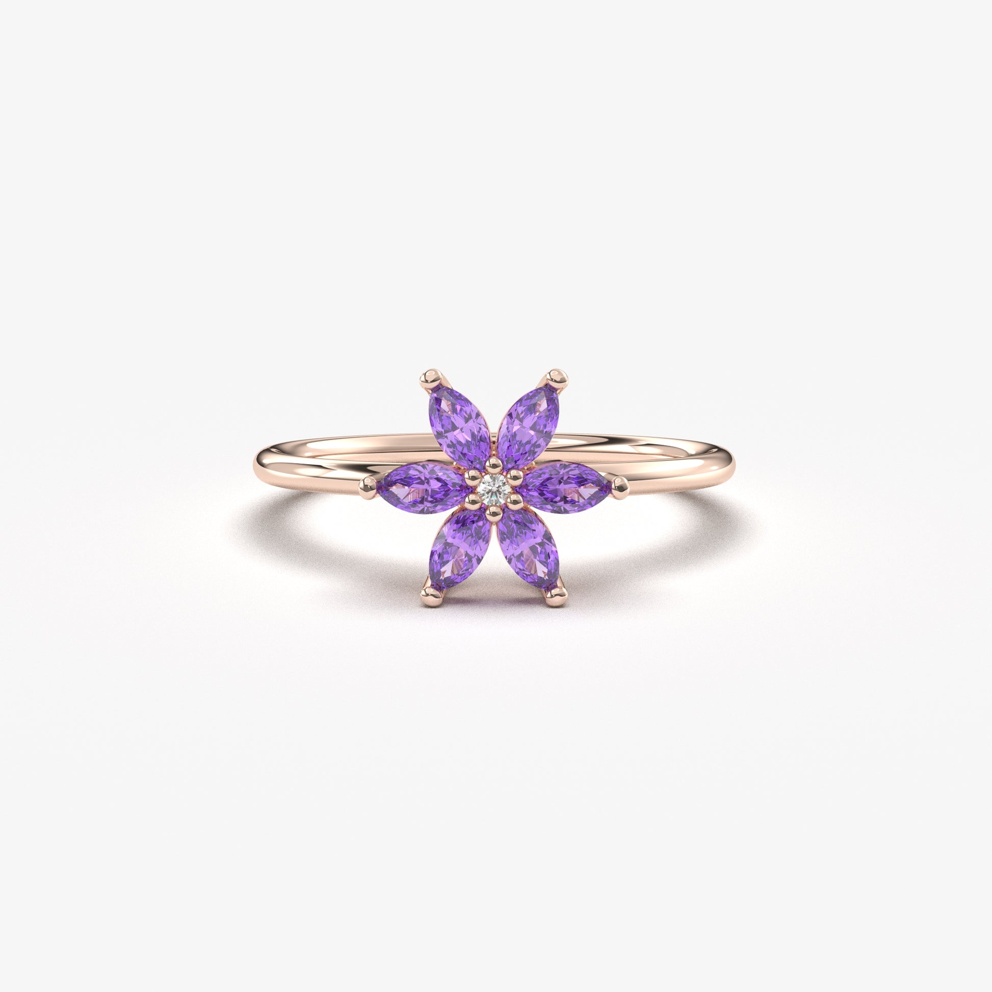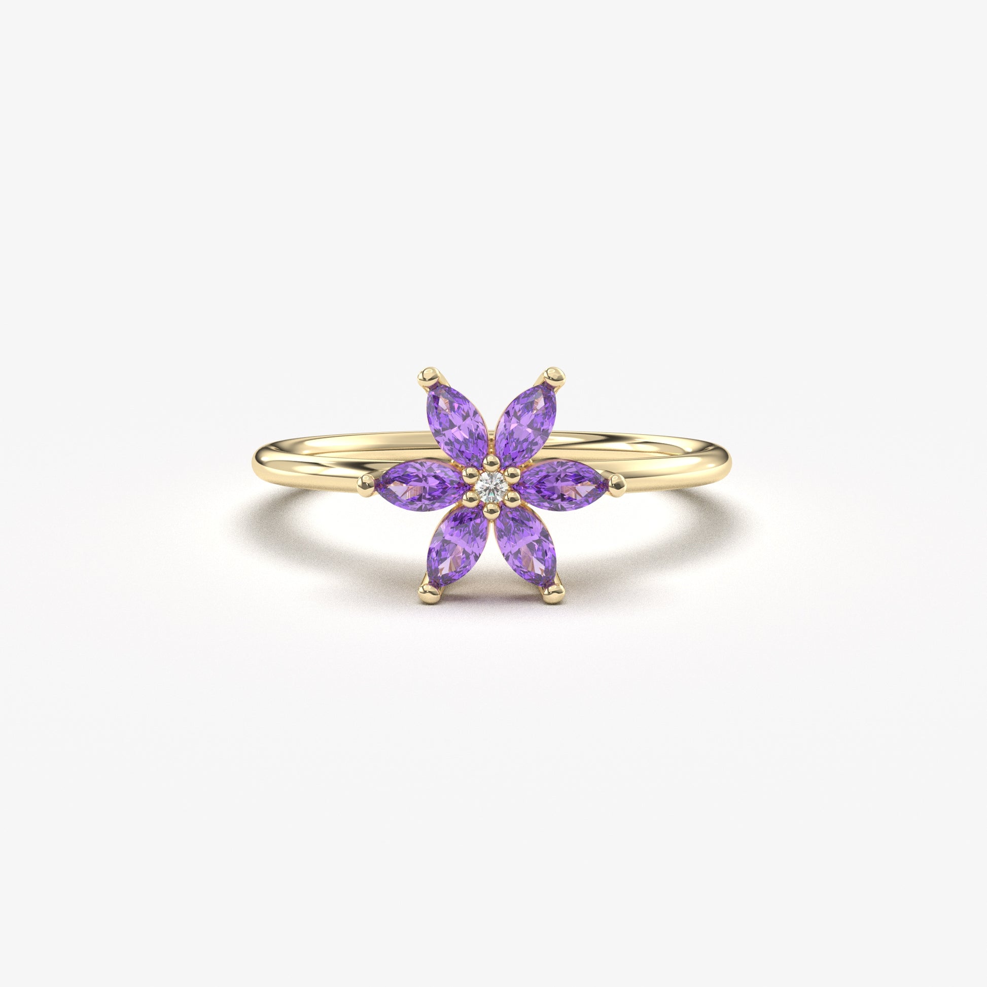 10K Gold Marquise Amethyst Diamond Ring - 8S132AME