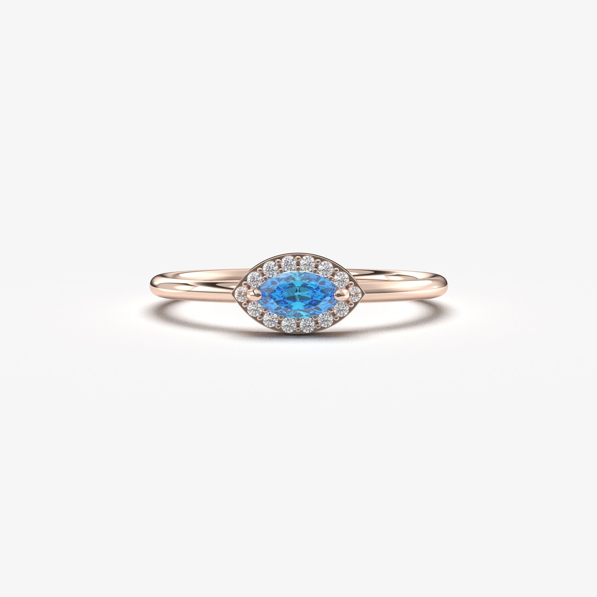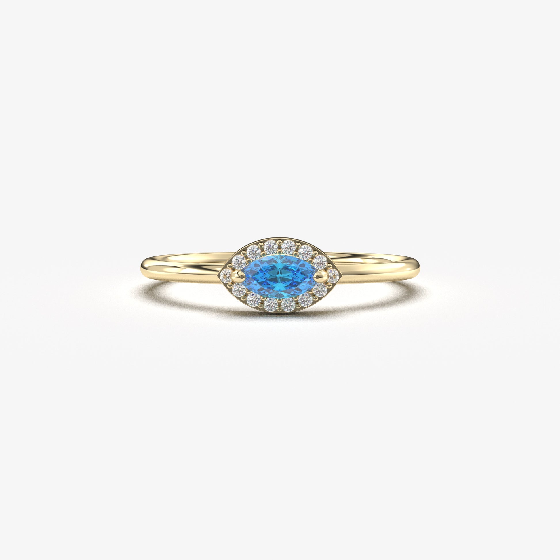 10K Gold Marquise Sky Blue and Cz Ring - 8S100SKY