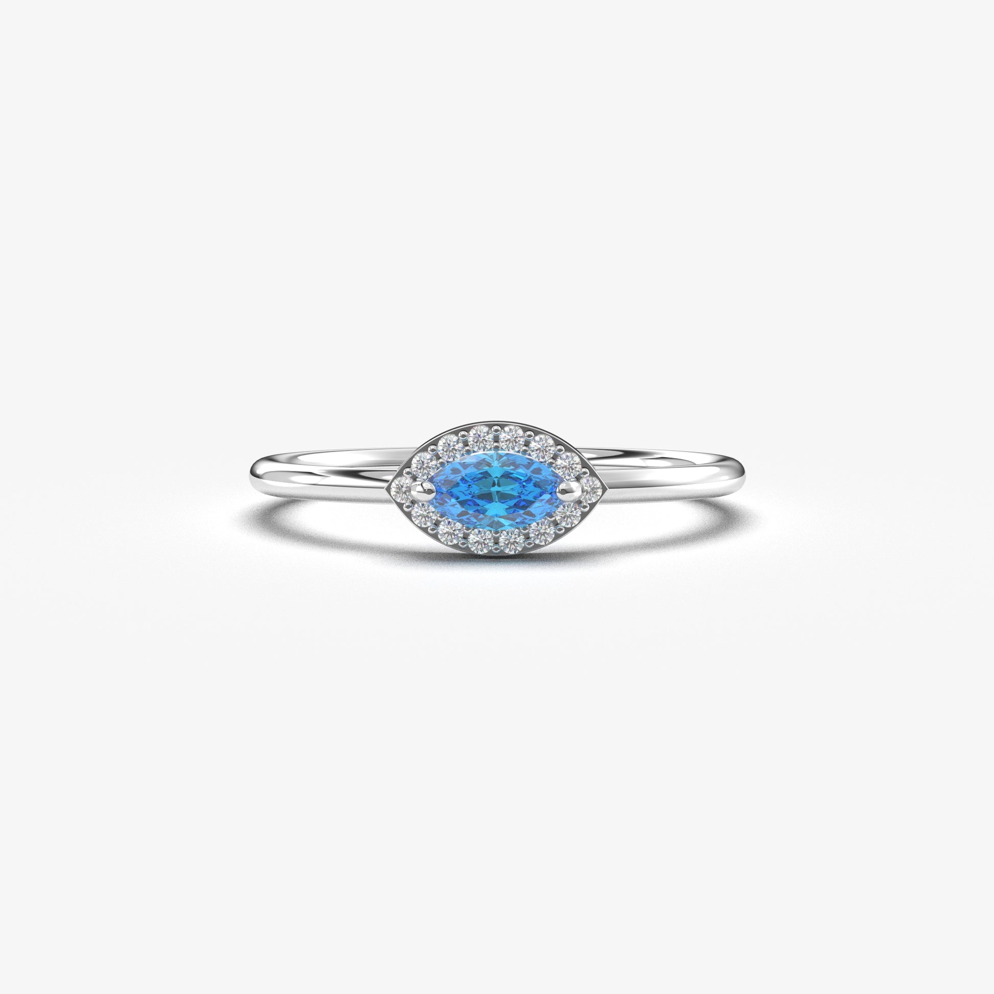 10K Gold Marquise Sky Blue and Diamond Ring - 8S100SKY