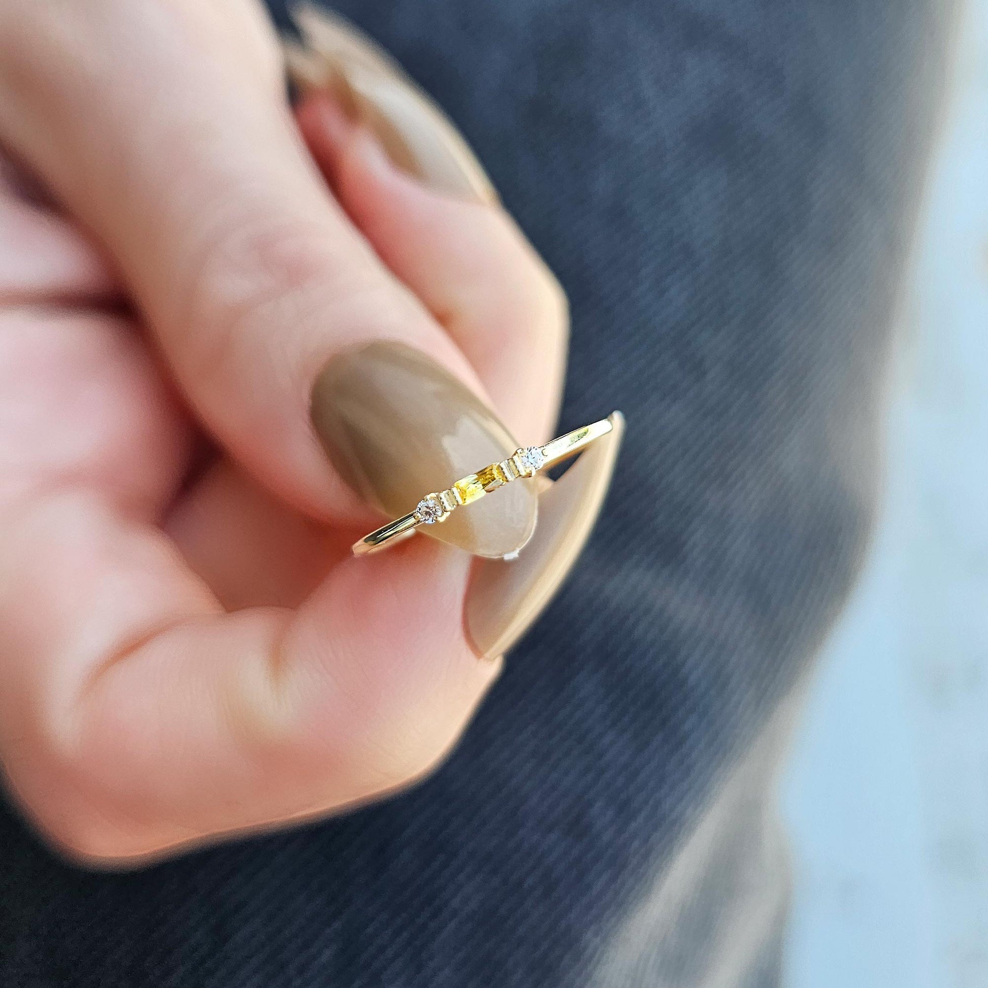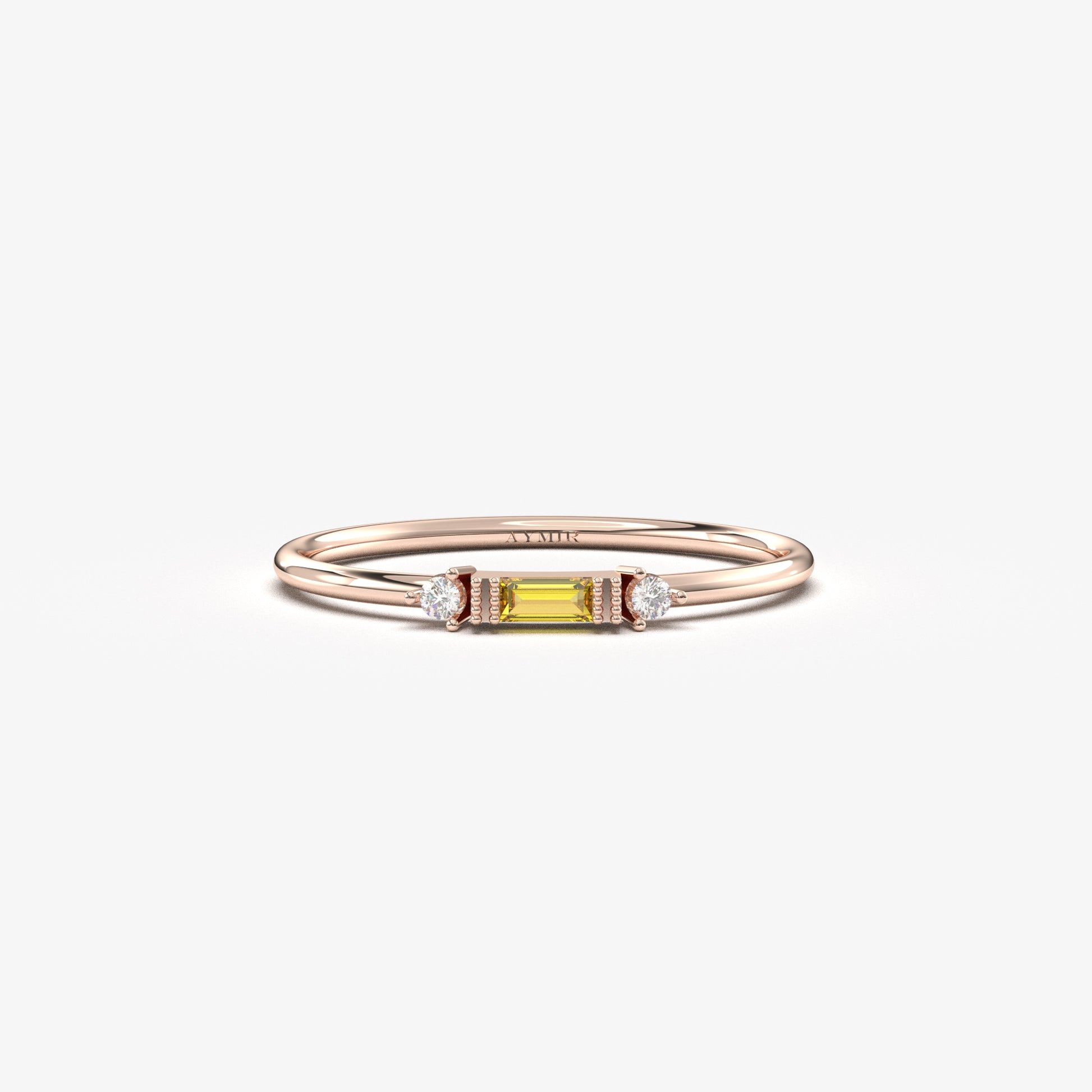10K Gold Minimalist Baguette Citrine and Cz Ring - 2S6CIT