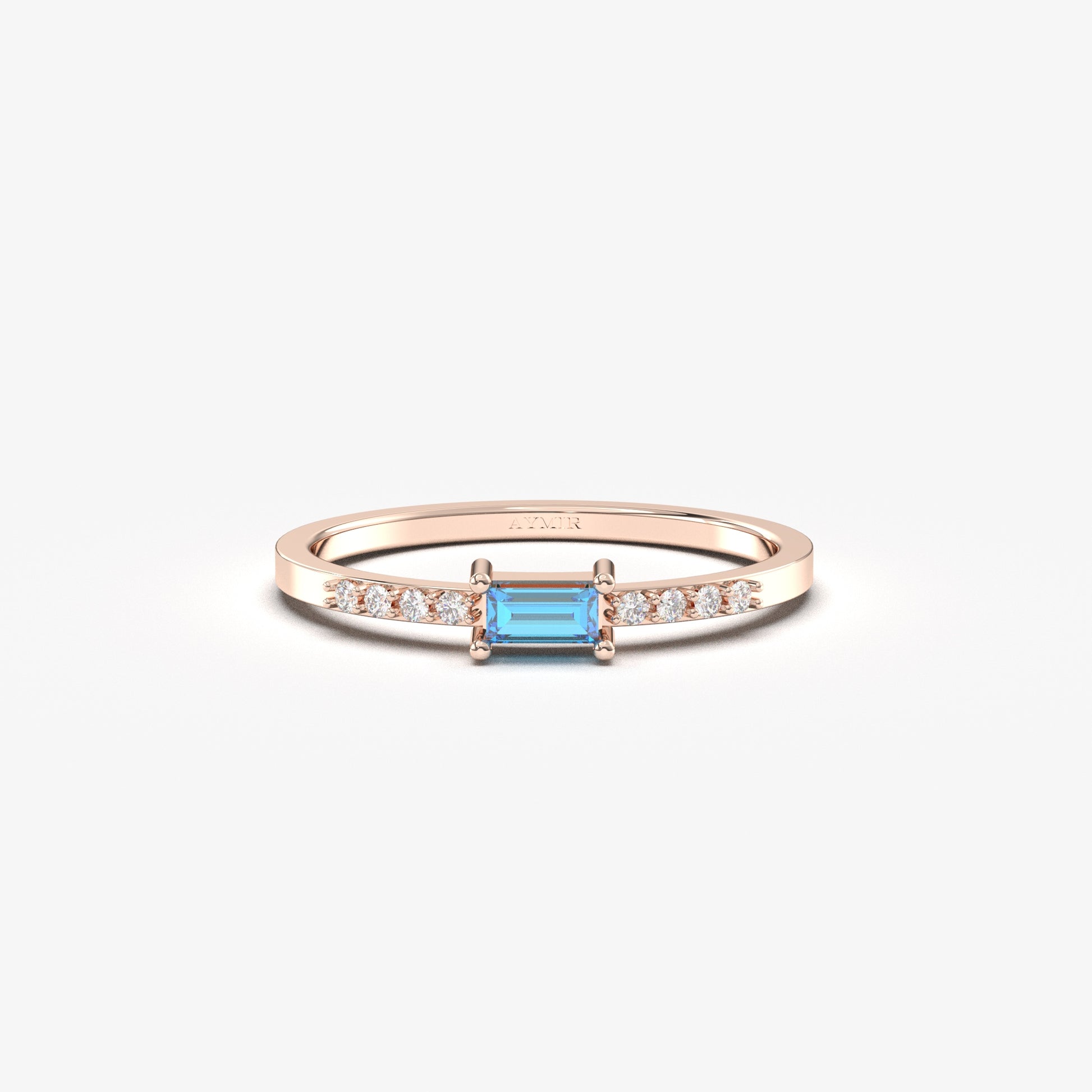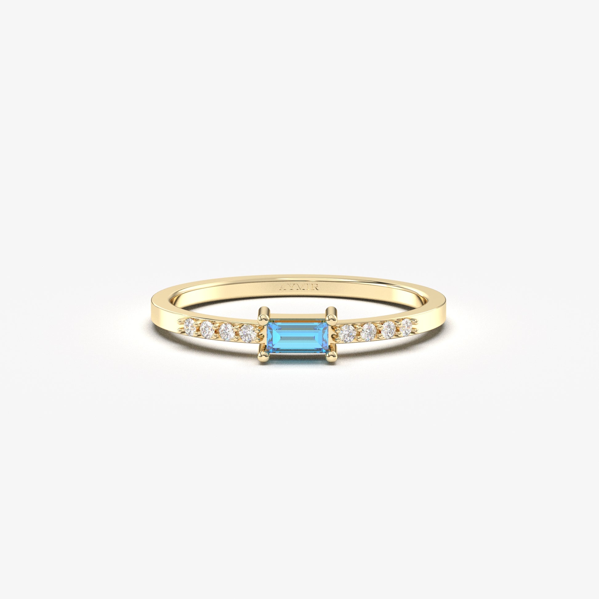 10K Gold Minimalist Baguette Sky Blue and Diamond Ring - 2S2SKY
