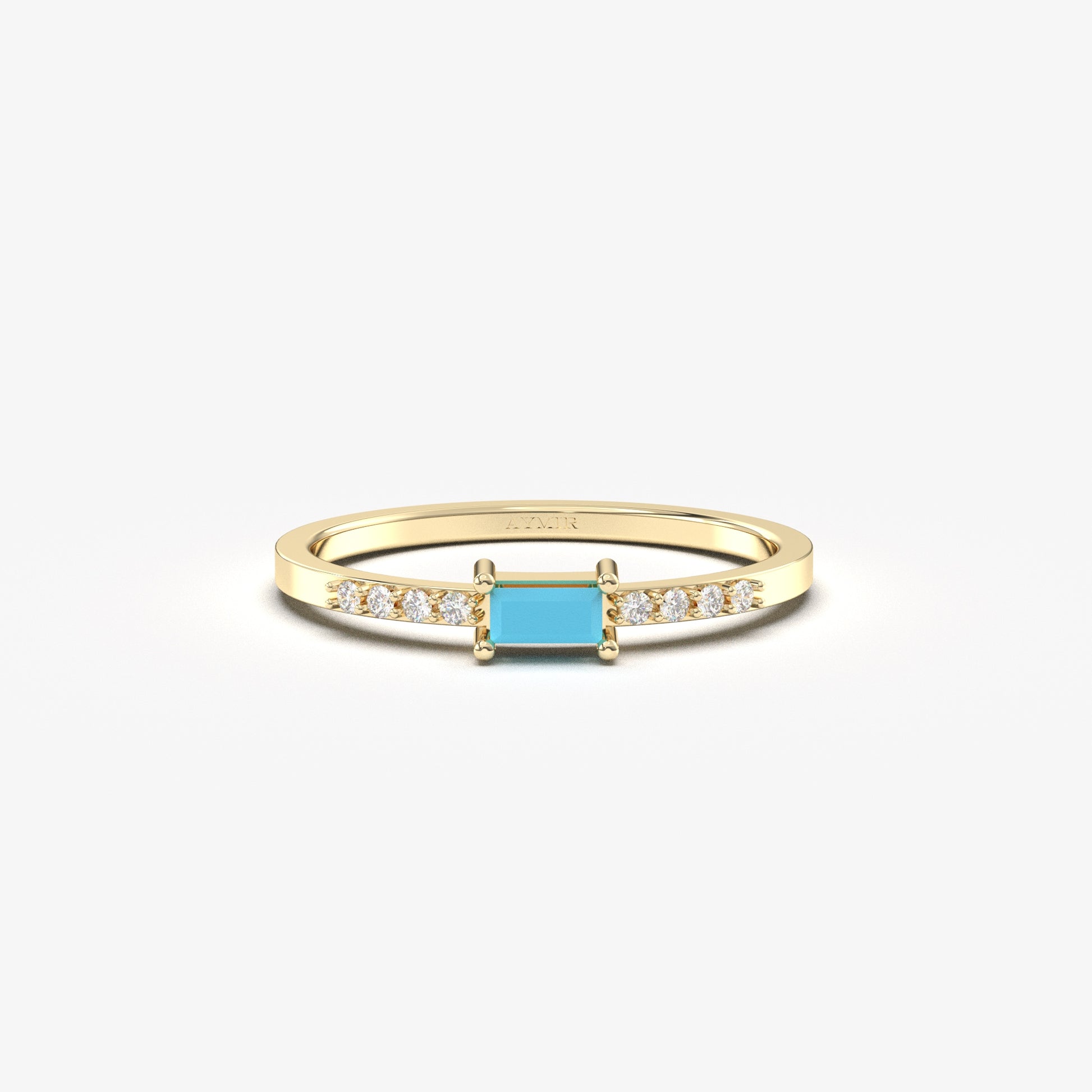10K Gold Minimalist Baguette Turquoise and Cz Ring - 2S2TURQ