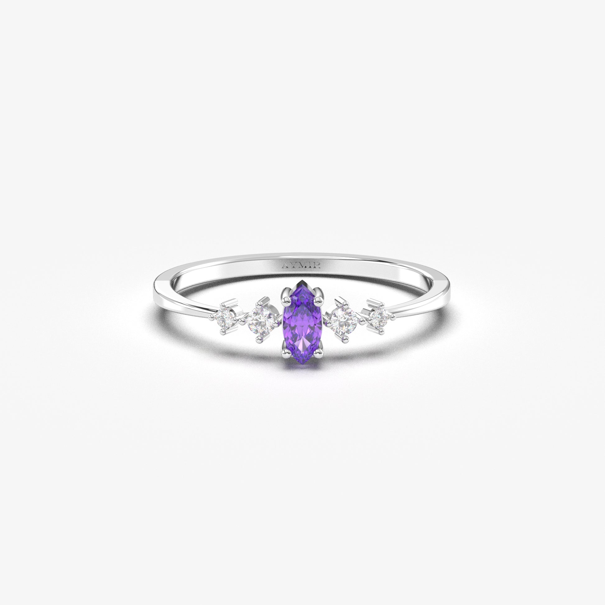 10K Gold Minimalist Marquise Amethyst and Cz Ring - 2S124AME