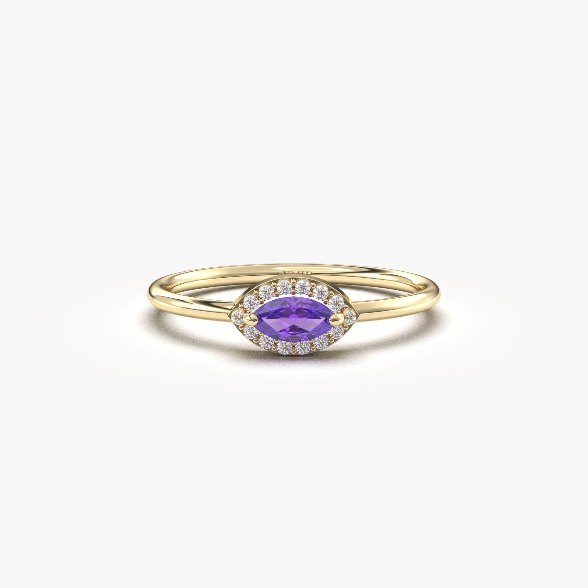 10K Gold Minimalist Marquise Amethyst and Cz Ring - 8S100AME