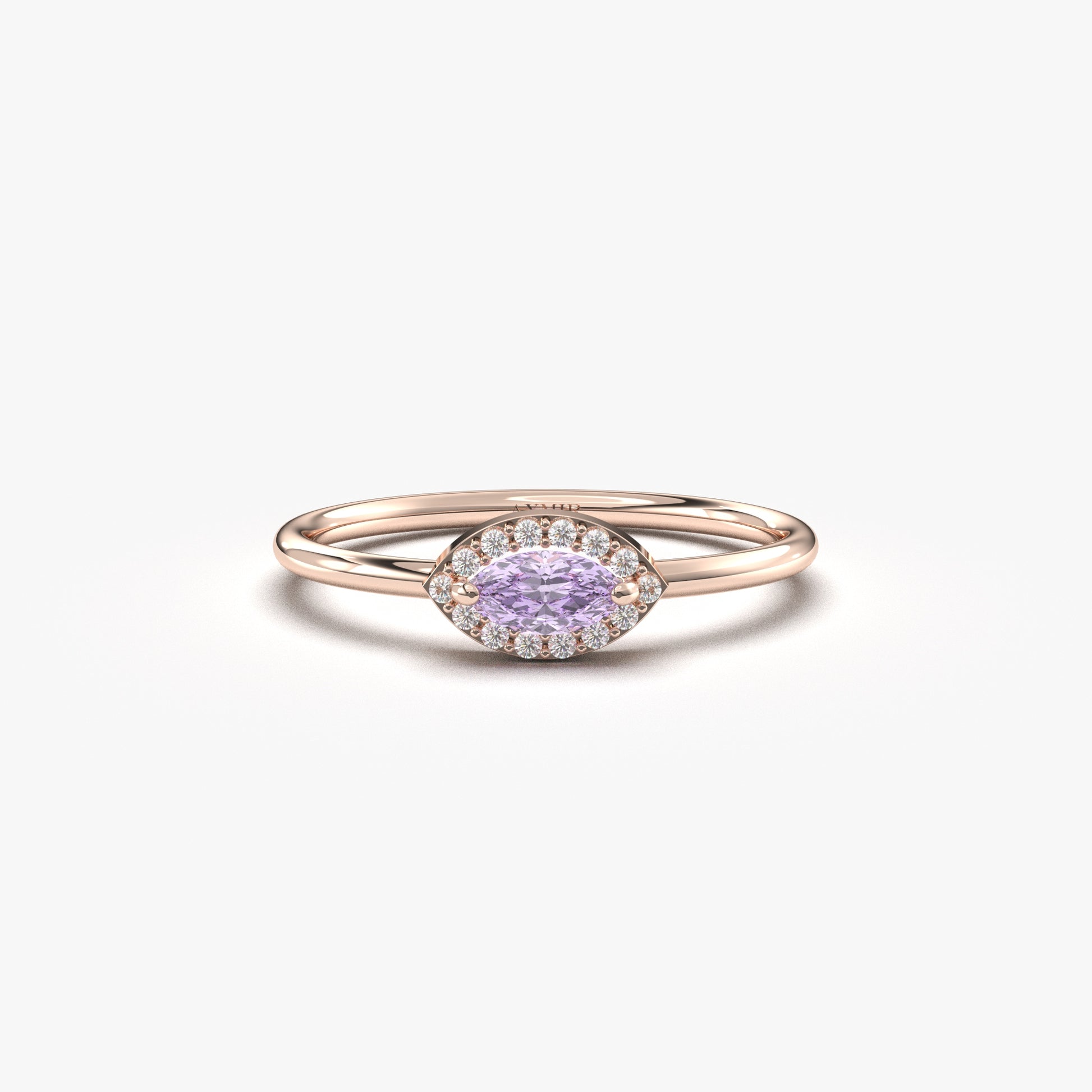 10K Gold Minimalist Marquise Lavender and Cz Ring - 8S100LAV