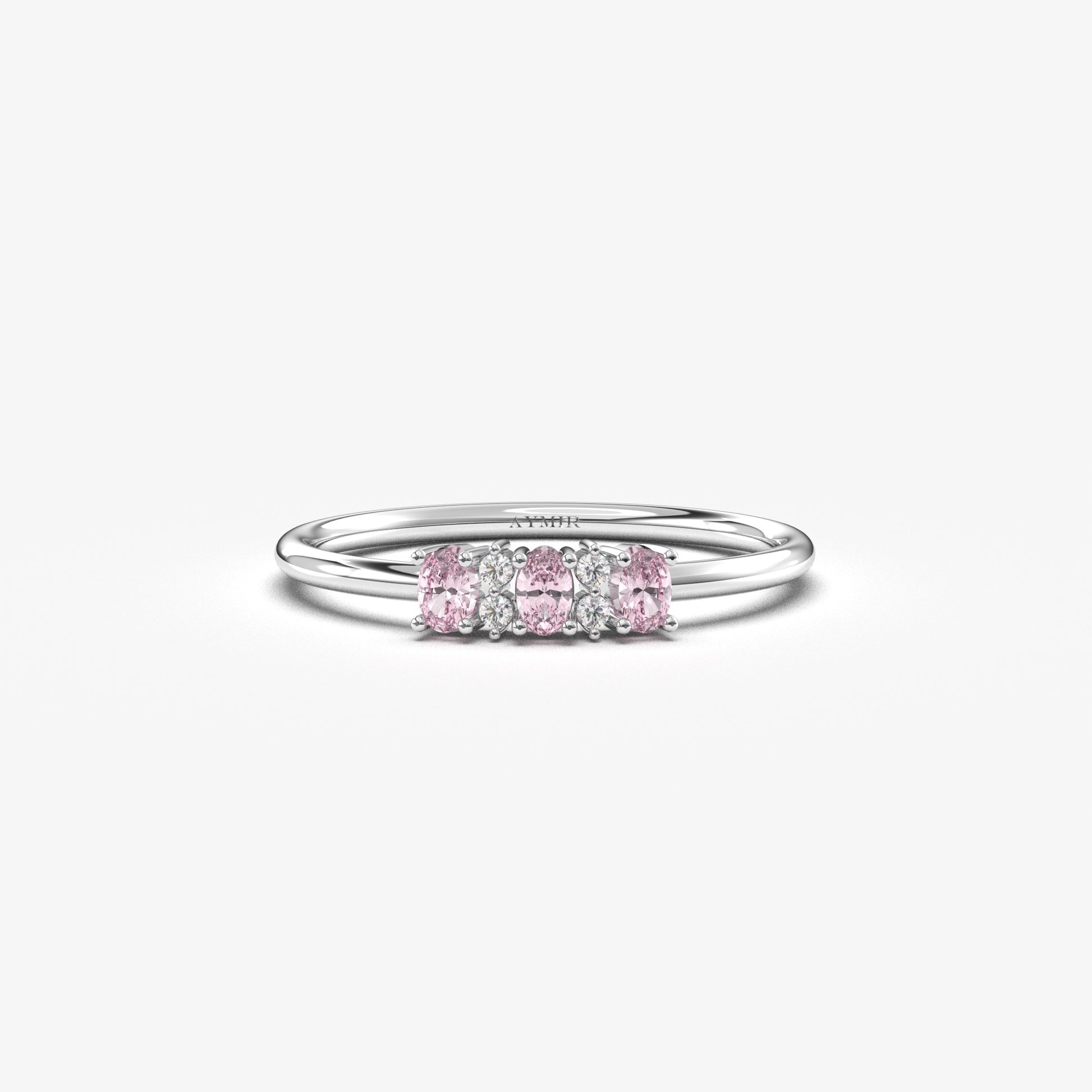 10K Gold Minimalist Oval Pink and Cz Ring - 2S46PNK