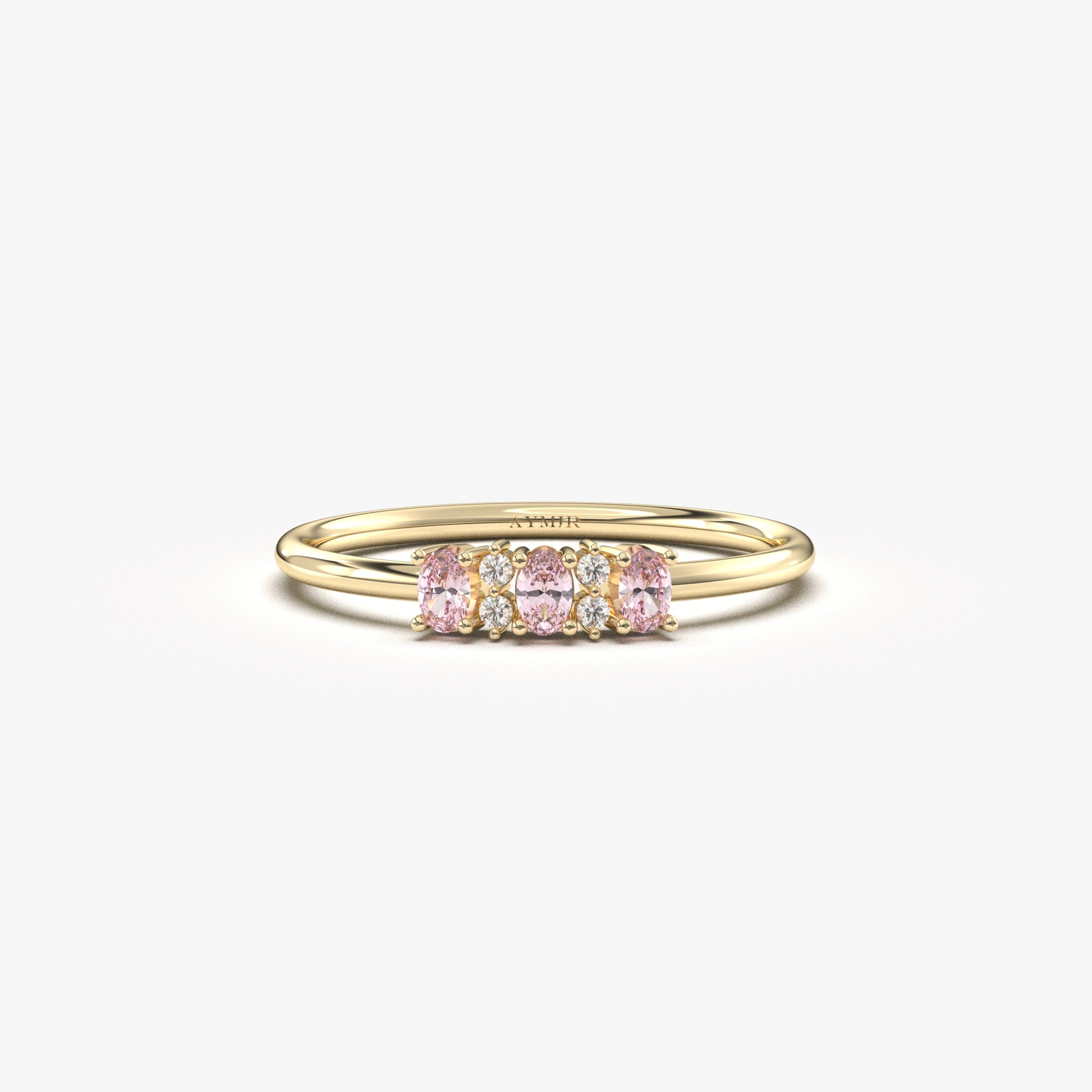 10K Gold Minimalist Oval Pink and Diamond Ring - 2S46PNK