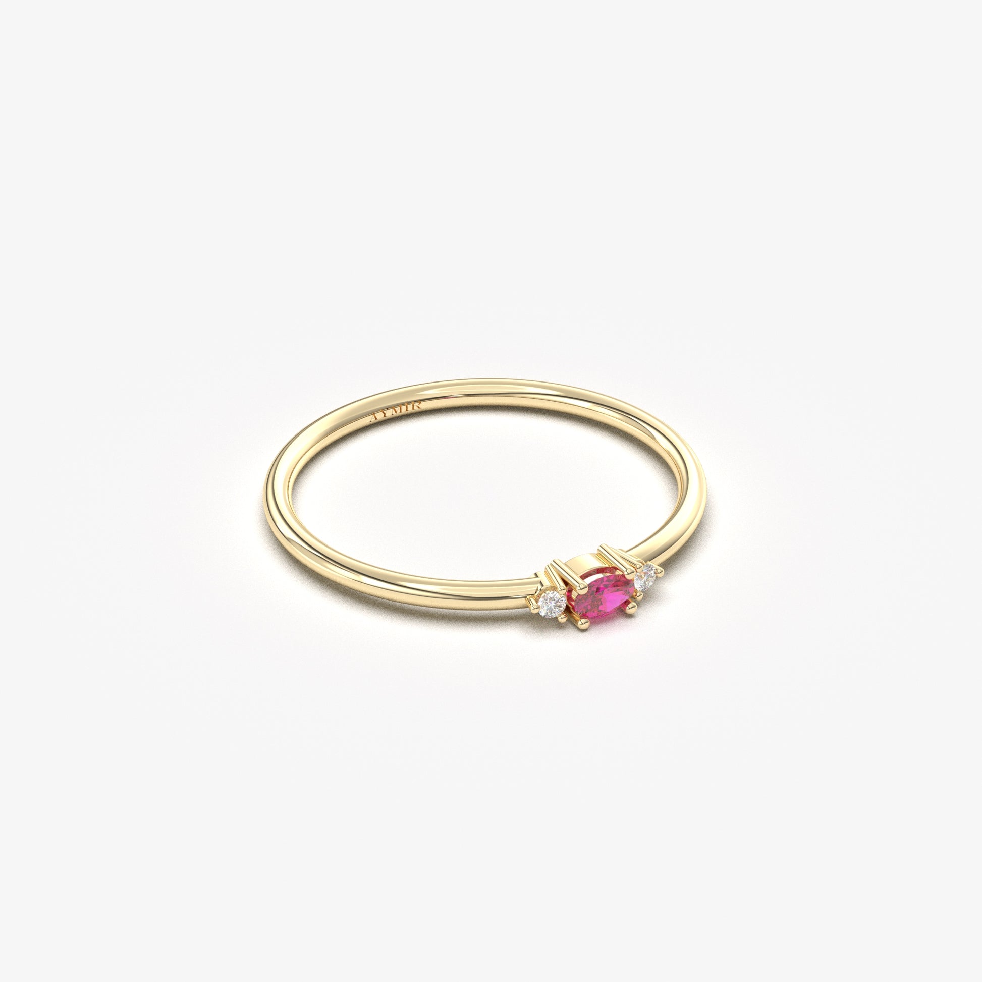 10K Gold Minimalist Oval Ruby and Cz Ring - 2S84RBY