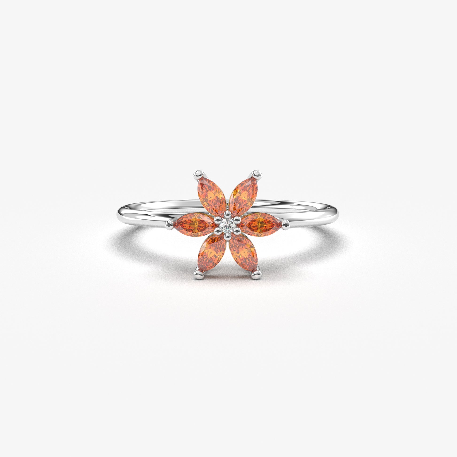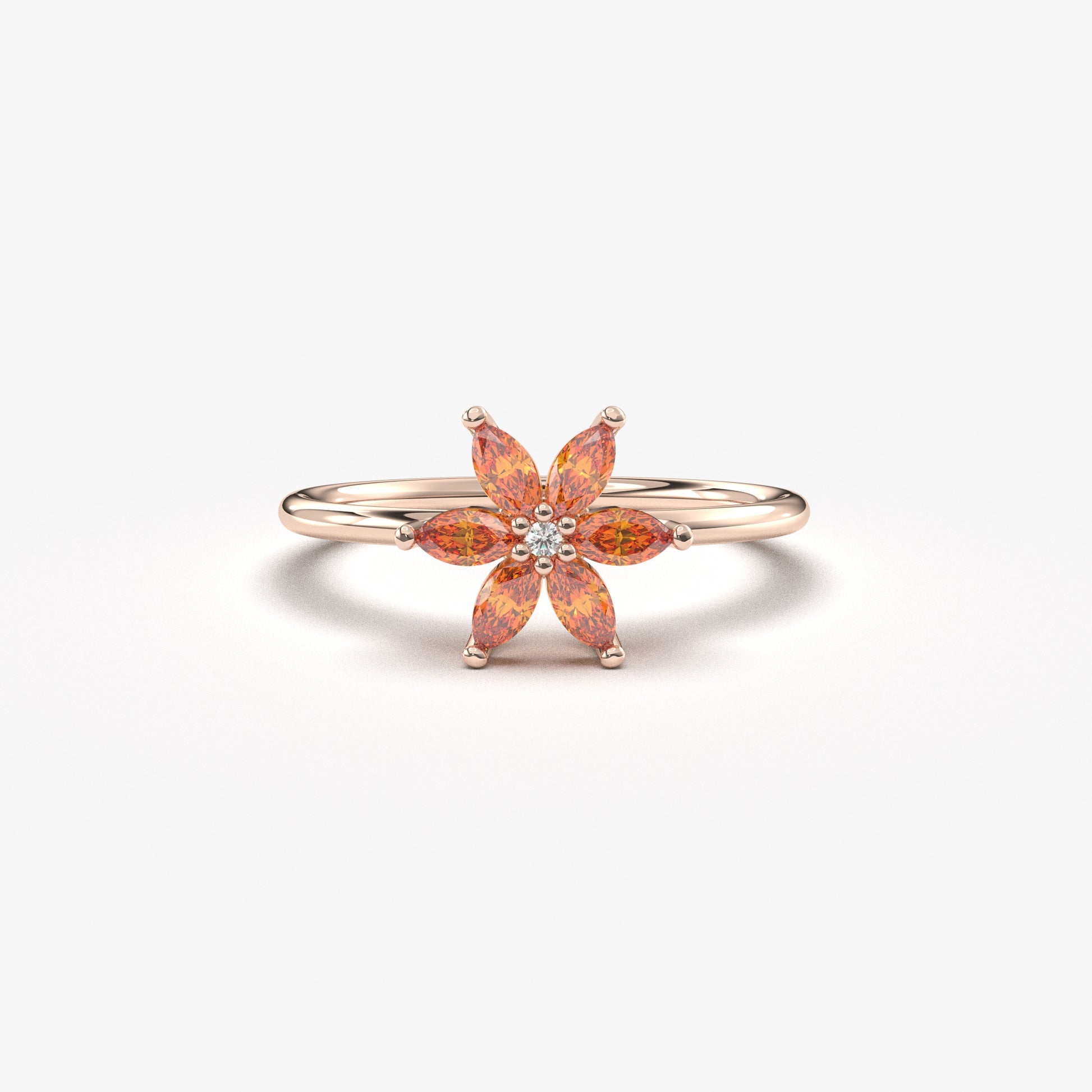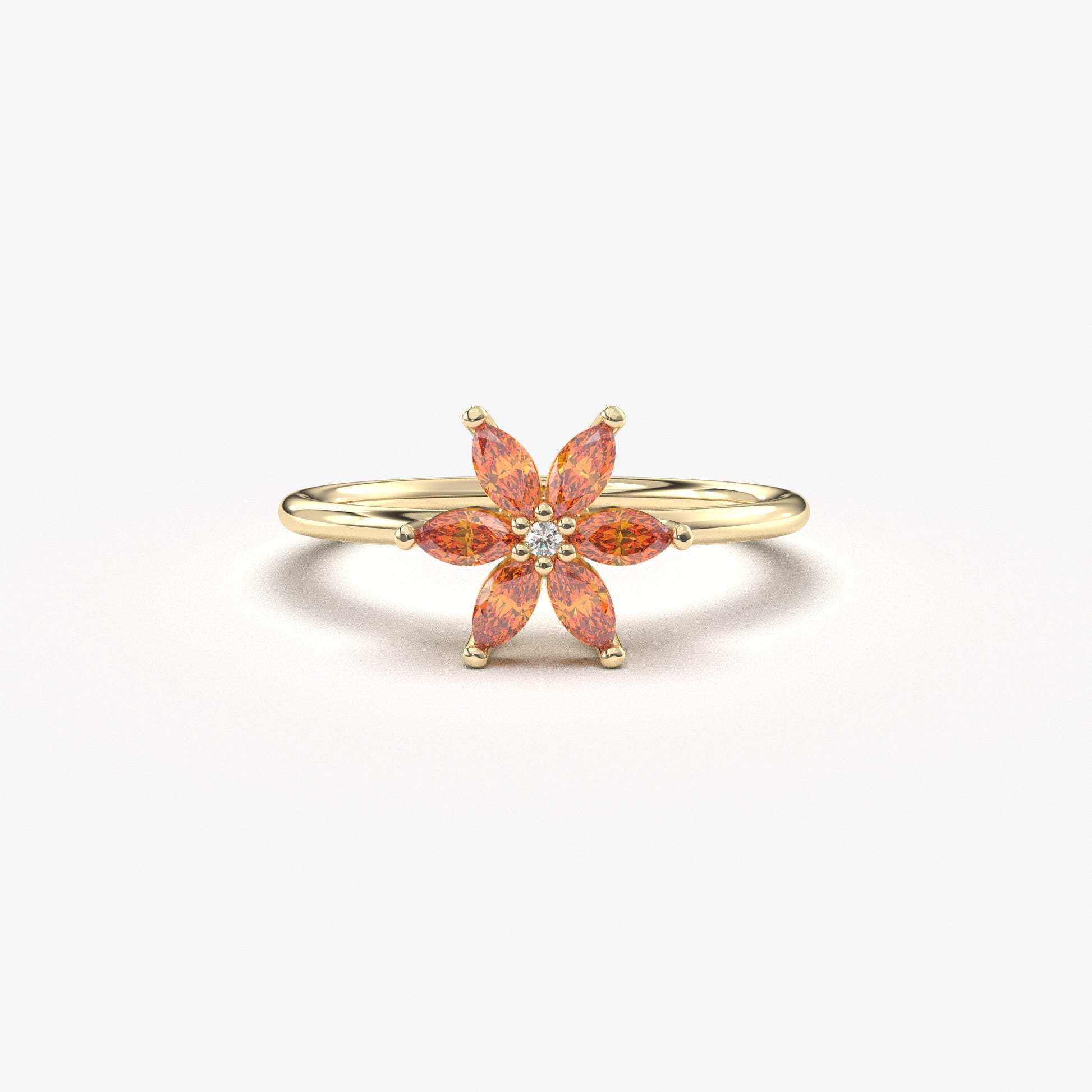 10K Gold Orange Flower Marquise and Diamond Ring - 8S132ORNG
