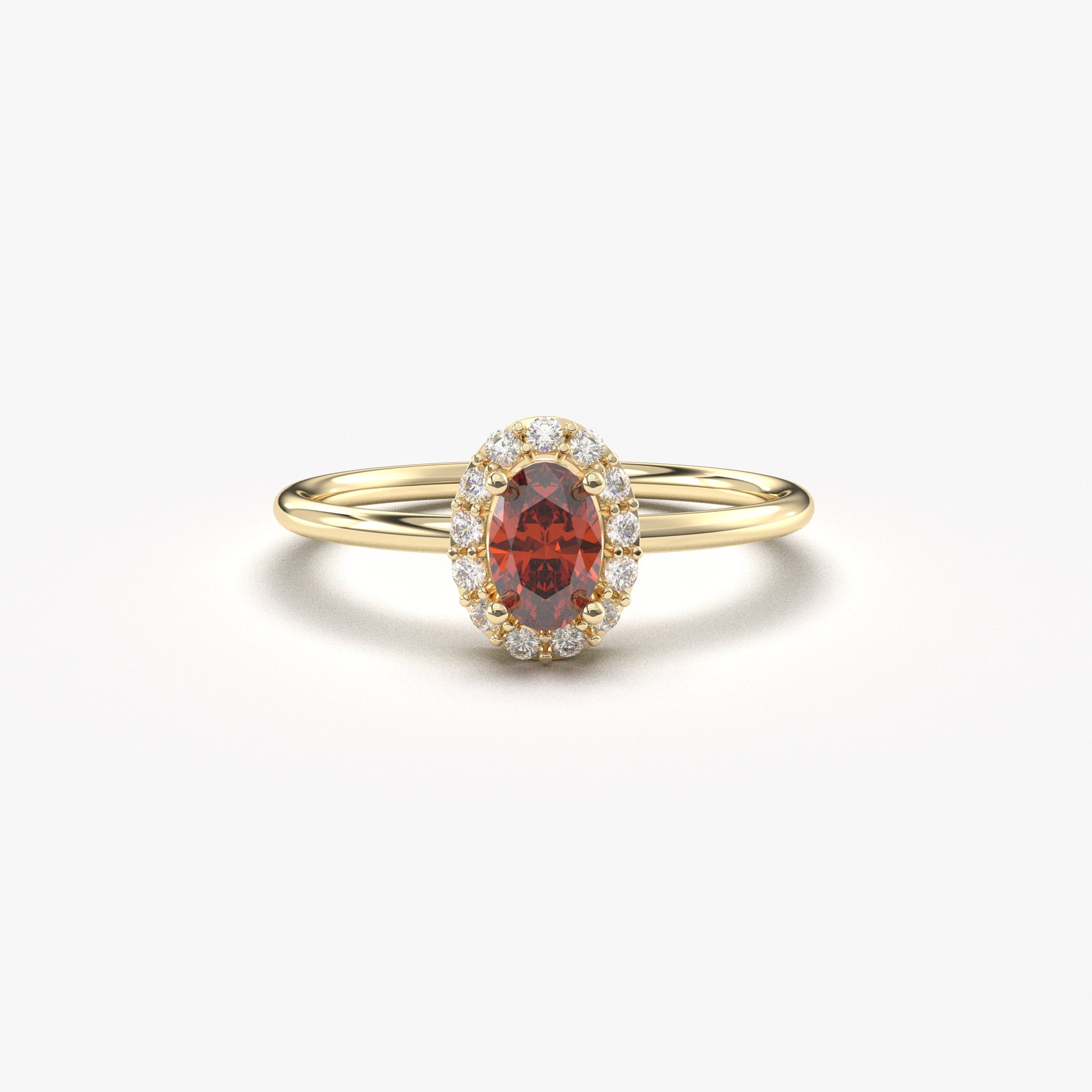 10K Gold Oval Garnet Halo Diamond Ring - 8S26GAR