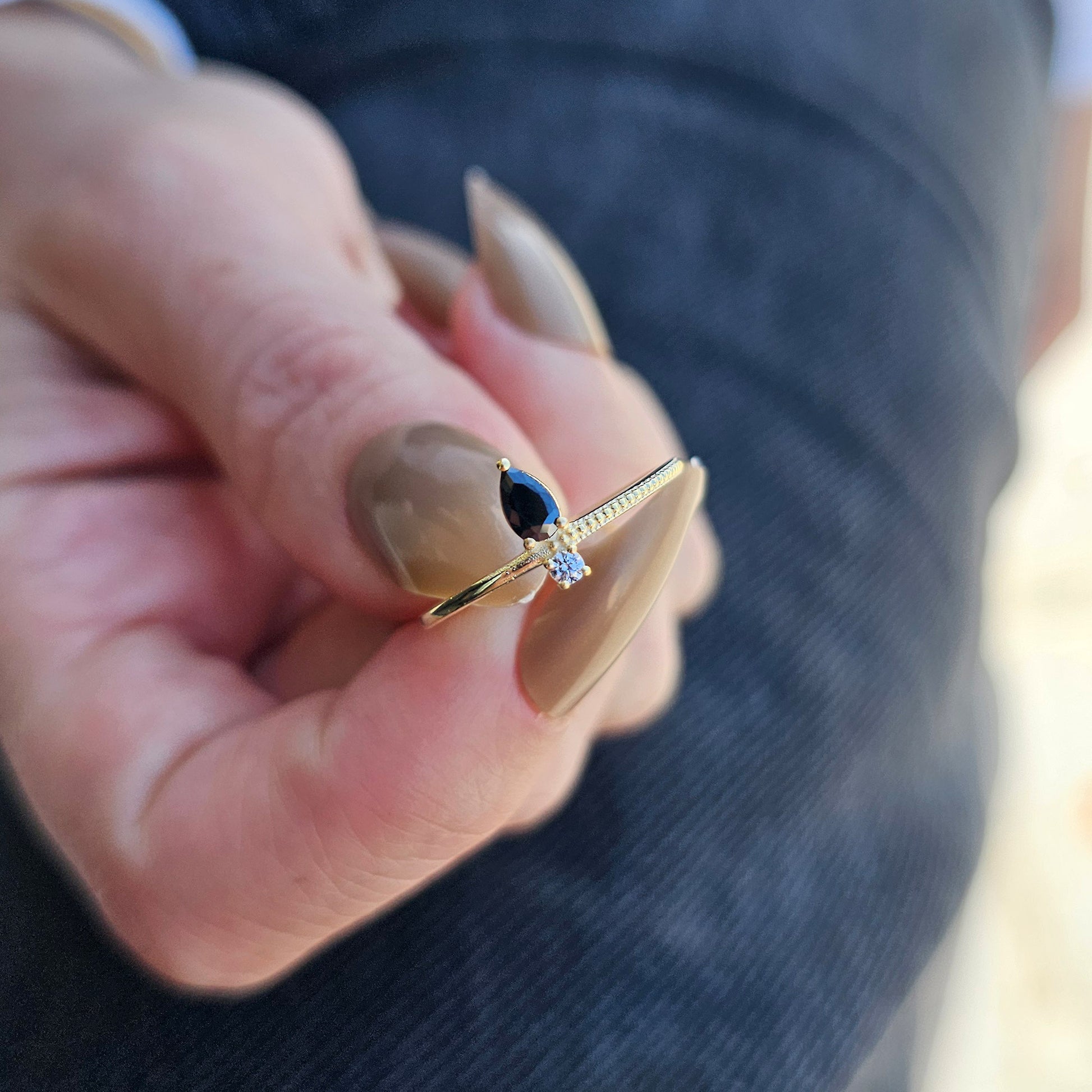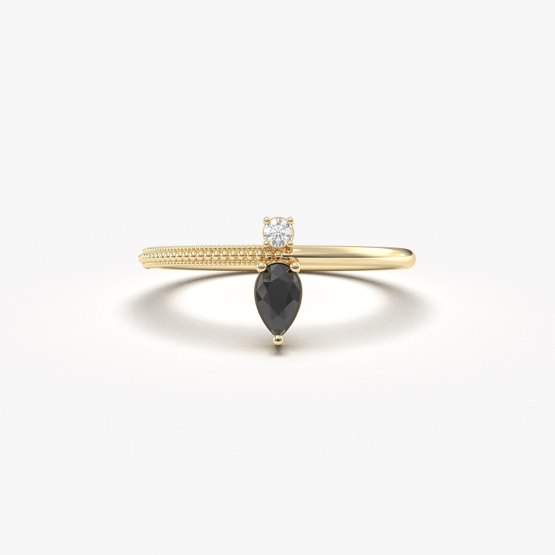 10K Gold Dainty Pear Black Onyx and Diamond Ring - 2S294BLK