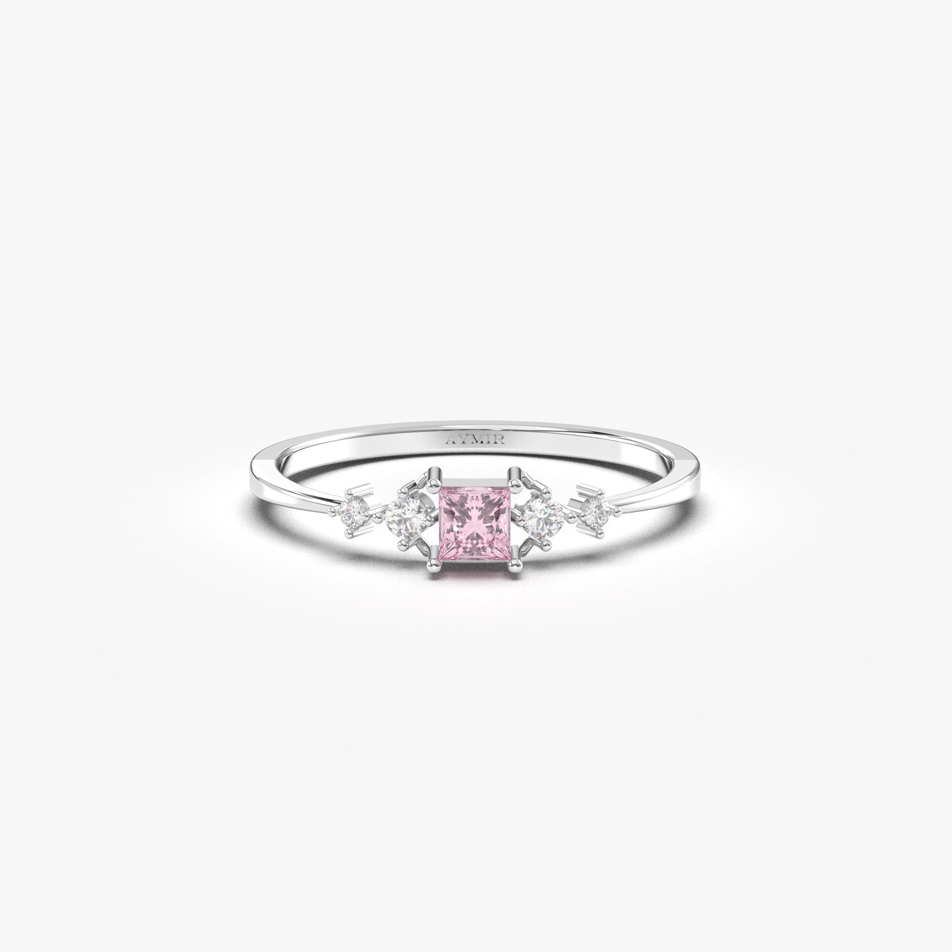 10K Gold Square Pink Topaz Diamond Ring - 2S122PNK
