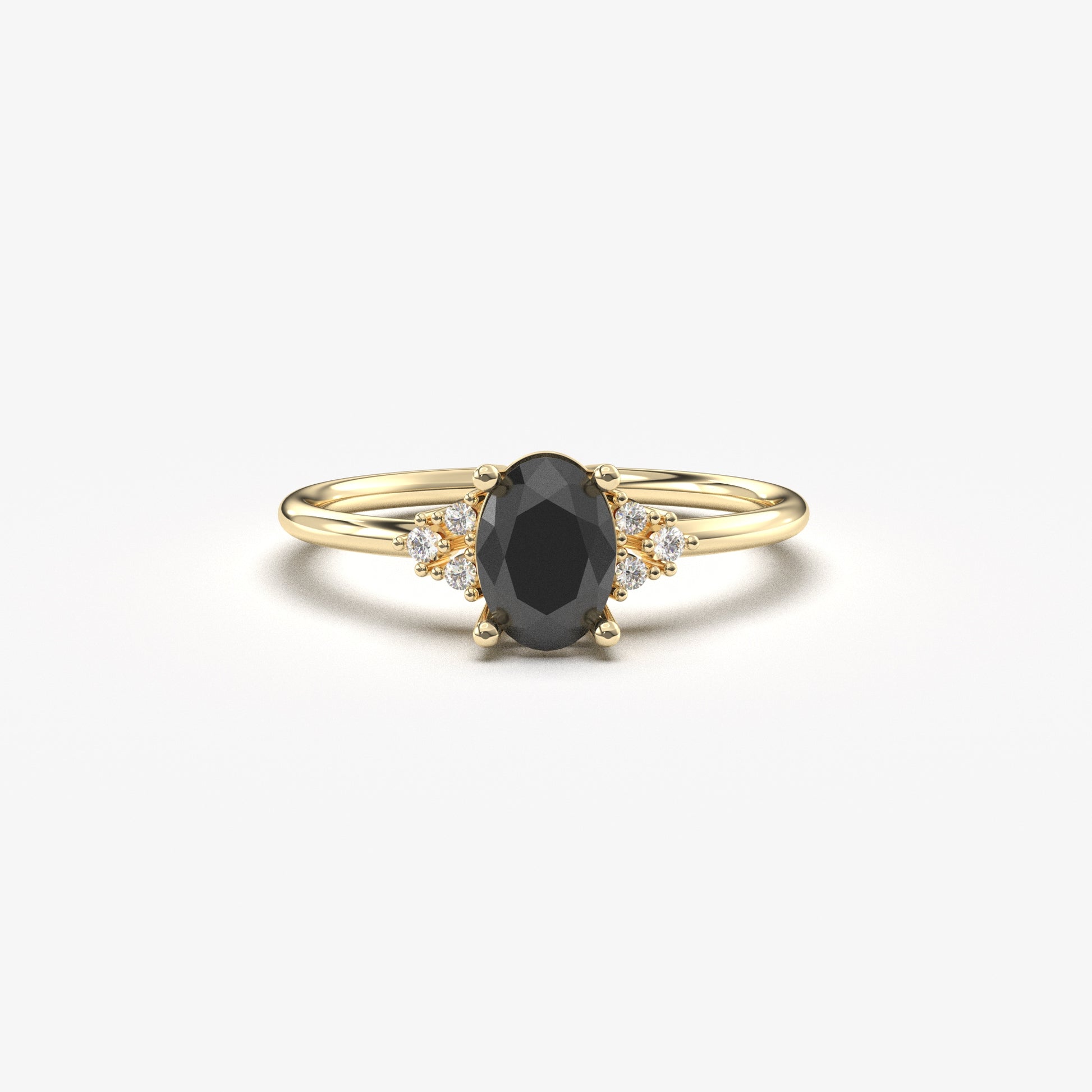 10K Gold Unique Black Onyx Oval and Cz Ring - 8S268BLK