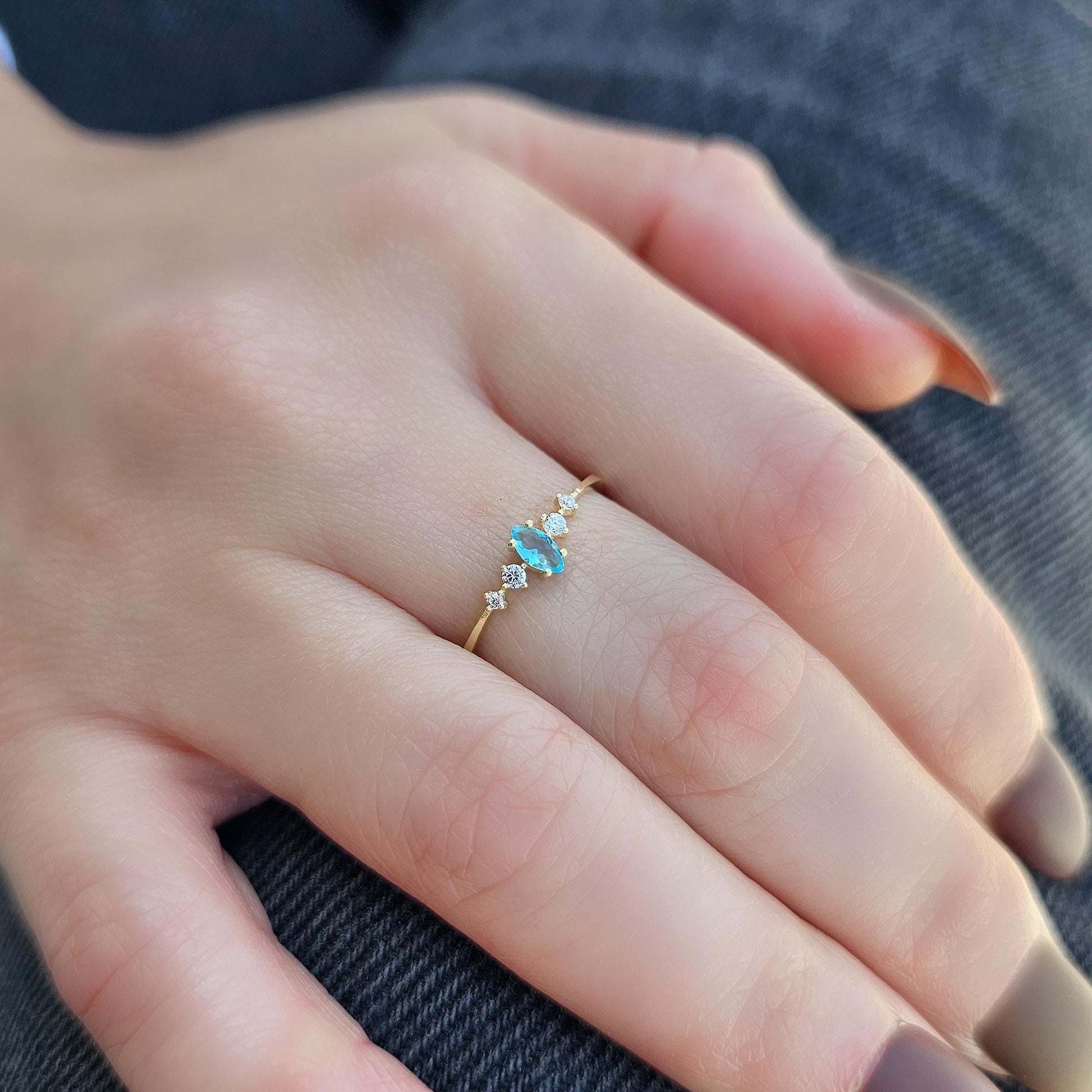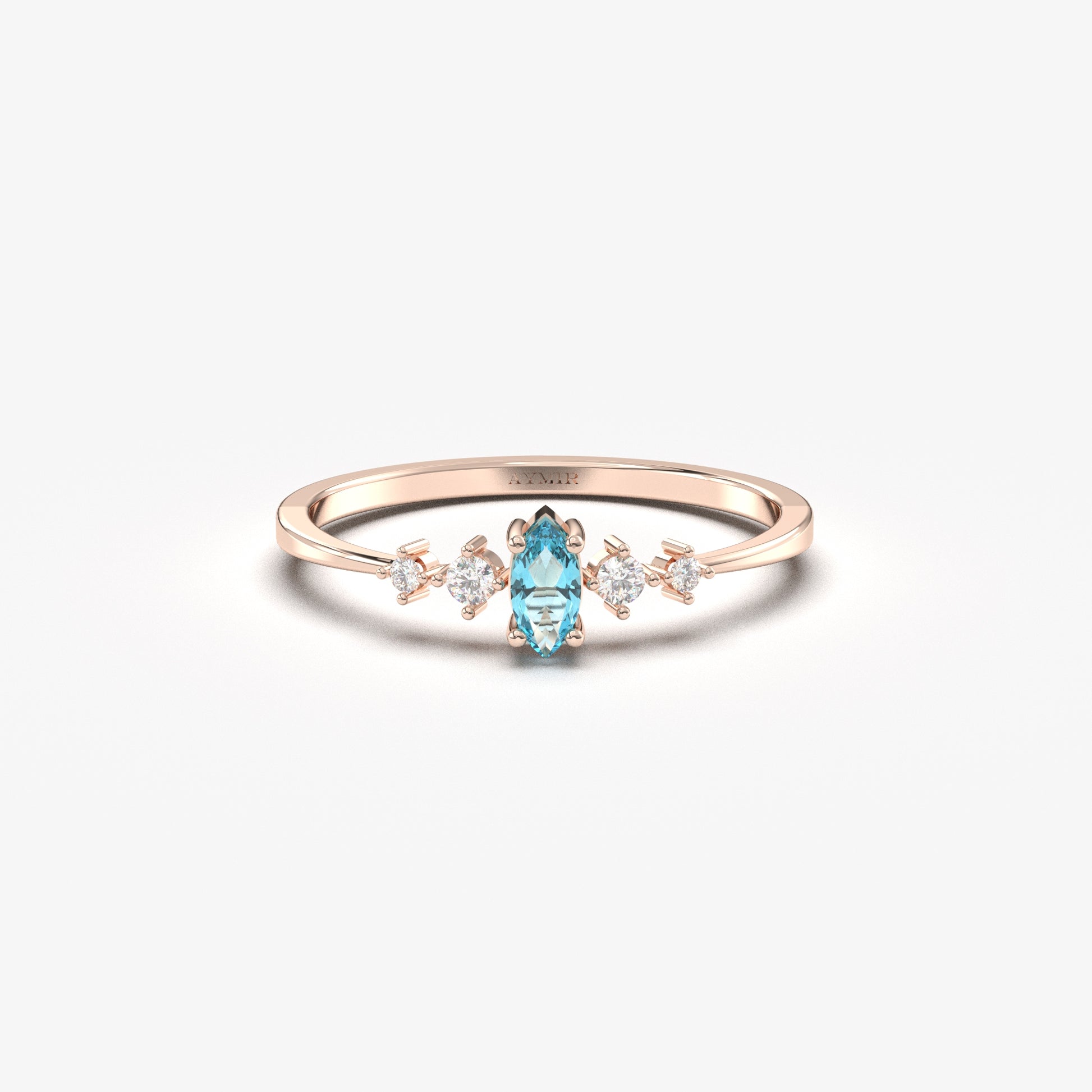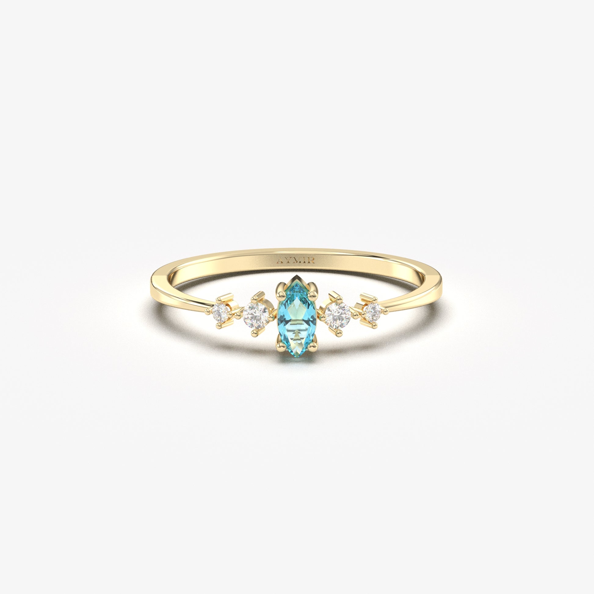 10K Gold Unique Marquise Aqua and Cz Ring - 2S124AQUA