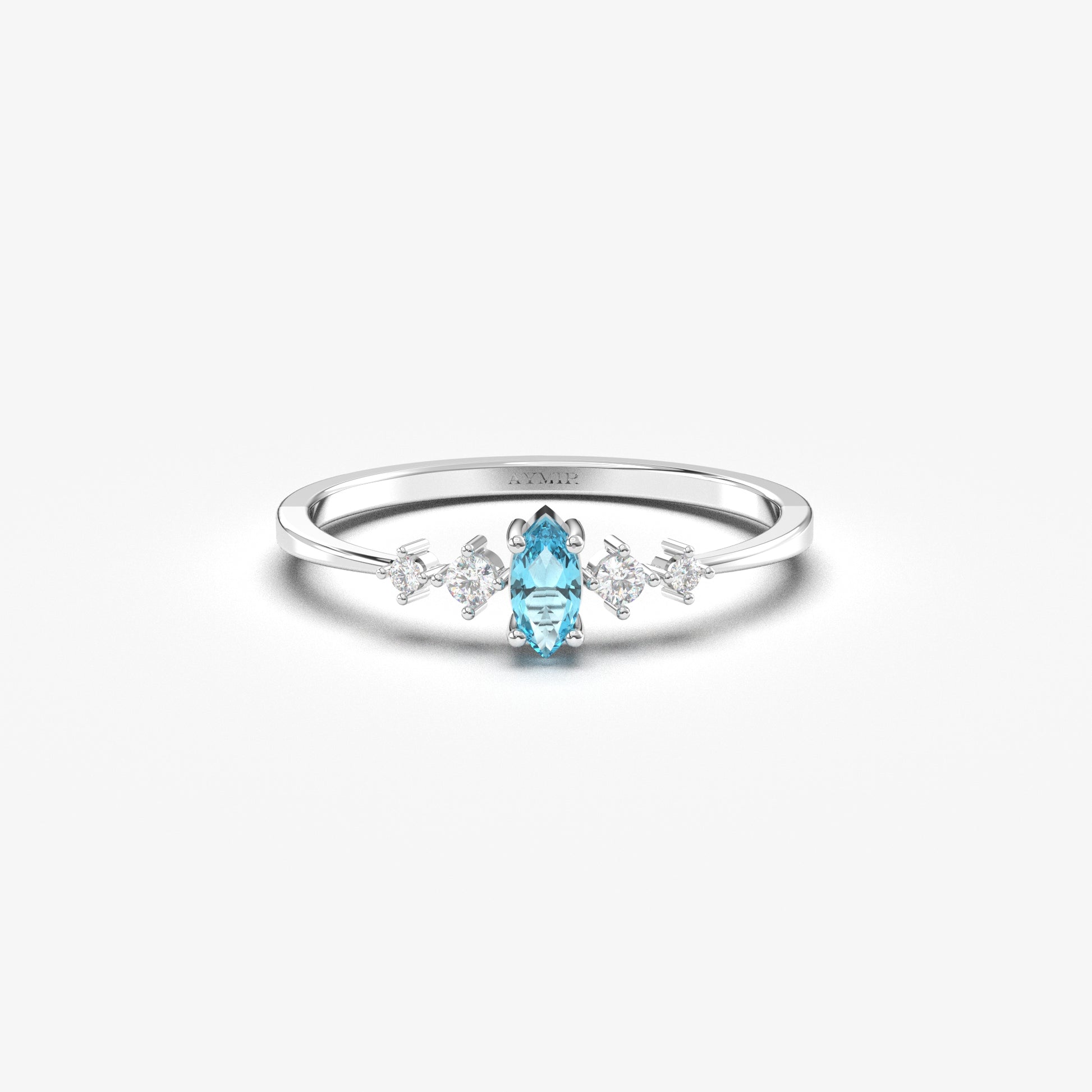 10K Gold Unique Marquise Aqua and Diamond Ring - 2S124AQUA