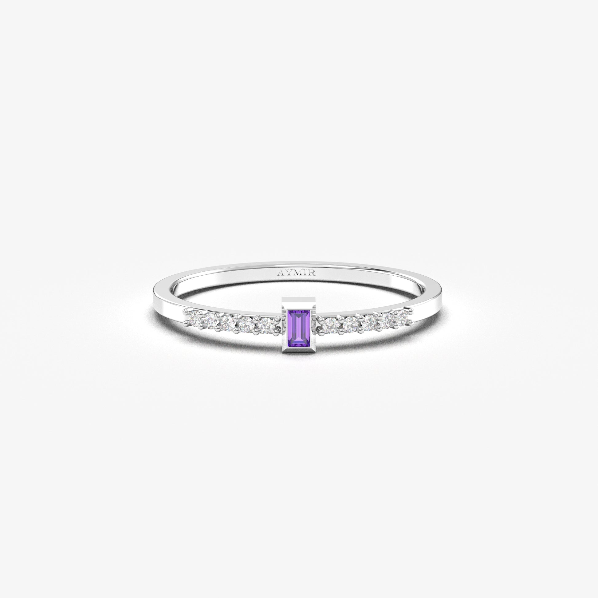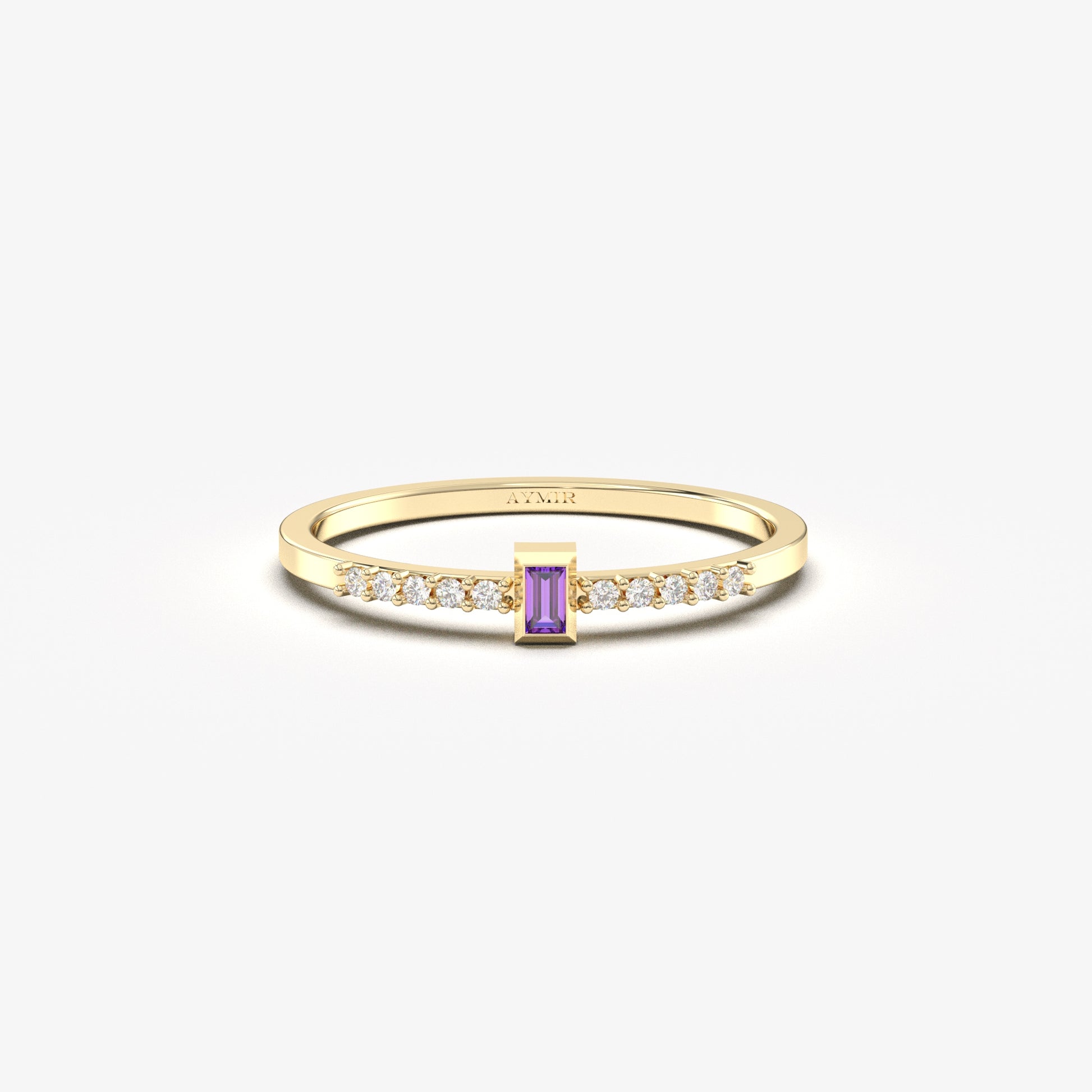 14K Gold Unique Baguette Amethyst and Diamond Ring - 2S80AME