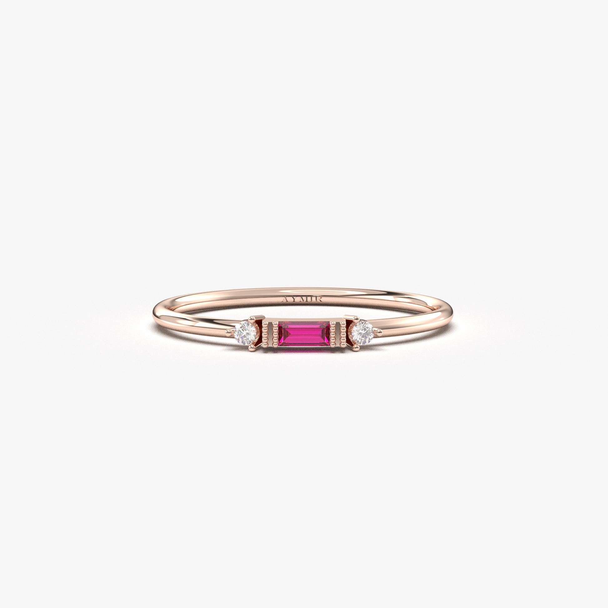 14K Gold Baguette Ruby and Thin Cz Ring - 2S6RBY