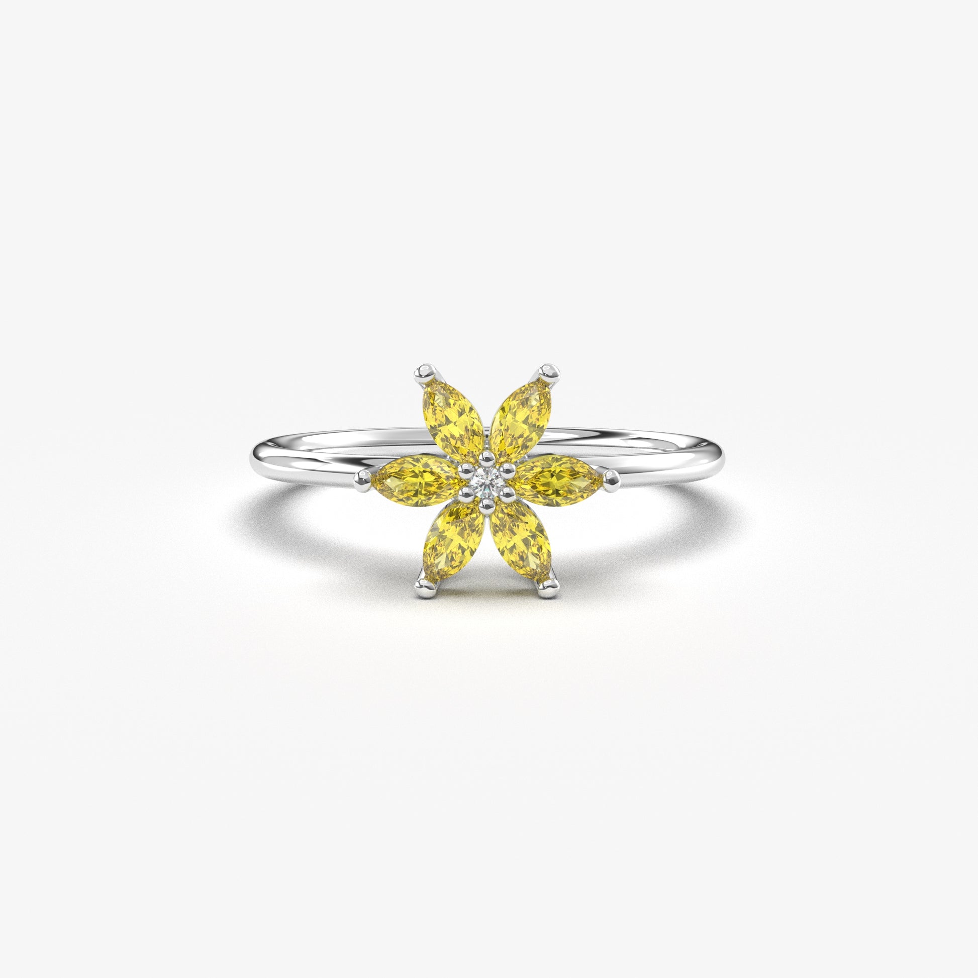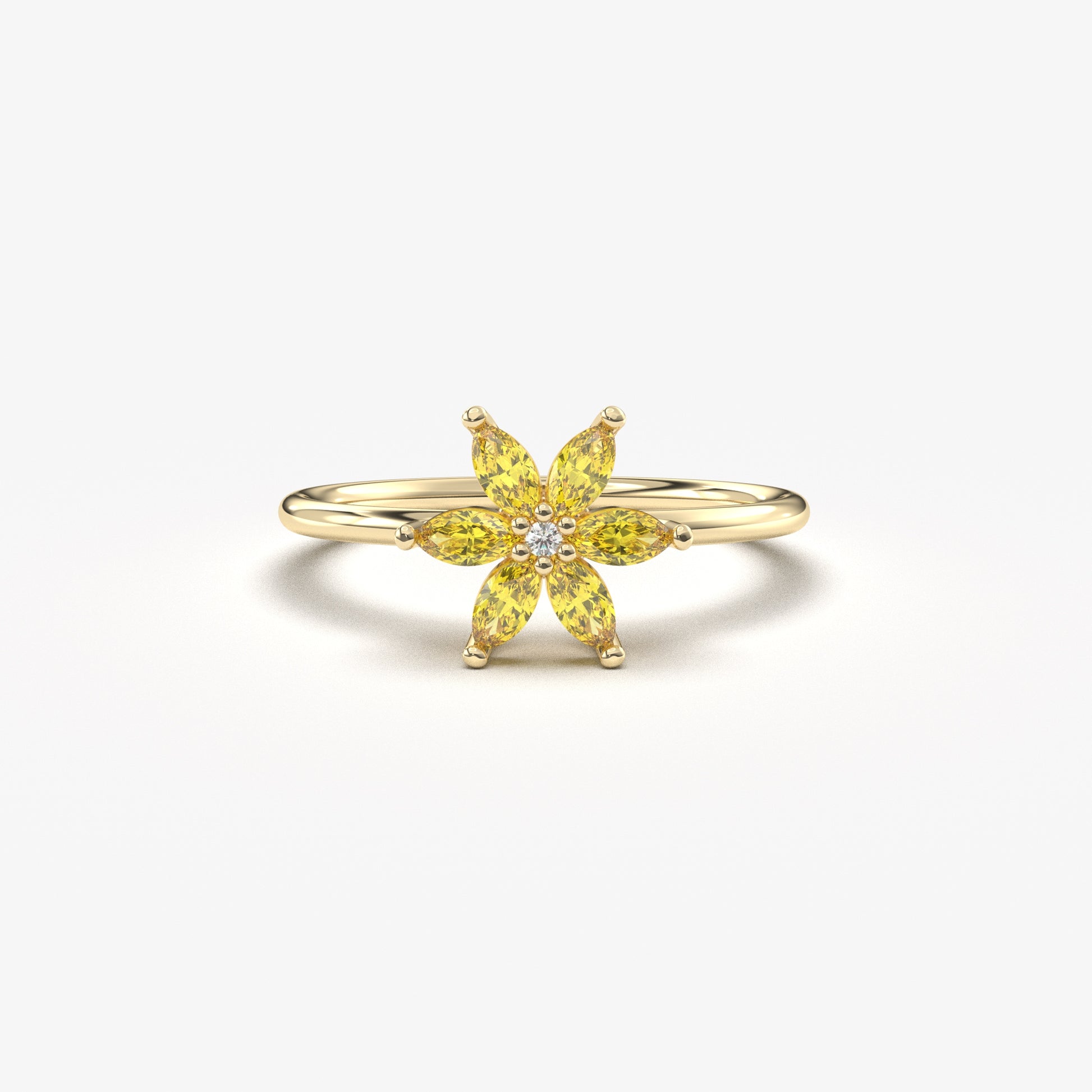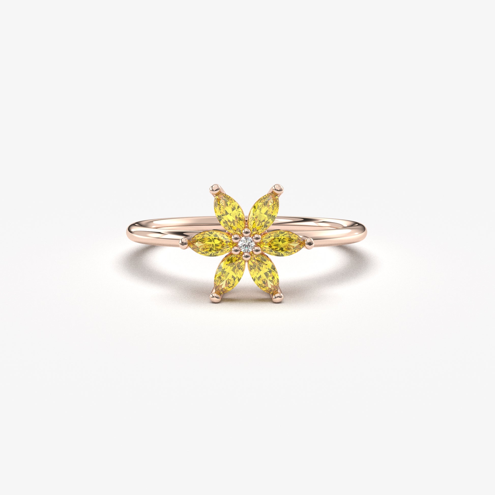 14K Gold Marquise Cut Citrine Floral Diamond Ring - 8S132CIT