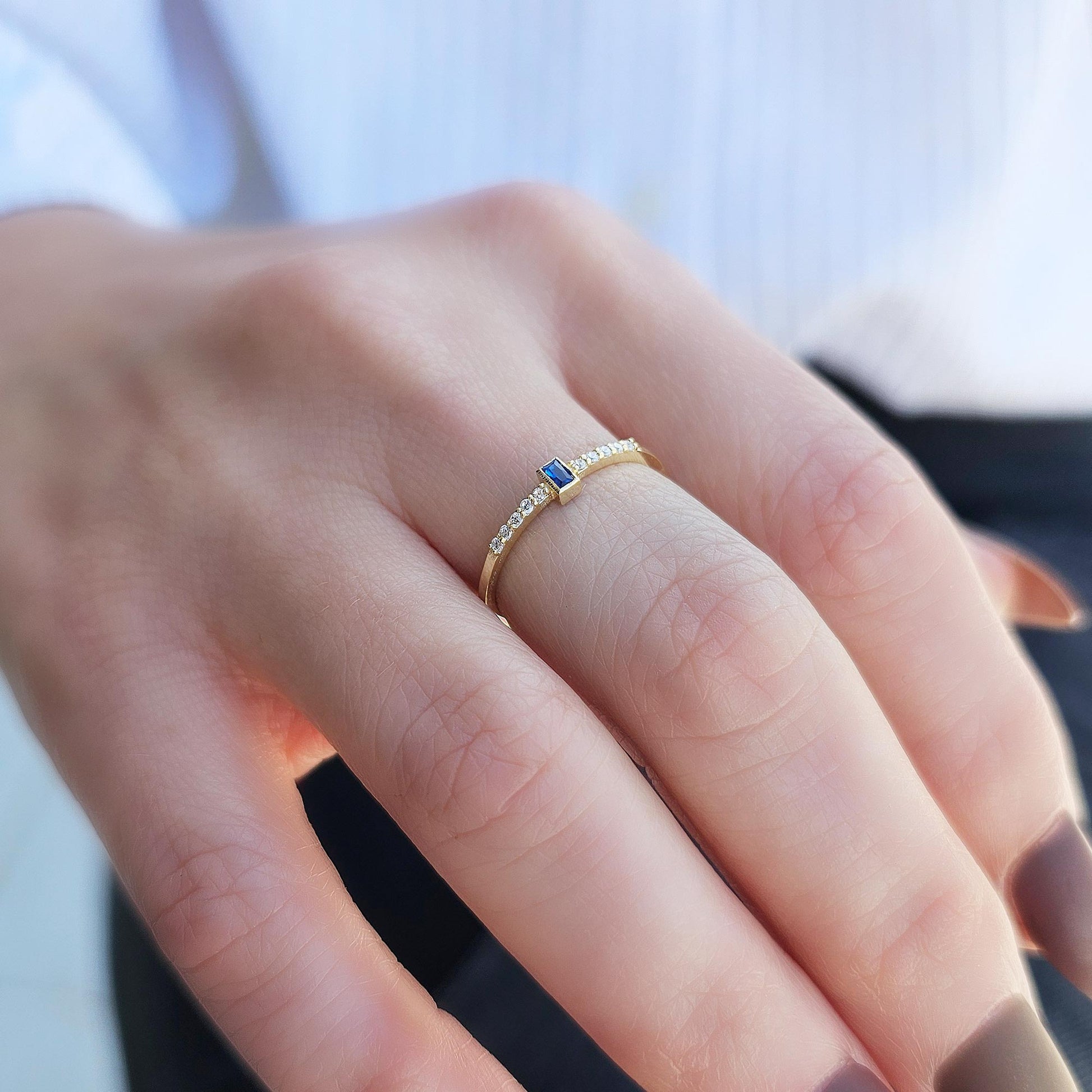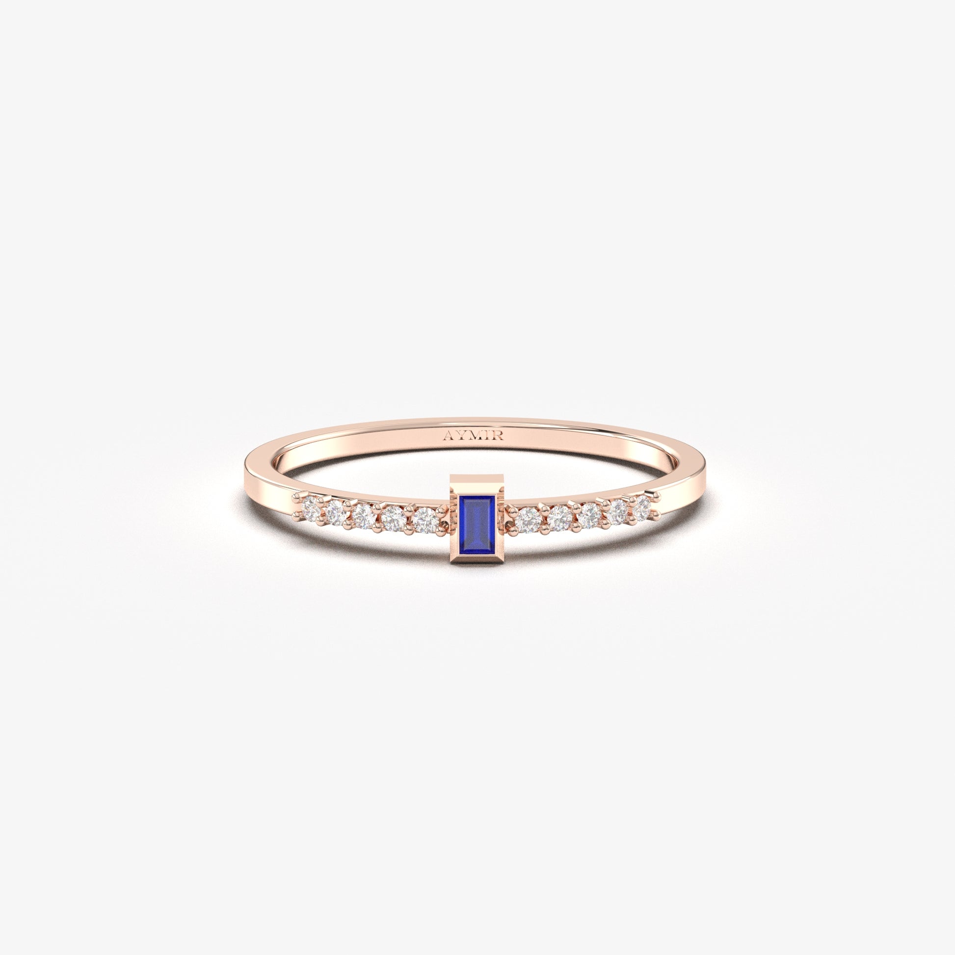 14K Gold Minimalist Baguette Sapphire and Diamond Ring - 2S80SAP
