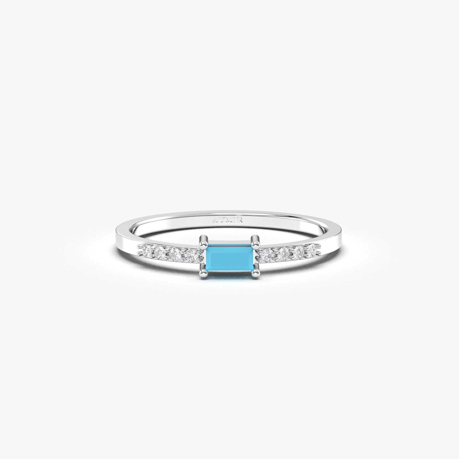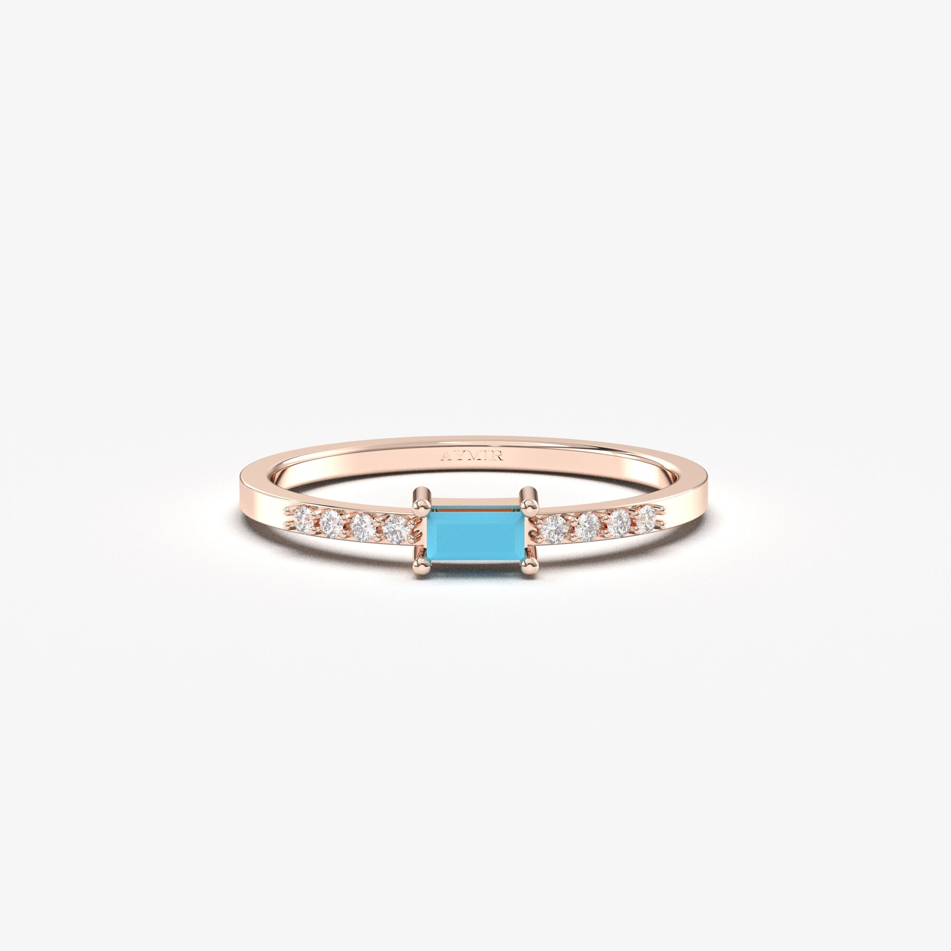 14K Gold Minimalist Baguette Turquoise and Diamond Ring - 2S2TURQ