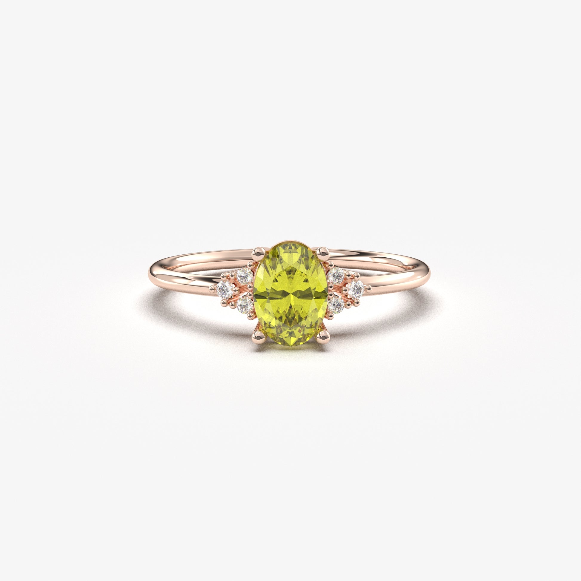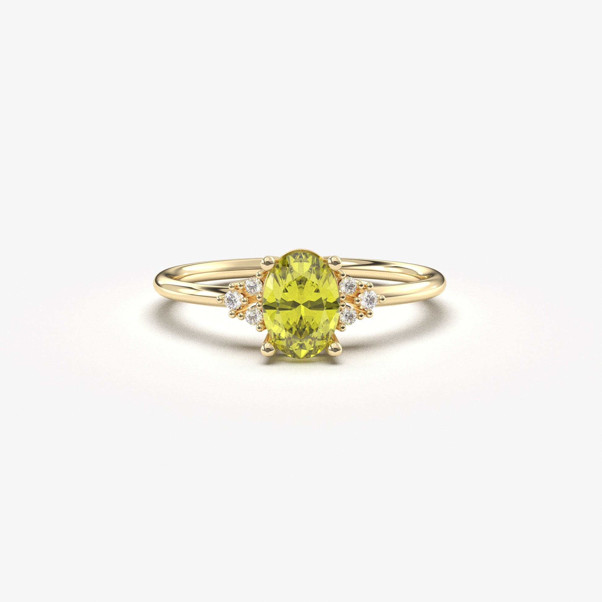 14K Gold Oval Natural Peridot and Cz Ring - 8S268NATPER