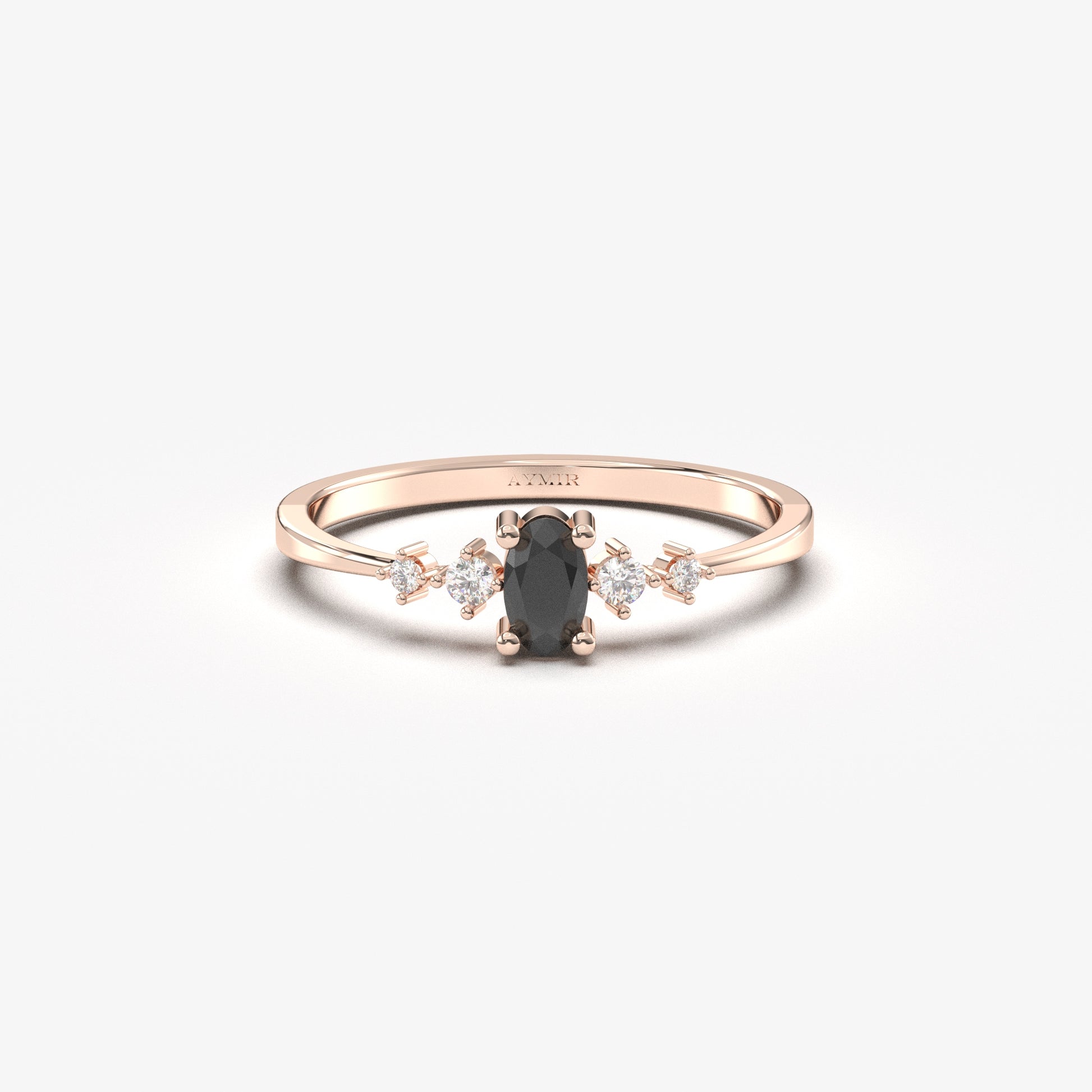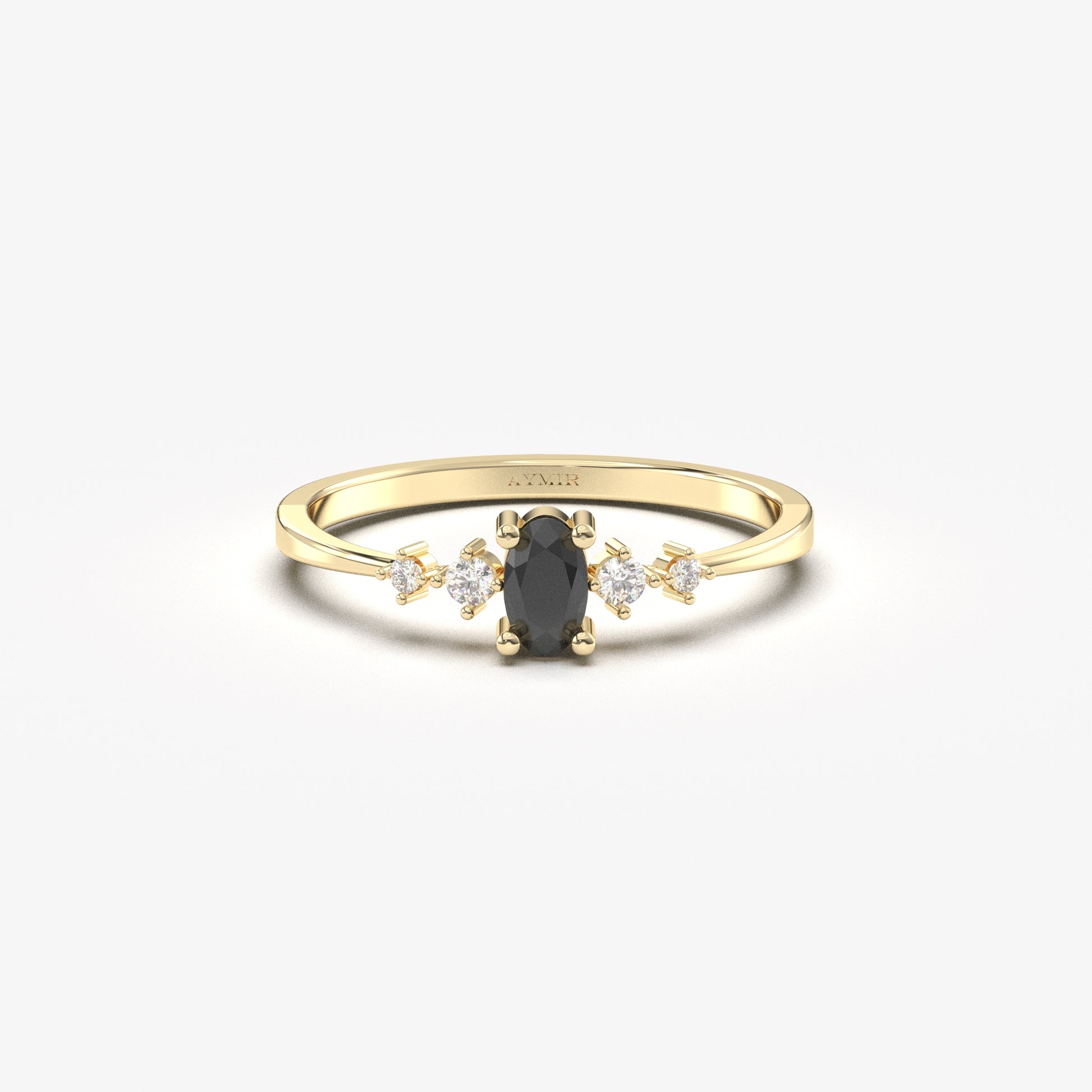 14K Gold Solitaire Oval Black Onyx and Diamond Ring - 2S121BLK