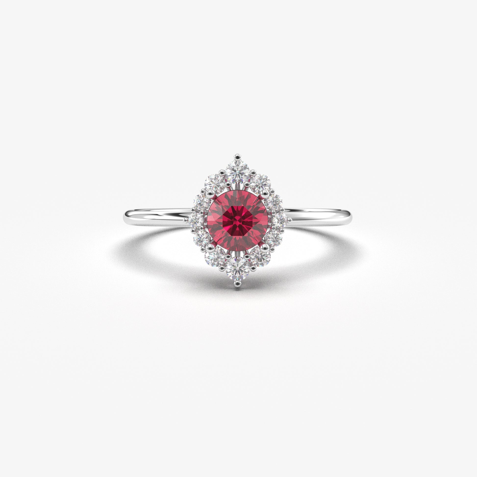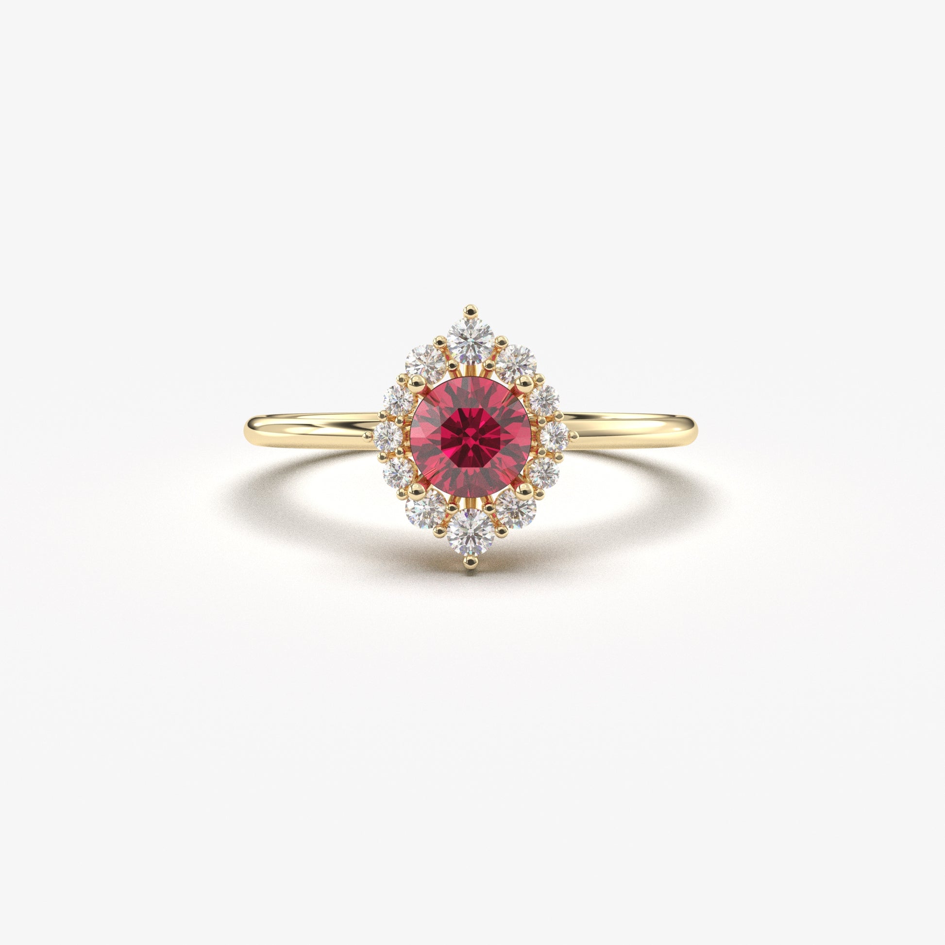 14K Solid Gold Halo Ruby Diamond Ring - 8S62RBY
