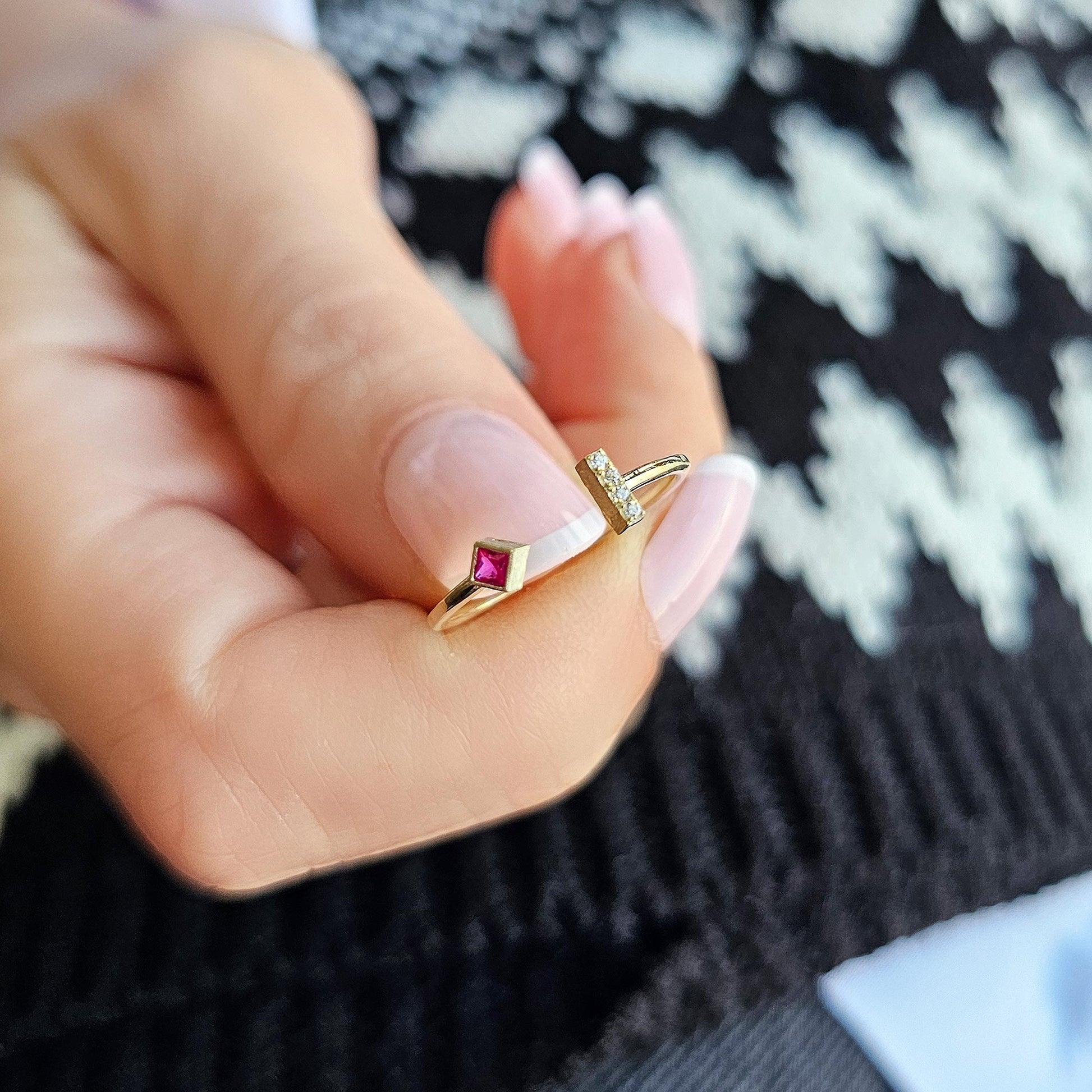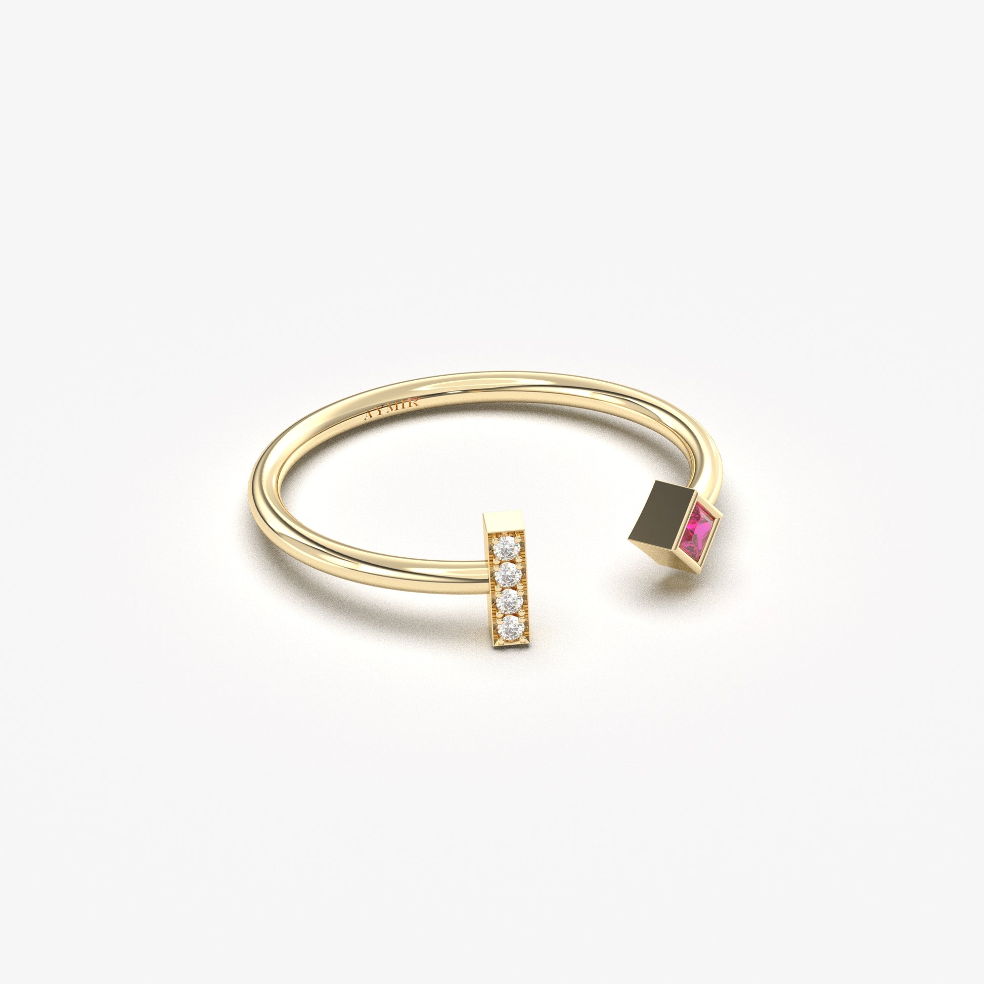 14K Solid Gold Princess Ruby and Diamond Open Ring - 2S174RBY