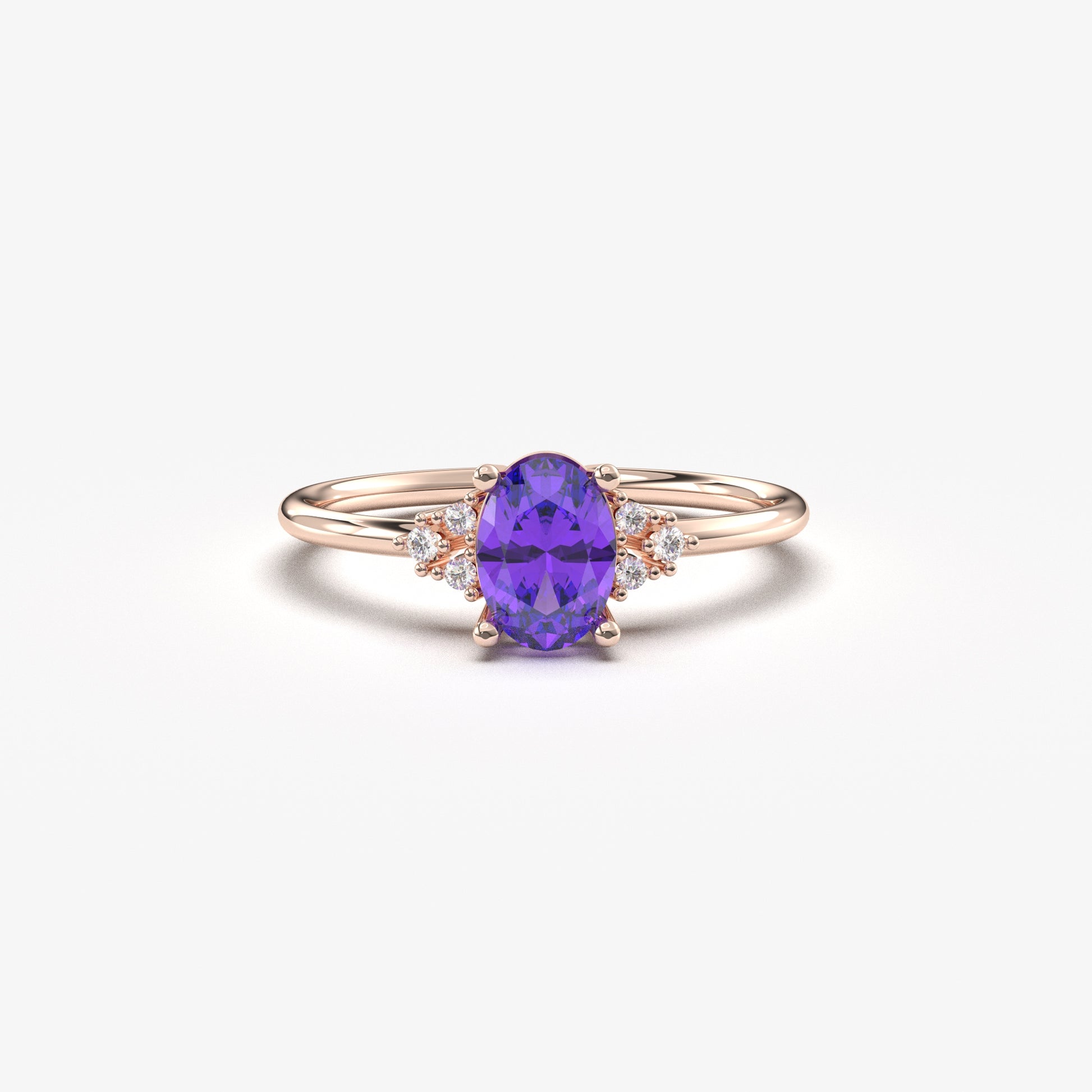 18K Gold Amethyst Oval and Diamond Ring - 8S268AME