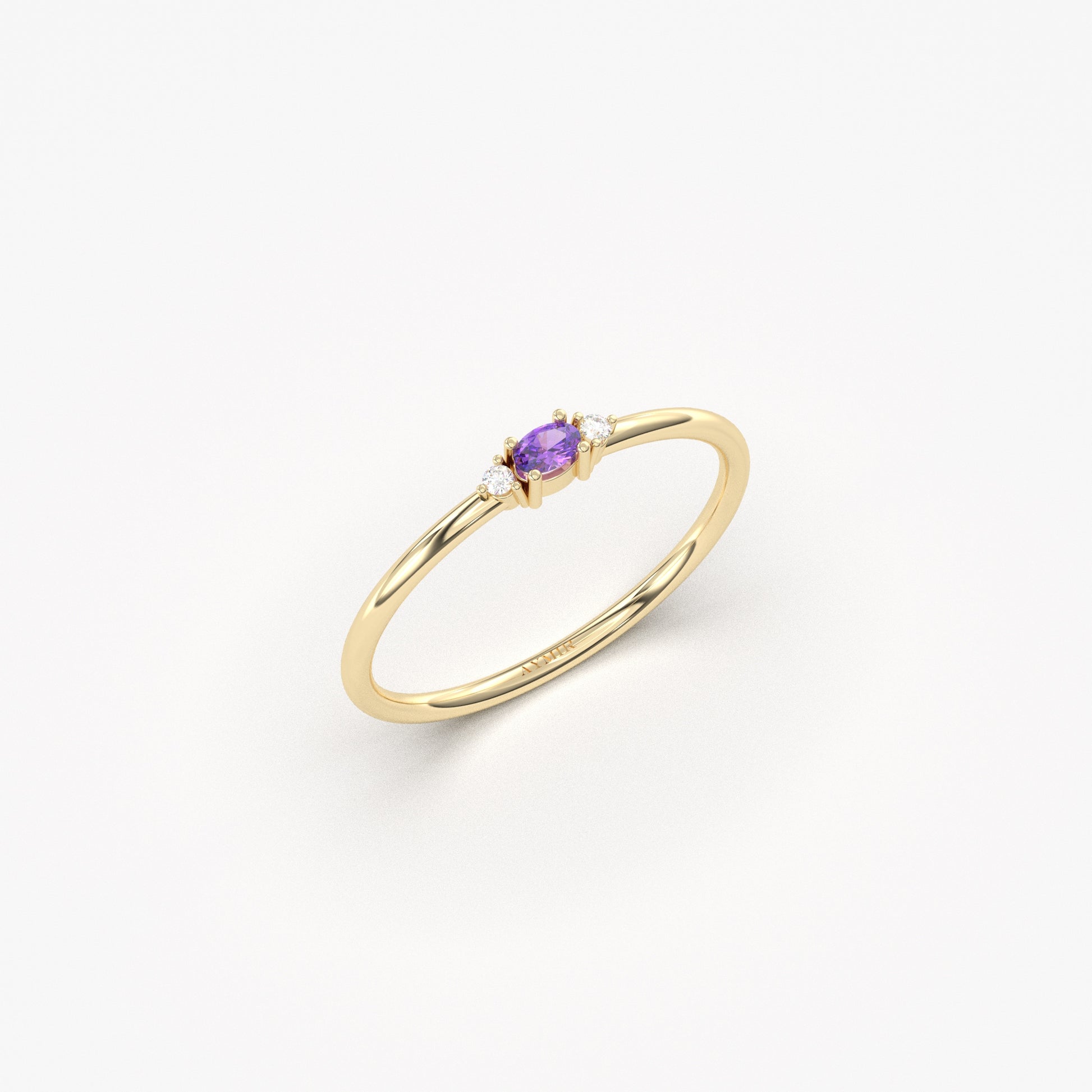 18K Gold Dainty Ametist Oval and Diamond Ring - 2S84AME