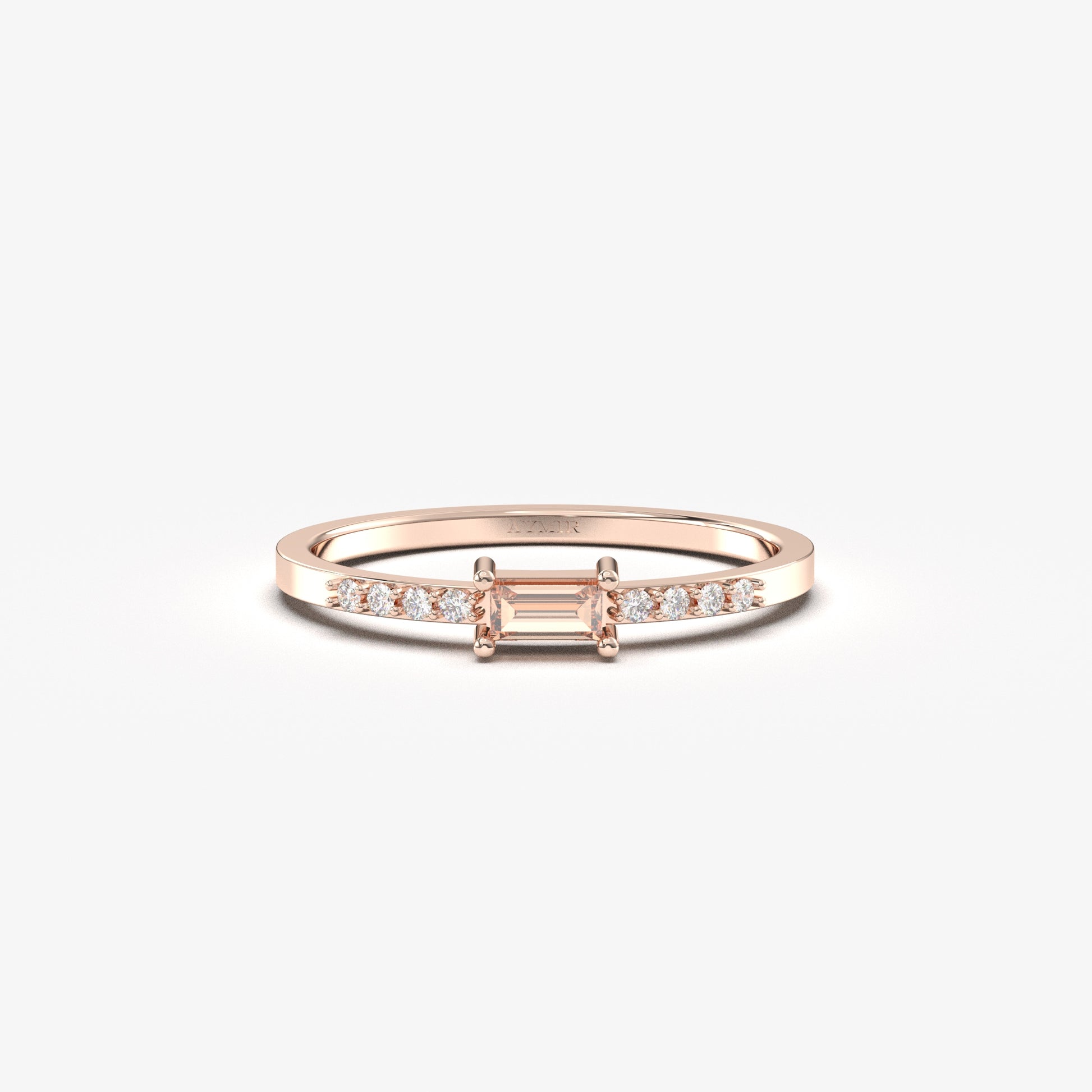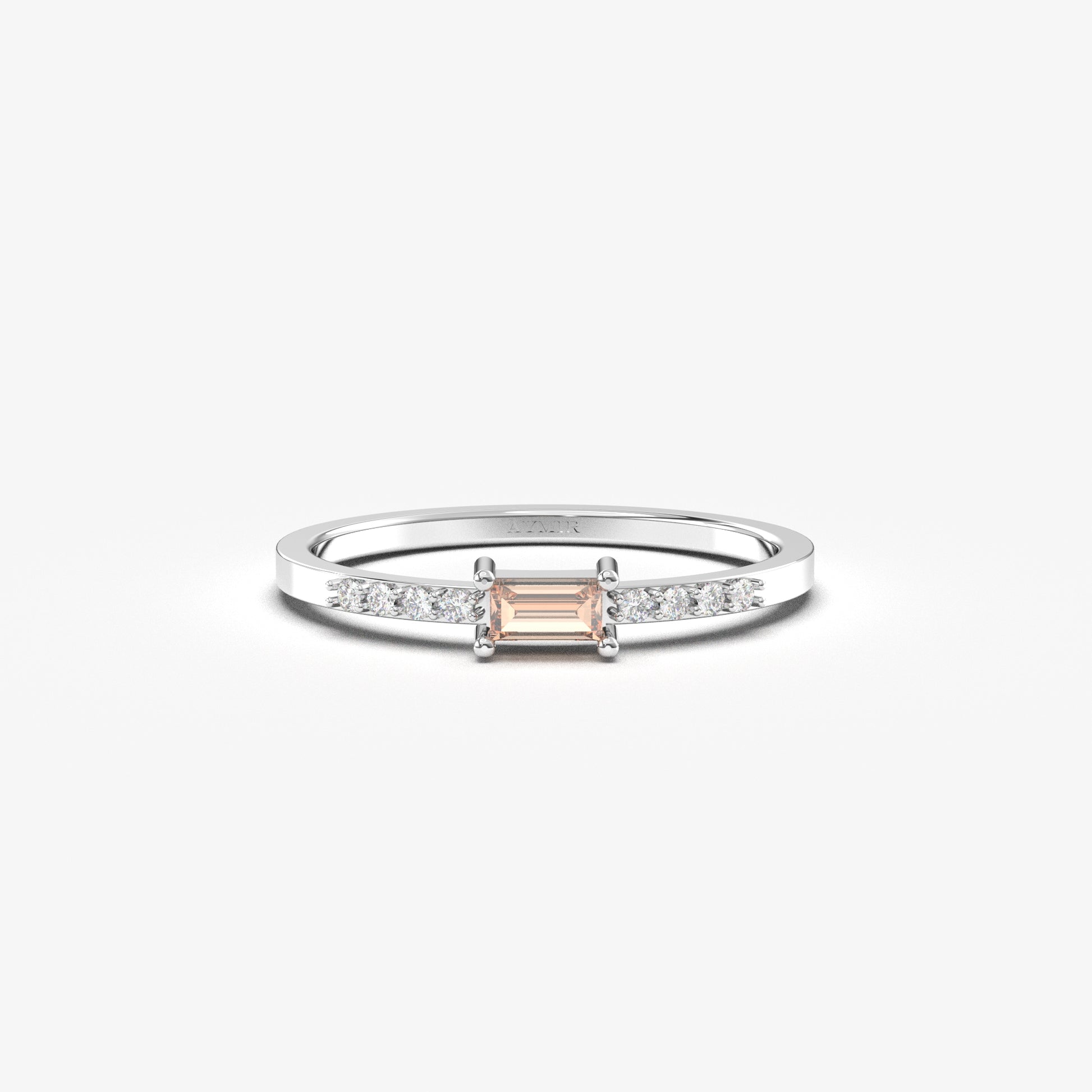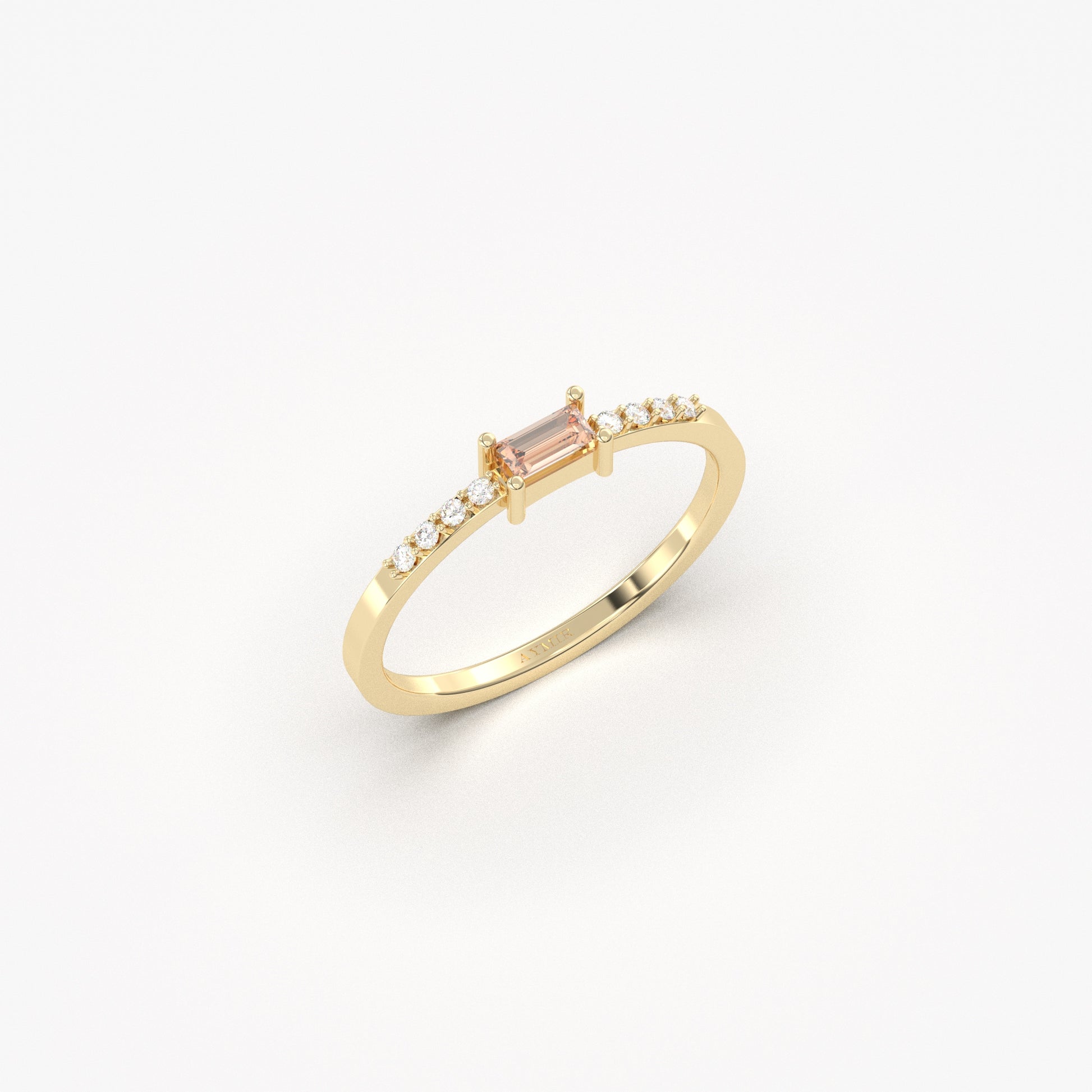 18K Gold Dainty Baguette Champagne and Diamond Ring - 2S2CHAMP