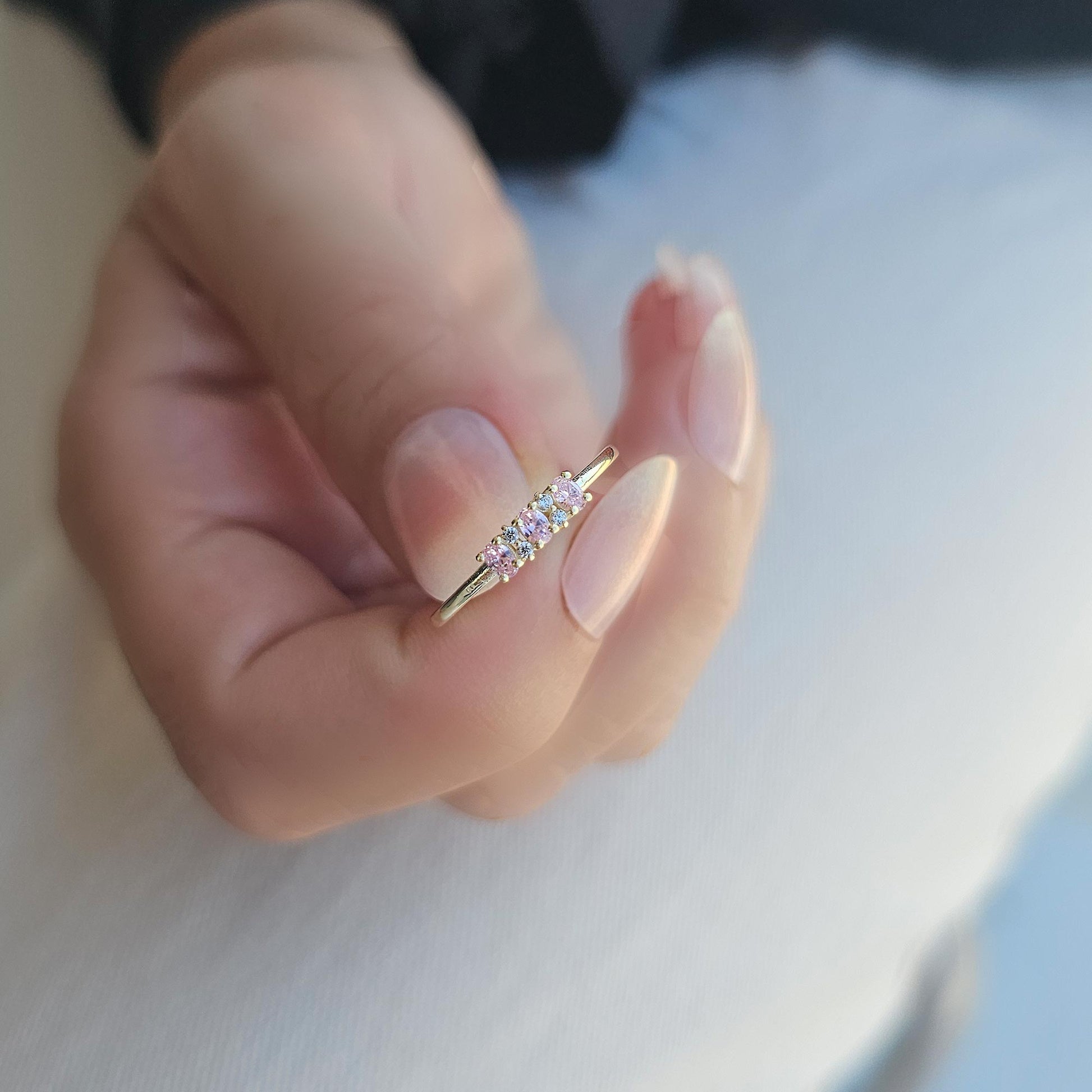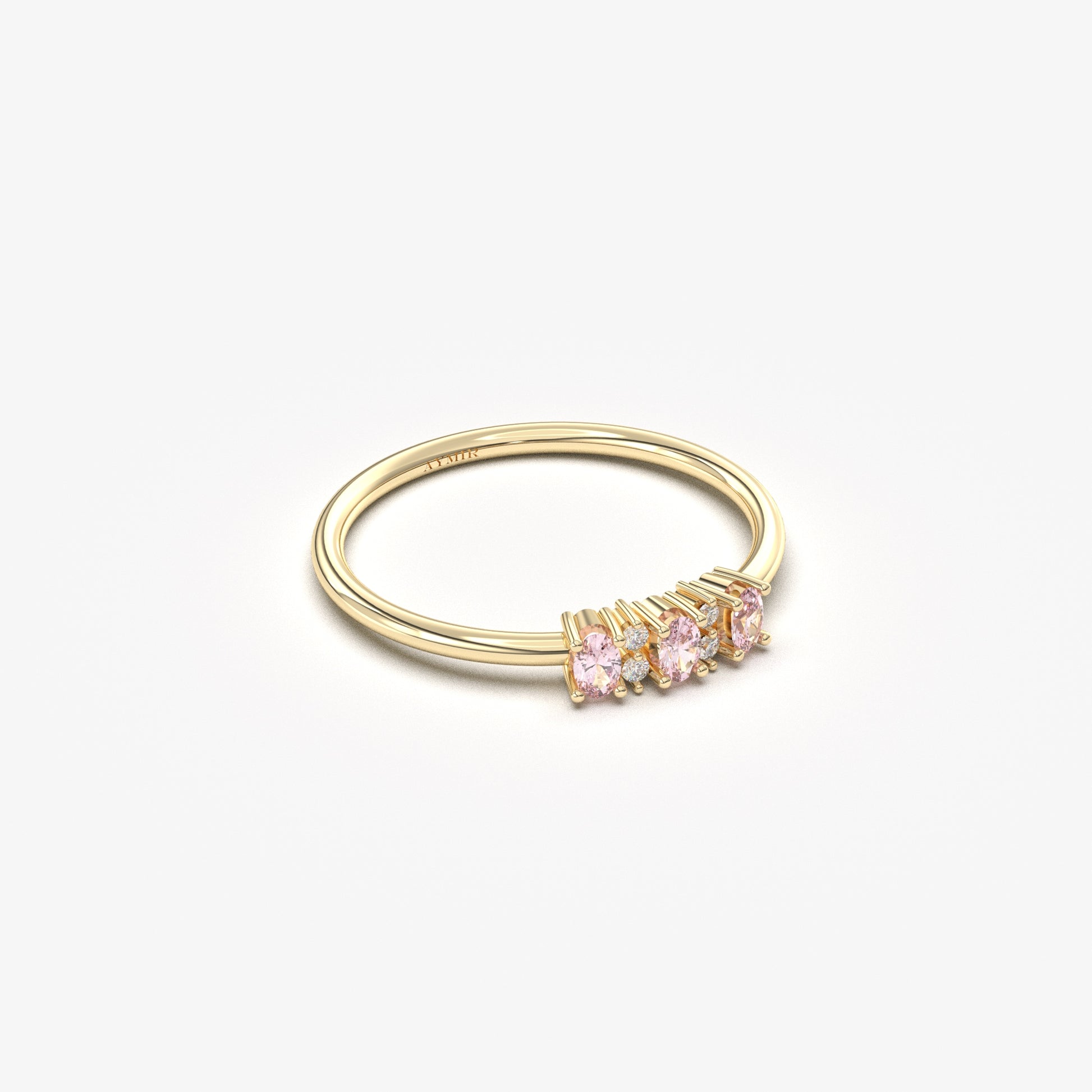 18K Gold Minimalist Oval Pink and Diamond Ring - 2S46PNK