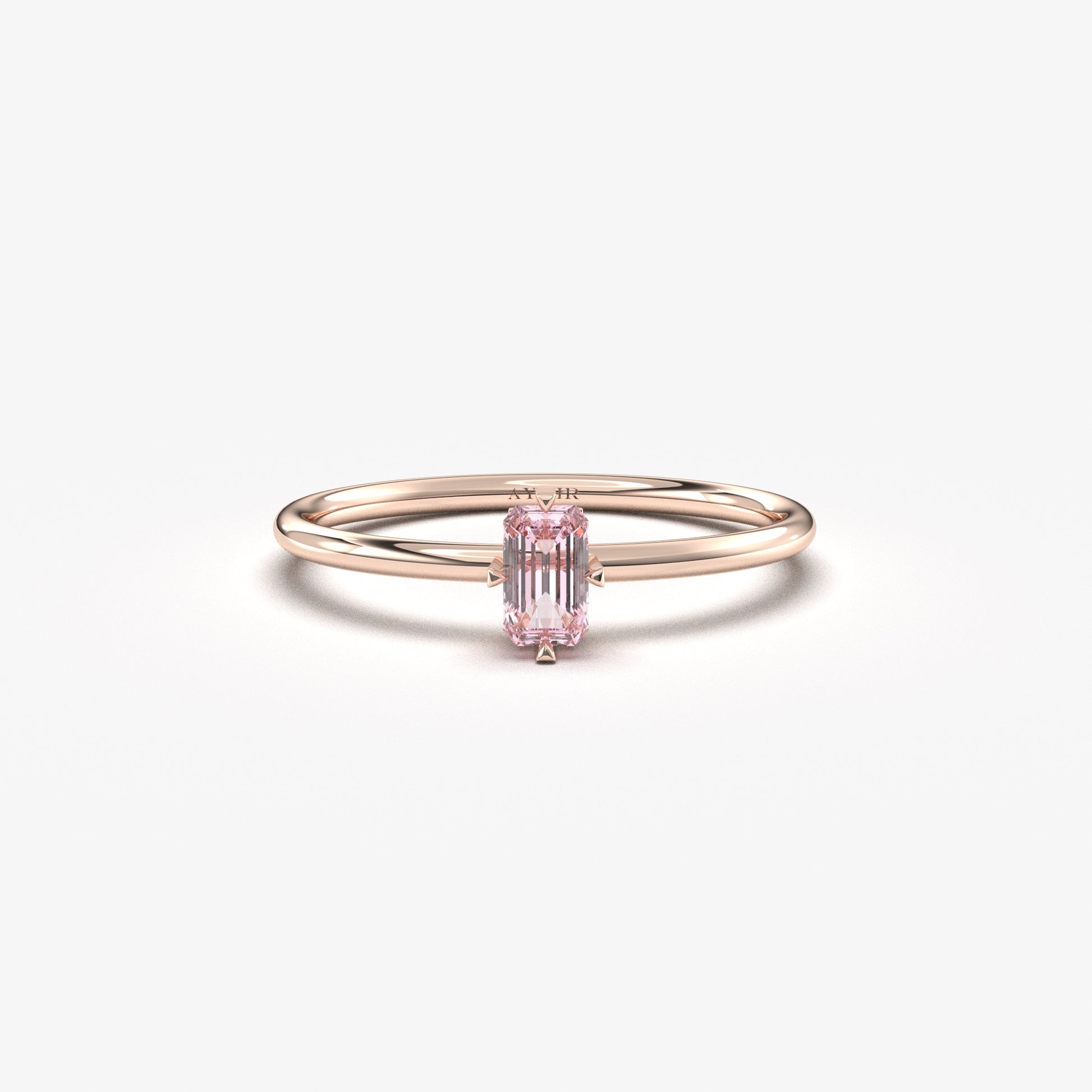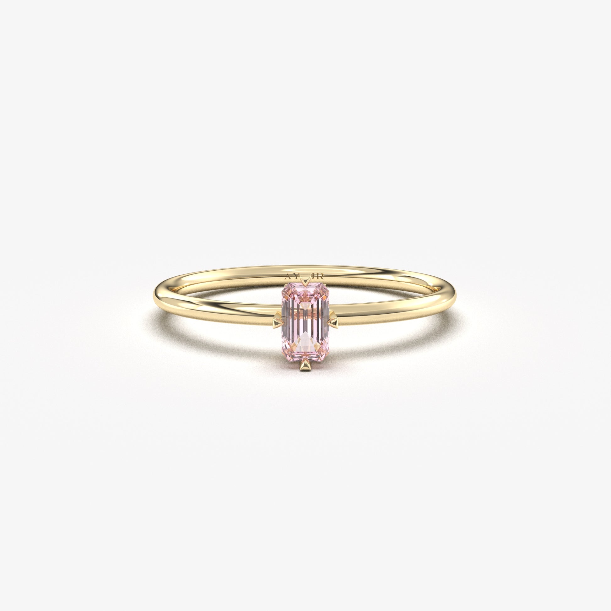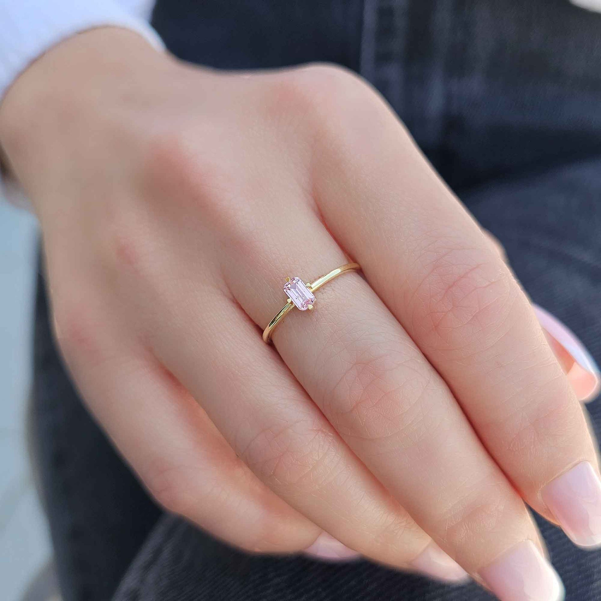 18K Gold Minimalist Pink Topaz Baguette Ring - 2S57PNK