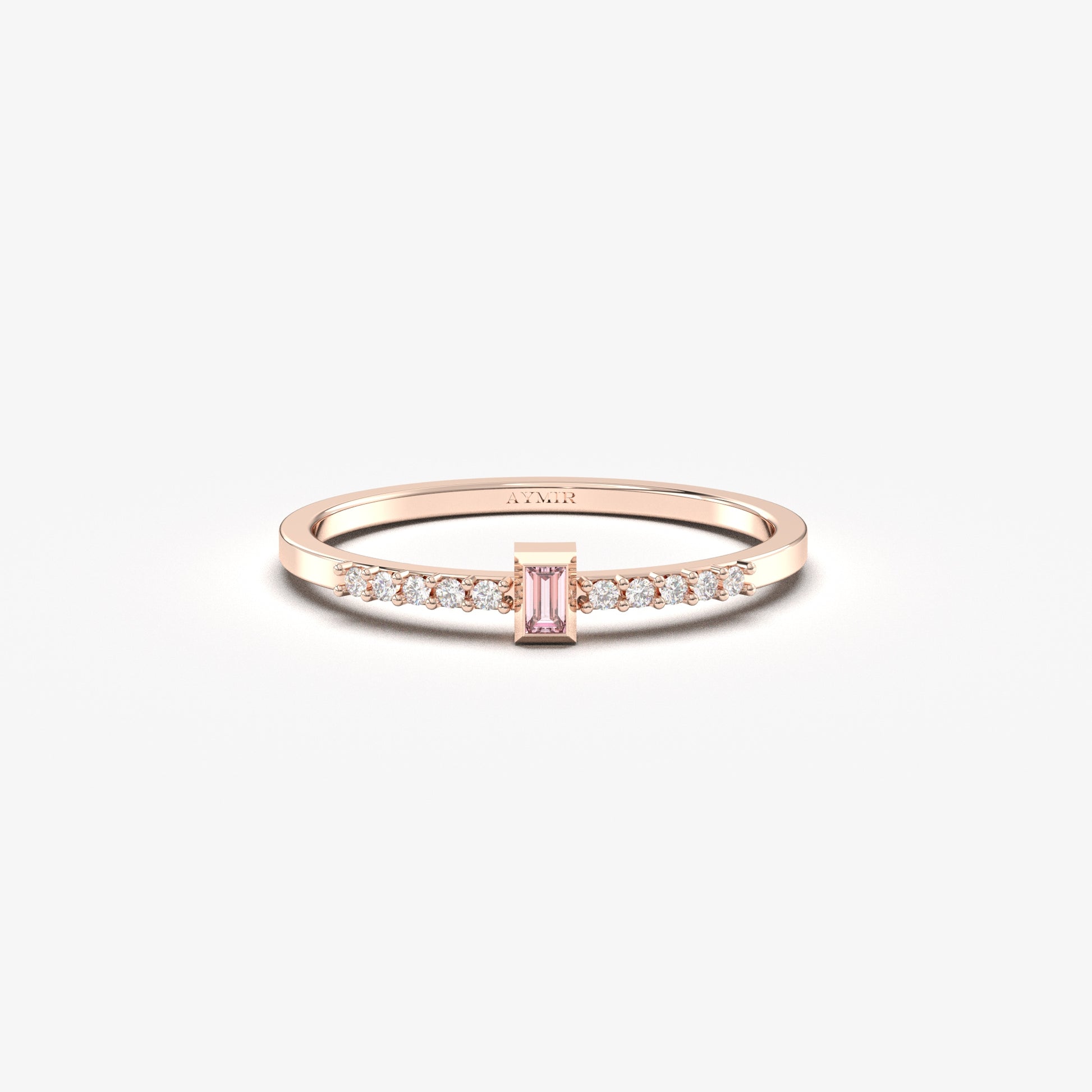 18K Solid Gold Baguette Pink and Cz Ring - 2S80PNK